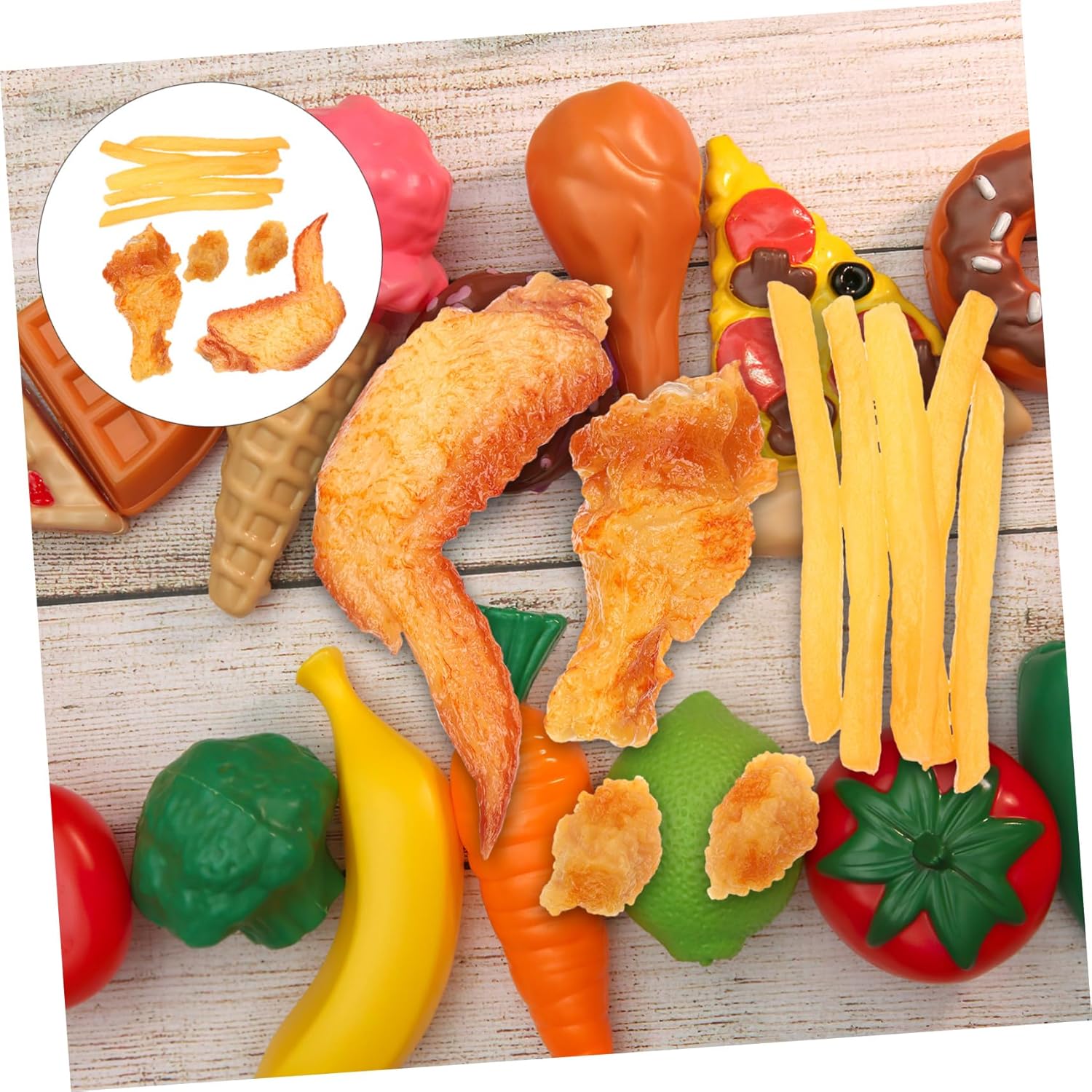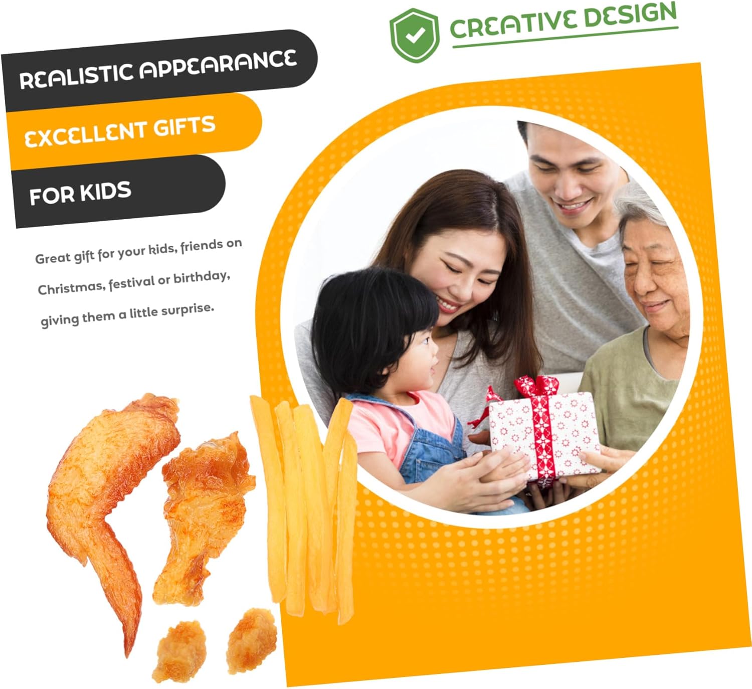 Oggetto di di pollo: lavorazione eccellente, massima attenzione a ogni dettaglio per conferirgli un aspetto realistico, oggetto di di patatine fritte Decorazione a forma di pollo: decorerà bene prodotto, aiuterà a mostrare prodotto, cibo di a forma di pollo Coscia di pollo : nel design e pratica nell'uso, ti offre un'esperienza d'uso piacevole, di pollo artificiale Cibo artificiale come patatine fritte: di cibo è fantastico, un perfetto oggetto di per la fotografia, una coscia di pollo come oggetto di Pollo : suo aspetto realistico e la sua forma con un buon effetto decorativo conquisteranno facilmente i tuoi , cosce di pollo