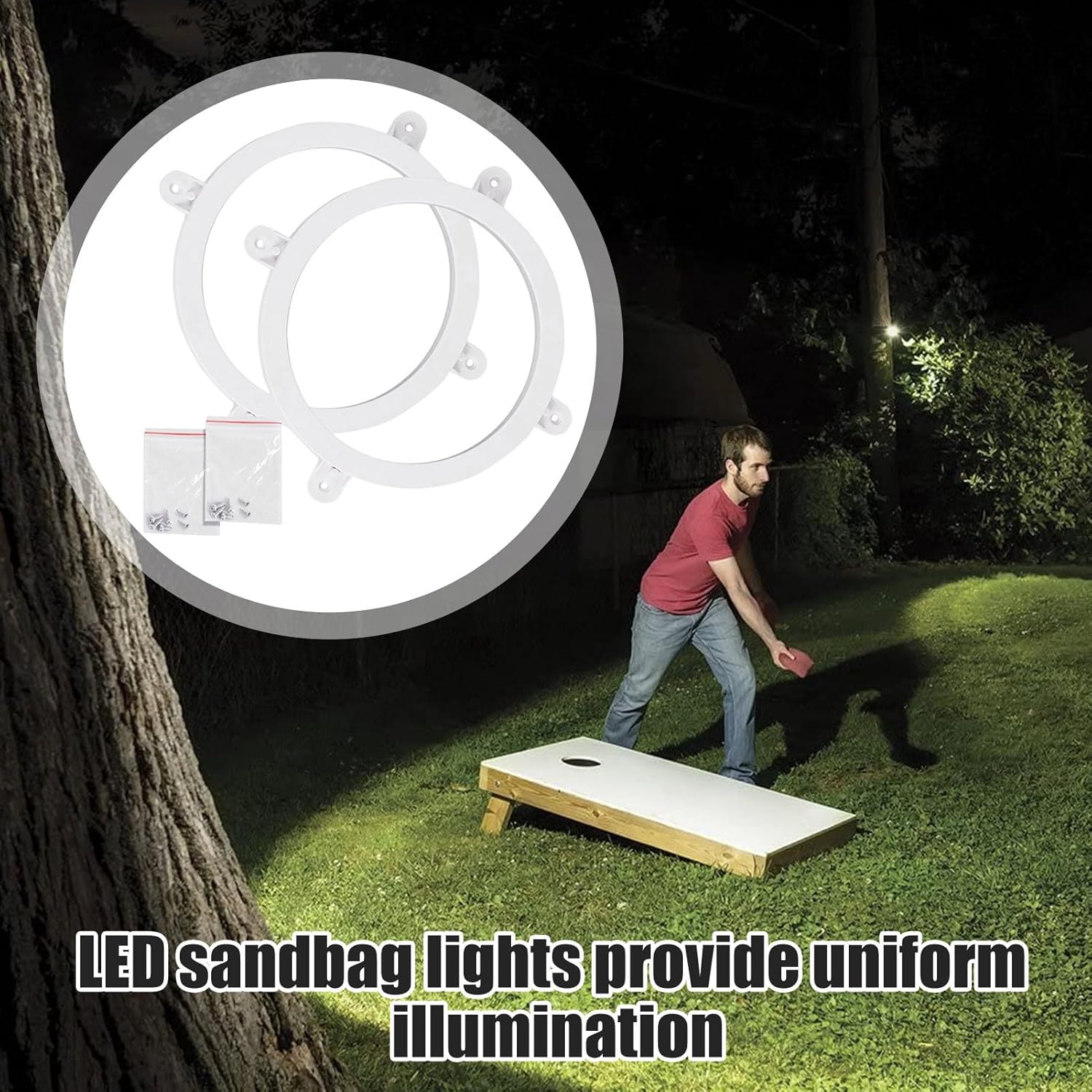 Facile da montare: con le viti incluse, puoi fissare le luci ai angoli della tavola in pochi minuti e goderti il divertimento di giocare a cornhole di notte. Applicazione completa: il tuo gioco di cornhole con vibranti luci ad anello che illuminano la scheda e il buco. per eventi all'aperto, picnic e campeggio, goditi più giorni o notte felice. Servire per molto : la lampada ad anello di cornhole a LED è realizzata con materiale addominali forte e ha una copertura diffusore accattivante per l'illuminazione di lunga durata. Regalo : trasforma il gioco del cornhole con queste luci ad anello; Facile da configurare e migliorerà la tua esperienza di gioco con luci a LED luminose e colorate. Un'aggiunta perfetta a qualsiasi festa all'aperto e un grande regalo per gli amanti della cornhole. Batteria al lavoro: alimentato da 2 batterie AA non incluse, 18 perle di lampada luminosa forniscono luce bianca affidabile e brillante. Con il loro design impermeabile, queste luci offrono prestazioni di lunga durata per ore di gameplay ininterrotto.