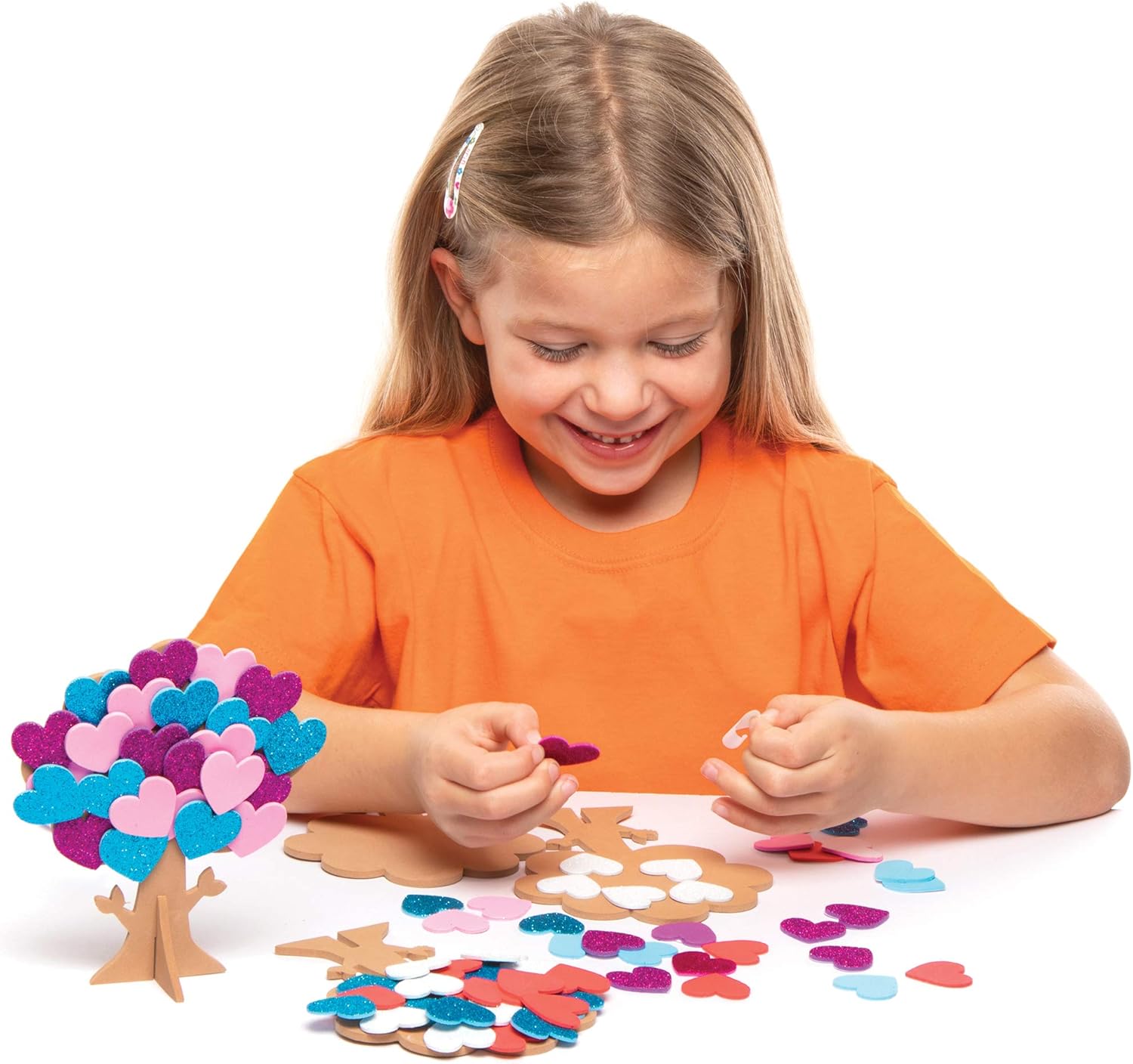 Per i piccoli artigiani: ogni albero di gommapiuma misura 15 cm di altezza e 4 mm di spessore, il che significa che i bambini possono attaccarsi e decorare a proprio piacimento. Facile da realizzare: nessuna colla richiesta.Ogni kit include un albero di gommapiuma, cuori di gommapiuma autoadesivi e cuori di gommapiuma glitterata. Disegni assortiti: scegli tra 8 colori di cuori assortiti, tra cui rosso, rosa chiaro, rosa scuro, azzurro, verde acqua, viola chiaro, viola scuro e bianco . Idee creative: l'artigianato unisex è perfetto per ragazze e ragazzi.Utilizzare per l'artigianato, l'arte, i regali, i premi, gli articoli da borsetta, i regali e altro ancora.Baker Ross si rivolge a una varietà di età e lascia ai clienti il compito di valutare se un bambino è abbastanza grande per un oggetto particolare.