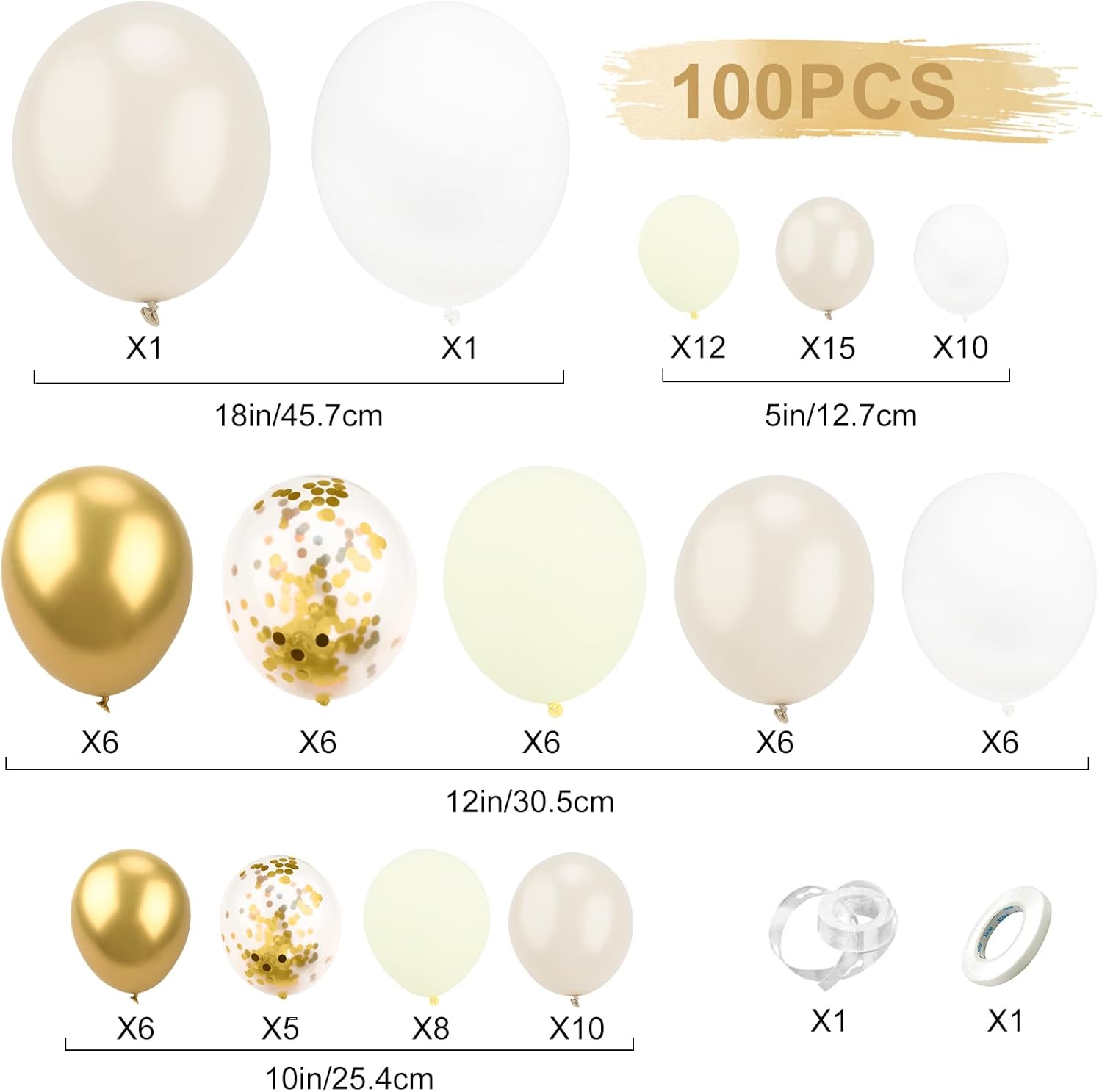 Qualità Premium: Il set di palloncini d'oro in metallo è realizzato in materiale di lattice di prima qualità, resistente e di lunga durata. Non sono tossici e sono ecologici, sicuri da usare sia per i bambini che per gli adulti. Possono essere riempiti con elio o aria. E possono mantenere l'aria per diversi giorni se legati saldamente. Perfetti per feste di compleanno, matrimoni, docce nuziali e altri eventi speciali Il pacchetto include: Questo set di palloncini coriandoli viene fornito con 32pcs palloncini bianco sabbia, 11pcs palloncini coriandoli d'oro, 17pcs palloncini bianchi, 12pcs palloncini d'oro metallico, 26pcs palloncino beige, un nastro bianco, e kit archi. Vi offre una buona scelta per fare una bella decorazione interna o esterna, per creare più tempo gioioso per le famiglie e gli amici Facile da usare: il kit viene fornito con nastri e archi kit per aiutarvi a creare l'oro ang bianco palloncino kit ghirlanda arco. Gonfiare i palloncini di tutti i colori, quindi utilizzare il nastro per fissarli. Il kit di archi può aiutare a fissare meglio i palloncini in posizione! La vostra bellissima decorazione per feste sarà pronta in pochissimo tempo. Perfetto per aggiungere un tocco di eleganza a qualsiasi evento Come fare un palloncino di coriandoli: Poiché i coriandoli sono più pesanti dell'elio, si muovono in direzione della gravità. Strofinando il lato esterno del palloncino sui capelli (il modo migliore) o sulla seta o sulla lana, i coriandoli si attaccheranno al palloncino. Questo renderà i palloncini più belli. Ideali per creare un'atmosfera da sogno in occasione di matrimoni, fidanzamenti e feste di genere Adatto a tutte le occasioni: Questo set di palloncini è una decorazione perfetta per qualsiasi festa. Perfetto per baby shower, decorazioni dorate, banchetti, feste di compleanno, anniversari, celebrazioni, inaugurazioni, Halloween, Natale, ecc. per attività al chiuso o all'aperto. Ottimo per creare un'atmosfera festosa in qualsiasi riunione o celebrazione