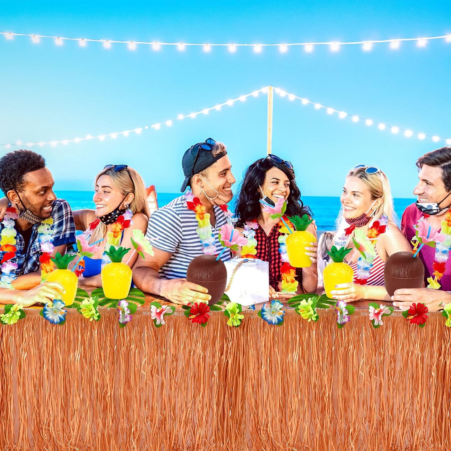 Kit capanna Tiki Bar: riceverai 1 capanna tiki bar con decorazione a ghirlanda di ibisco, 1 gonna da tavolo hawaiana, 24 foglie di palma tropicale artificiale, 24 fiori di ibisco, 24 ghirlande hawaiane colorate, 12 tazze di cocco, 12 tazze di ananas e 4 nastri. Stabile e robusto: il telaio del supporto da tavolo tiki hut bar è composto da 4 aste segmentate in plastica di qualità e connettori accurati, non facili da rompere, con tetto in plastica finta paglia; Il tiki bar da esterno è pieghevole, facile da riporre, comodo per il prossimo incontro e può essere applicato più volte Ghirlanda di ibisco e tazze per feste Luau: le ghirlande di ibisco sono realizzate in morbido materiale poliestere leggero, comodo al tatto, affidabile e riutilizzabile; I bicchieri da festa hawaiani con cannucce e fiori di ibisco colorati sono realizzati in plastica PP, robusti e di lunga durata, e sono riutilizzabili dopo la pulizia Facile da montare: il telaio del tetto in erba della capanna tiki bar è composto da 4 diverse lunghezze di pali sezionati in plastica e 4 diversi connettori che si incastrano e si rompono facilmente per una pulizia e uno stoccaggio efficienti che consentono di regolare l'altezza; Ci saranno le istruzioni per l'installazione, basta seguire le istruzioni per assemblare Foglie tropicali artificiali e fiori di ibisco: le foglie di palma hawaiane e i fiori di plastica hawaiani sono realizzati in materiale poliestere di qualità, sembrano foglie e fiori veri, è facile fissarli con nastro adesivo o attaccarli al muro per creare splendidi bomboniere per feste luau