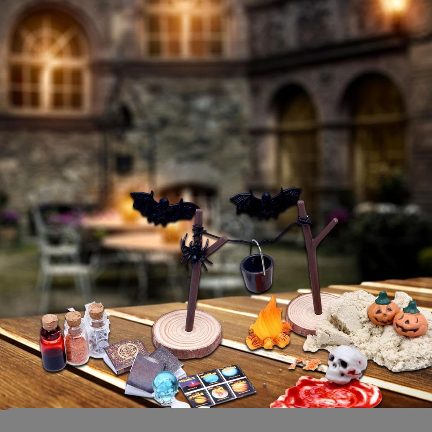 di Halloween: 27 pezzi di decorazioni di Halloween in miniatura. Soddisfa le tue esigenze per una scena di Halloween spettrale e divertente con questo set di in miniatura. Include ragni in miniatura, rami, zucche, secchio, scopa, scheletri e altro ancora. Puoi mescolarli e abbinarli per creare la tua casa infestata o il tuo cimitero. Durevole e durevole: questo mini set da casa delle bambole è realizzato in materiale ABS robusto e resistente, che può essere riutilizzato per molti Halloween. Il design raffinato e compatto aggiungerà un tocco spettrale all'arredamento della tua casa. Facile da riporre: la nostra scena in miniatura della casa delle bambole di Halloween è piccola, leggera e facile da riporre. Le sue caratteristiche spettrali includono una casa infestata, un campo di zucche e un cimitero. per una decorazione di Halloween divertente e inquietante che non occuperà troppo spazio. Ampia applicazione: questa scena in miniatura della casa delle bambole di Halloween è una decorazione desktop che ti consente di creare il tuo paesaggio spettrale. È possibile utilizzare gli forniti per progettare e organizzare la scena in base alle proprie preferenze. È adatto a qualsiasi giardino, patio o balcone e aggiungerà un tocco di orrore e divertimento al tuo Halloween. Delizia di Halloween: il tuo gioco di decorazioni di Halloween con questa scena di casa delle bambole in miniatura che crea spettacolo accattivante che attira l'attenzione di tutti. Aggiungi dettagli spettrali all'angolo della tua festa o alla casa infestata e intensifica l'atmosfera di Halloween come mai prima d'ora con i suoi intricati dettagli.