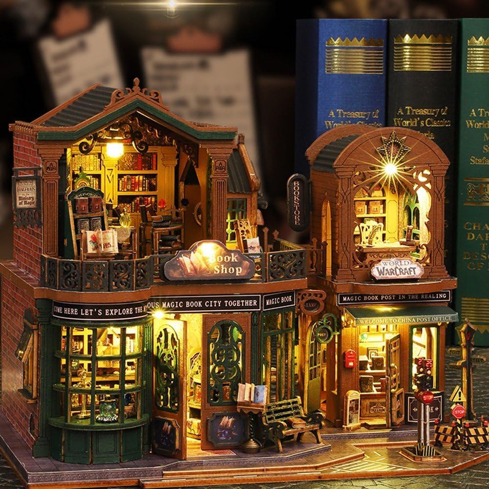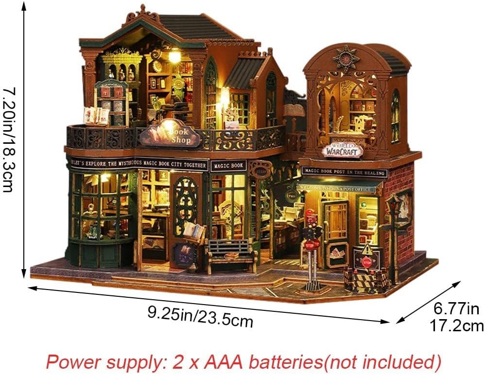 Kit casa delle bambole fai-da-te: casa delle bambole in miniatura da assemblare da solo, non c'è bisogno di preoccuparsi delle difficoltà, c'è un opuscolo con stampa a colori in inglese un'immagine dettagliata, facile da capire da seguire. Hai solo bisogno del tuo tempo e della tua pazienza per incollare, assemblare e incollare tutte le parti insieme, una volta finito avrai una fantastica esperienza. Kit: Il nostro kit è confezionato in una scatola colorata con gli accessori mostrati, come carta, legno, metallo, tessuto, plastica e luci LED. Se vuoi costruire una casa delle bambole in miniatura fai-da-te, questo nuovo modello è un'ottima scelta. Materiale sicuro e durevole: questo nuovo kit per casa delle bambole in miniatura fai-da-te è realizzato in legno di alta qualità, robusto, sicuro e privo di sostanze nocive. I materiali del kit sono ecologici, i bordi sono levigati uniformemente per una finitura senza sbavature, spessa, durevole, sicura e altamente resistente alla flessione e alla rottura. Adatto a persone di età superiore ai 14 anni. Regalo perfetto, eccellente decorazione per la casa: un regalo significativo per San Valentino, compleanno, Natale per i tuoi bambini, famiglia e amanti! Nessuno rifiuterà un regalo così fatato. Non solo può sviluppare abilità manuali, ma anche un artigianato più delicato della media. Una volta finito, può essere una decorazione perfetta per la casa. Il kit per la casa delle bambole fai-da-te è più significativo da collezionare. Design speciale: la libreria vintage DIY Cottage è un luogo d'incontro ideale per gli amanti del vintage. Scegli mobili in stile vintage, librerie color noce, sedie in legno, divani vintage, ecc. Questi mobili non sono solo pratici, ma apportano anche un tocco vintage alla tua libreria. Crea uno spazio che sia allo stesso tempo bello e funzionale, in modo che tutti possano trovare un po' di pace e bellezza nella loro frenetica vita quotidiana.
