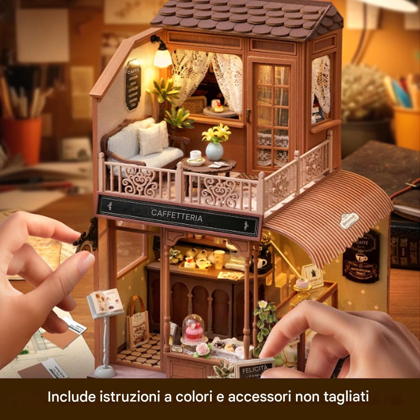 Design Ricercato: Questo kit casetta in miniatura unisce un design elegante alla funzionalità, apprezzato dagli appassionati di fai da te che amano la creazione manuale, promuovendo un senso di realizzazione e comfort in ambienti festivi o domestici con atmosfera intima e invitante Montaggio intuitivo senza sforzo: pretagliati e adesivi integrati guidano in un assemblaggio intuitivo attraverso istruzioni illustrate, rendendo il processo creativo enjoyable per serate dedicate al miglioramento e capacità artistiche Protezione 'Arte: Questo kit di casa di bambole in miniatura include una copertura trasparente che protegge dalla polvere, preservando ogni dettaglio a creazione e permettendo di esibirla con orgoglio come parte a decorazione domestica, mantenendo intatta la sua bellezza nel Supporto Apprendimento Creativo: Con il kit di costruzione a casa in miniatura, gli utenti sviluppano pazienza completando procedure dettagliate, garantendo un'esperienza accessibile a tutti e potenziando le capacità di pensiero spaziale durante attività di costruzione focalizzate Kit Completo e Pronto all'Uso: Questo Miniature House Kit include tutti i materiali necessari per la costruzione, offrendo un'esperienza di montaggio senza intoppi che migliora le capacità manuali mentre crea ricordi indimenticabili con i propri in un ambiente domestico accogliente e rilassante durante il libero