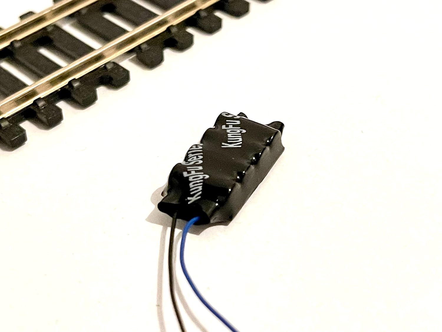 Descrizione prodotto Senza interruzioni su binari morbidi e sporchi! Questo è un kit di condensatore buffer pronto per essere installato. Questo condensatore a tampone memorizza energia nella cache per consentire alle locomotive con decoder DCC di continuare a funzionare in caso di interruzioni di alimentazione a breve termine, senza dover spingere manualmente sul punto debole. Ho testato questo me stesso e ho osservato un bridge di oltre quattro secondi di interruzioni con questo prodotto. Questo è un grande aiuto anche per i decodificatori con suono, poiché non si crea più una brutta interruzione del suono. Molti decodificatori digitali dispongono già di connettori predefiniti per condensatori a tampone. Si prega di consultare le istruzioni per l'uso del decodificatore. Se questo kit condensatore viene utilizzato con un decodificatore LaisDcc (disponibile anche qui su Telegraph Rail), è necessario unire solo i cavi blu (polo positivo) e nero (massa). Lunghezza del cavo: circa 11 cm Avviso di sicurezza nessun