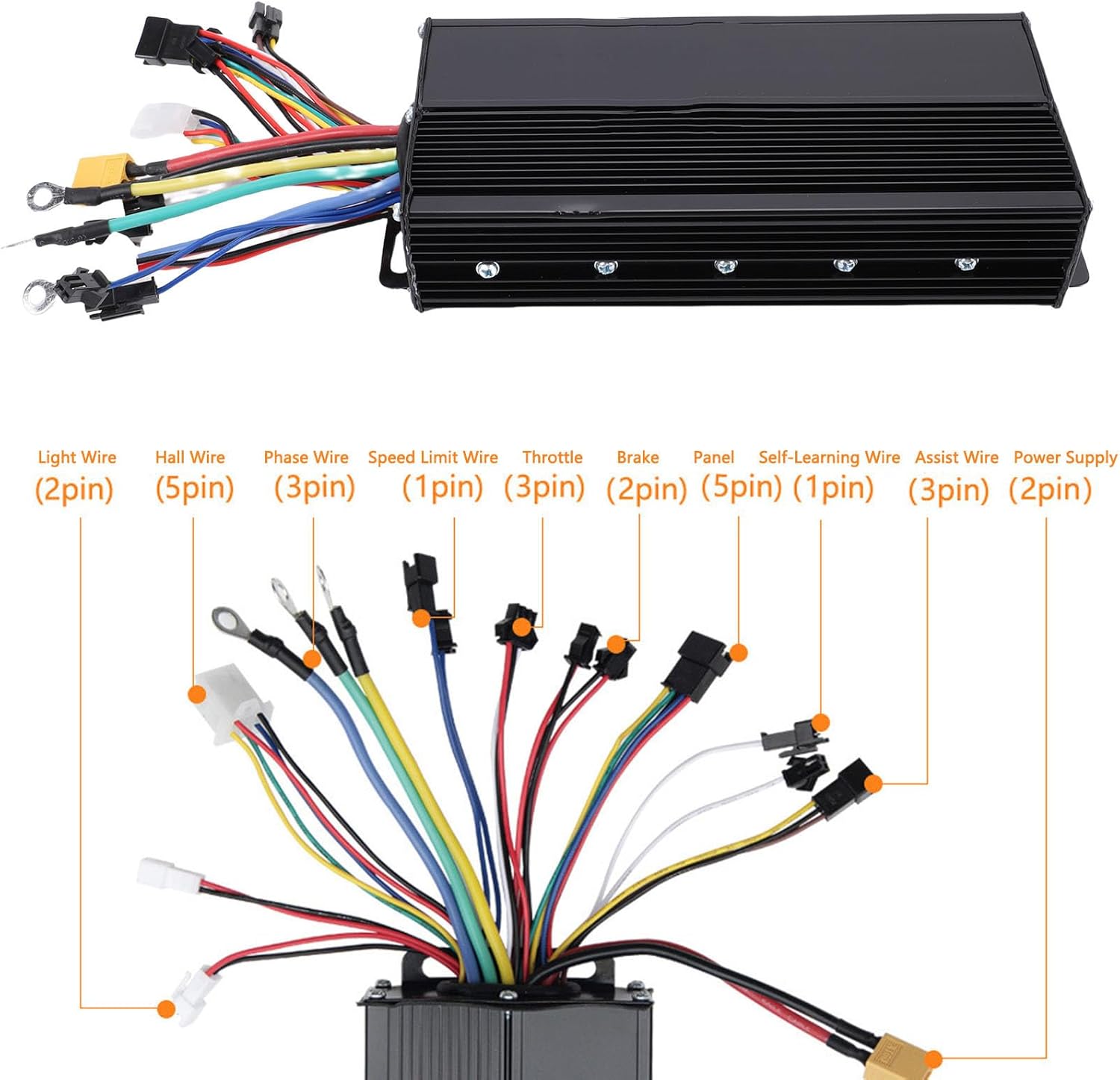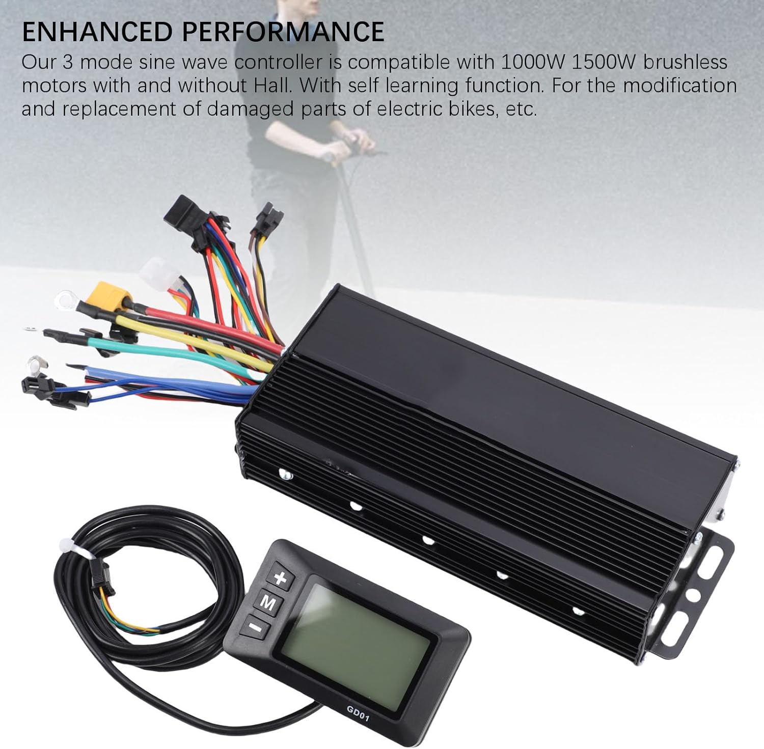 PRESTAZIONI MIGLIORATE: il nostro controller a onda sinusoidale a 3 modalità è compatibile con motori brushless da 1000 W 1500 W con e senza Hall. Con funzione di autoapprendimento. Per la modifica e la sostituzione di parti danneggiate di bici elettriche, . COSTRUZIONE PREMIUM: l'alloggiamento in lega di alluminio del controller della bici elettrica è ottimo per la dissipazione del calore. Questo design protegge i cavi da eventuali danni e previene il surriscaldamento, garantendo una maggiore durata del controller. PANNELLO DISPLAY LCD: Il pannello è realizzato in materiale ABS, leggero, robusto, con pregevole fattura, buone prestazioni di tenacità, fornendo una migliore protezione per il circuito interno e rendendolo più duraturo. FACILE DA USARE: il display LCD può visualizzare chiaramente i dati, facile da usare. È un kit di modifica in grado di migliorare il divertimento di guida, offrirti un'esperienza di guida più confortevole, adatta ai ciclisti che amano le sfide. LAVORO SILENZIOSO: il controller di velocità del motore della bici elettrica funziona silenziosamente ed è sensibile allo stato della bici elettrica, offrendoti un'esperienza di guida più confortevole.