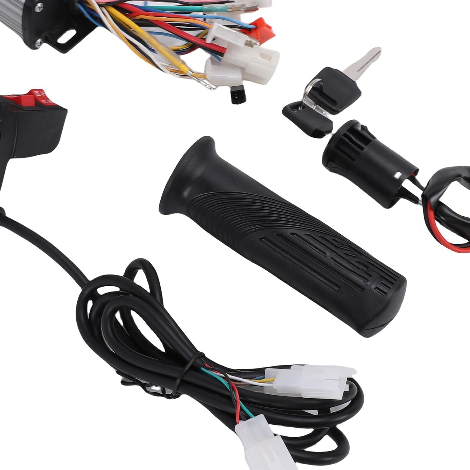 Kit completo: il set del controller del motore elettrico include un controller, una coppia di manopole dell'acceleratore, un interruttore di accensione e due chiavi, offrendo una soluzione completa con una potenza nominale di 350 W. Custodia in alluminio: la custodia in lega di alluminio spazzolata del controller presenta scanalature che migliorano l'efficiente dissipazione del calore, prevenendo il surriscaldamento dei circuiti interni. Funzionalità di protezione complete: dotato di protezione da sottotensione, protezione da sovracorrente e protezione da stallo, questo controller garantisce sicurezza e affidabilità in varie condizioni operative. Installazione semplice: progettato configurazione semplice, il kit controller motore è adatto per bici elettriche, tricicli elettrici e motocicli, facilitando una rapida integrazione. Ideale per gli aggiornamenti: eccellente per sostituire controller vecchi o danneggiati, questo pratico kit controller è adatto alla guida all'aperto e può essere utilizzato per conversioni e aggiornamenti elettrici.
