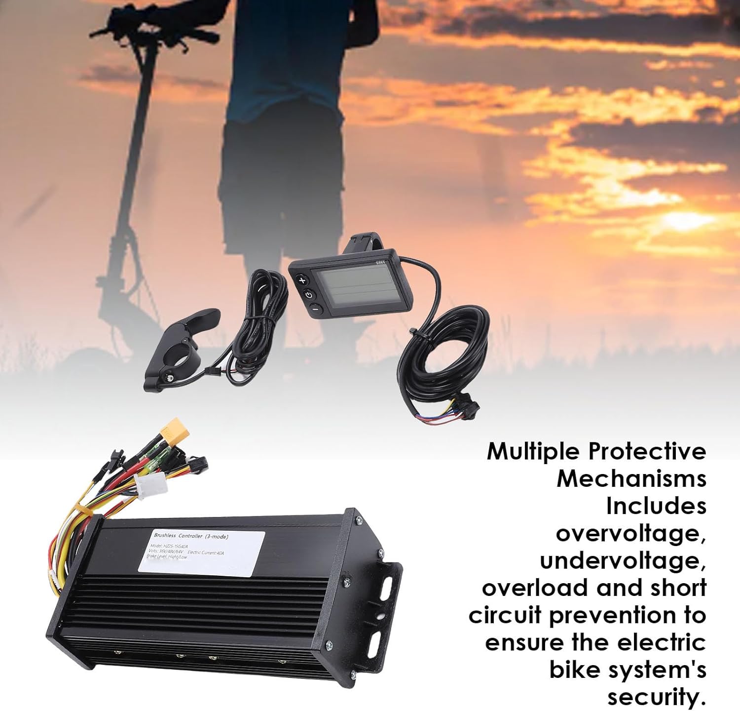 Identificazione automatica intelligente: questo controller dispone di una tecnologia intelligente che rileva automaticamente la potenza del motore compresa tra 1000 W e 1500 W. Non è necessaria una complicata configurazione manuale. Pannello di visualizzazione: il kit di modifica include un pannello di visualizzazione completo che consente agli utenti di visualizzare facilmente importanti informazioni sullo stato della bici elettrica e regolare le impostazioni secondo necessità. Controllo avanzato del motore brushless: utilizzando la tecnologia avanzata di controllo del motore DC brushless, il controller garantisce un'esperienza di guida eccezionalmente fluida ed efficiente. Meccanismi di protezione: include molteplici funzioni di protezione tra cui protezione da sovratensione, sottotensione, sovraccarico e cortocircuito per garantire che il sistema della bici elettrica funzioni entro parametri sicuri. Processo di installazione semplice: questo kit è progettato per una facile installazione ed è adatto per progetti di conversione di biciclette o applicazioni di riparazione. Il semplice processo di configurazione consente sia agli appassionati di fai da te che ai meccanici professionisti di aggiornare le biciclette, aumentando efficacemente il piacere di guida.