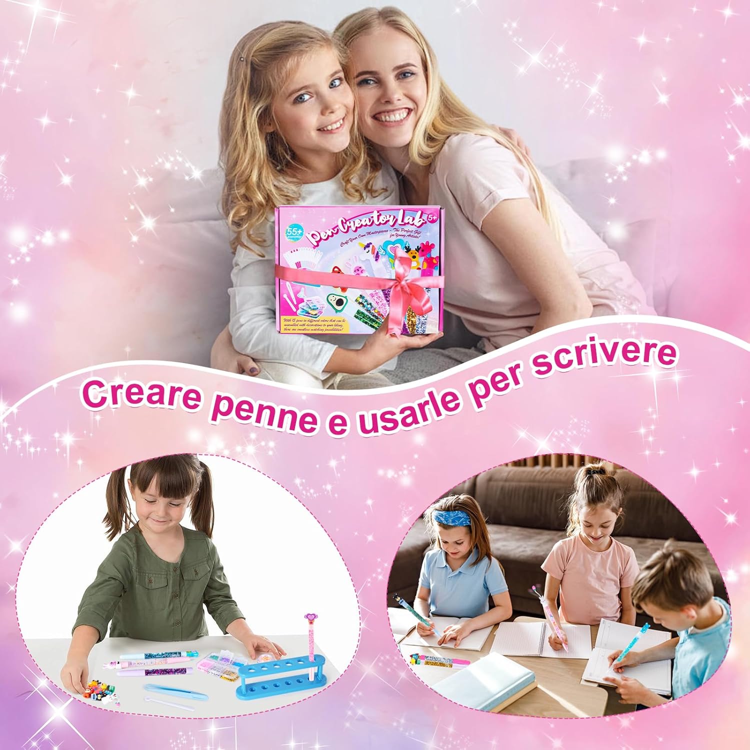 【Fabbrica delle Penne】Questo set di penne fai da te contiene 15 penne (ricariche incluse), 15 tappi decorativi, 20 ricariche di ricambio, 19 tipi di accessori fai da te, 1 portapenne, 1 imbuto, 1 pinzetta, 1 cucchiaio e istruzioni. I ricchi accessori del kit di bricolage offrono possibilità creative illimitate, i bambini possono costruire le loro penne scintillanti uniche e divertirsi con la creazione! 【Incoraggiare l'immaginazione e la Creatività】Abbiamo selezionato con cura diversi stili di tappi decorativi e varie paillettes per incoraggiare i bambini a usare la loro immaginazione per abbinare e creare le loro penne personalizzate. I mestieri aiutano a migliorare le capacità manuali dei bambini e a sviluppare l'immaginazione e la creatività. 【Coltivare la Pazienza e la Concentrazione】Creare penne richiede pazienza e attenzione ai dettagli, aiutando i bambini a concentrarsi e a sviluppare la perseveranza. È un'attività artigianale adatta a bambini e bambine dai 4 ai 12 anni, che permette loro di allontanarsi dagli schermi e arricchire la loro infanzia. 【Usi Versatili】A casa, i bambini possono creare bellissime penne con i loro genitori, condividendo momenti preziosi insieme. A scuola, possono collaborare alla creazione e alla presentazione delle loro opere d'arte. Le penne artistiche che realizzano possono essere utilizzate anche per scrivere diari o prendere appunti in classe. Questo è un kit di artigianato per bambini divertente e pratico. 【Regalo Ideale per i Piccoli Creatori】Questo diy kit è ideale per i compleanni dei bambini, per Natale e per Pasqua. È una scelta regalo deliziosa per i bambini e le bambine dai 4 ai 12 anni e incoraggia il divertimento e la creatività nei loro progetti.