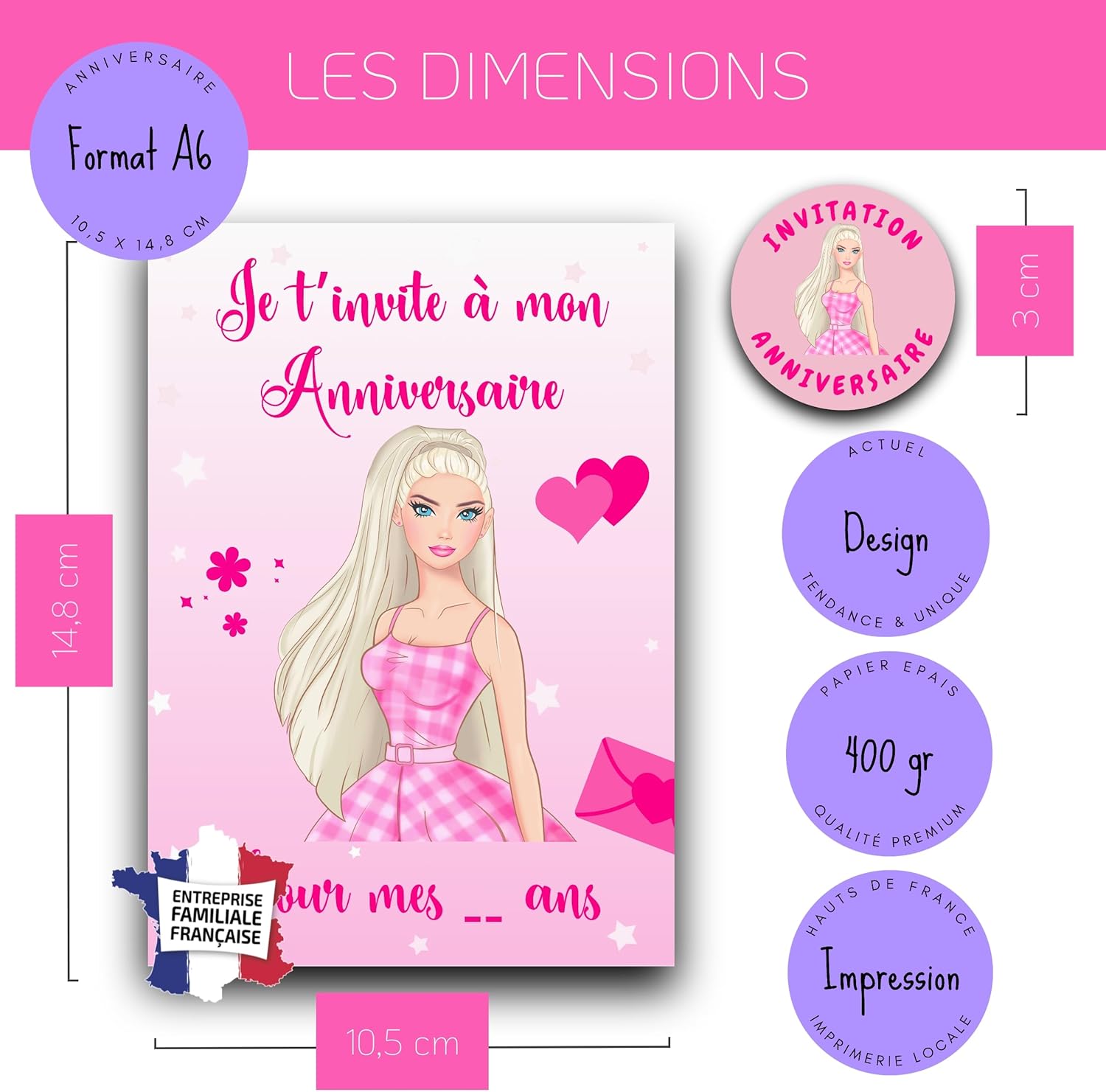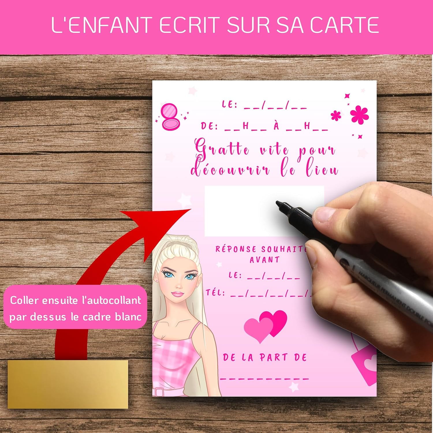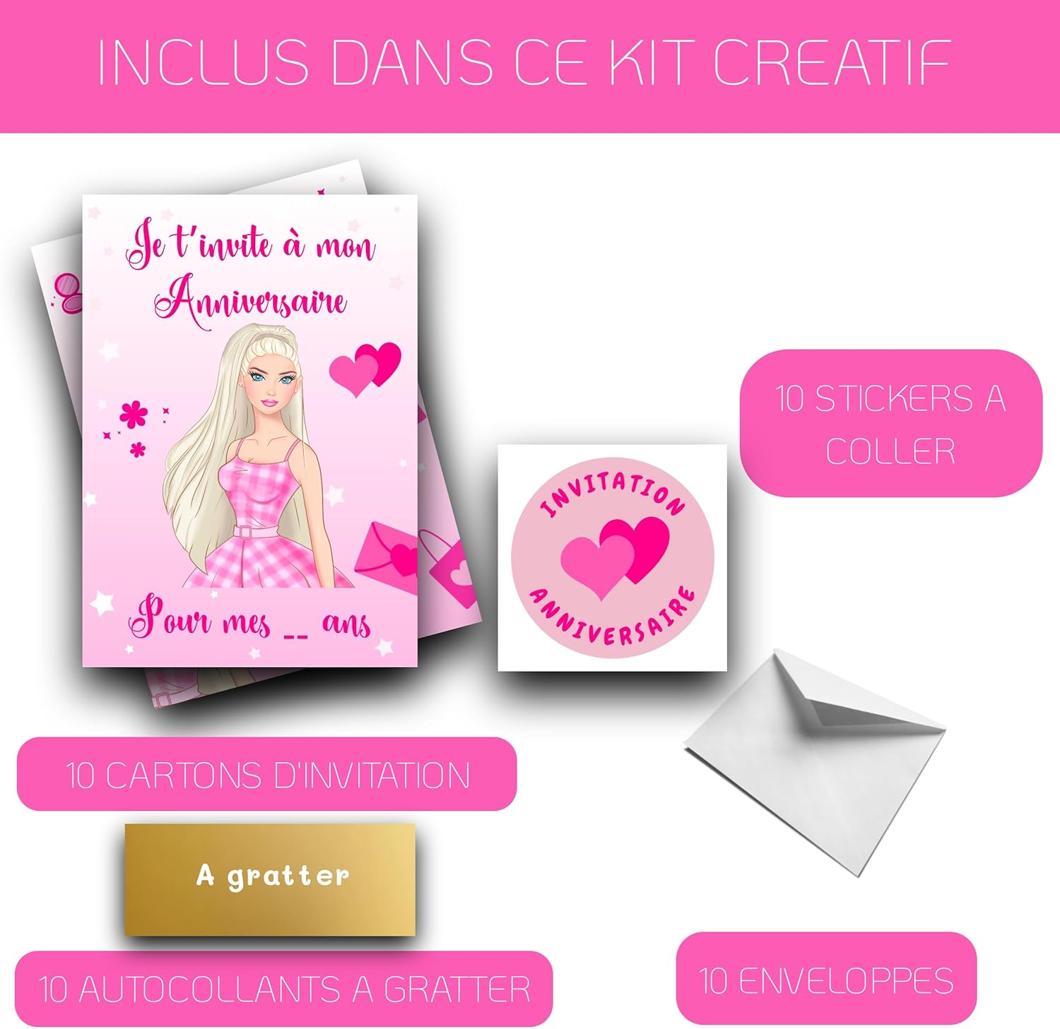 Un kit creativo e completo per inviti a tema Bambola indimenticabili! La confezione include 10 biglietti da grattare, 10 buste bianche e 10 adesivi per bambole. Ideale per ragazze e ragazzi, ogni invito renderà la preparazione della festa divertente ed emozionante. Raschiare l'adesivo dorato per rivelare il luogo magico della festa! ␞ Inviti creativi e giocosi da personalizzare per i tuoi piccoli artisti! : Ogni biglietto d'invito a tema bambole consente ai bambini di creare inviti unici decorando e riempiendo ogni carta. Ideali per invitare amici, amici e fidanzate, questi inviti donano un'atmosfera allegra e colorata. Un tema bambola accattivante per tutte le feste di compleanno! : Che si tratti di un compleanno o di un'altra festa speciale, questi inviti a tema bambola catturano l'attenzione degli ospiti. Progettati con un design di qualità e colori rosa e pastello, creano un'atmosfera chic e giocoso che divertono tutti gli ospiti. Qualità premium e design eco-responsabile in Francia! Prodotte in Francia, i nostri biglietti sono stampati su carta certificata Print Verde, garantendo una qualità superiore e un'impronta ecologica ridotta. Ogni biglietto è accuratamente progettato da un'azienda a conduzione familiare, perfetto per una festa di successo ed ecologica. Adesivi da grattare dorati per sorprese e sorrisi! : Gli adesivi dorati da grattare aggiungono un tocco di mistero e curiosità ad ogni invito. Incoraggia i tuoi figli a partecipare attivamente all'organizzazione della loro festa distribuendo questi inviti unici, pieni di fascino e sorprese!