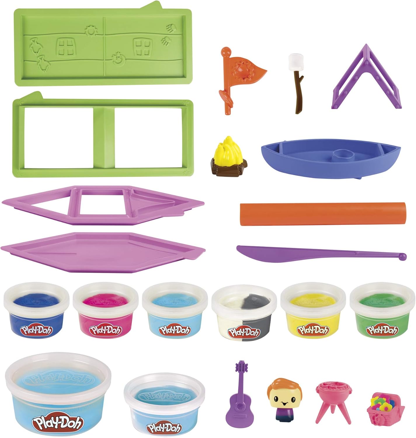 Il tuo campeggio Play-Doh fai-da-te: questo set creativo per bambini dai 5 anni in su viene fornito con tutto il necessario per costruire, decorare e personalizzare una tenda Play-Doh colorata e divertente Facile e divertente da costruire: strumenti facili da usare e semplici istruzioni passo passo rendono questo kit di progetto un fai-da-te facile da immaginare e creare per i bambini Personalizzalo a modo tuo: i bambini hanno molti modi per costruire, decorare e ricostruire con 8 barattoli di pasta Giocattolo modellabile Play-Doh riutilizzabile in colori divertenti come blu, verde, giallo, e altro ancora (contiene grano) Personaggio giocattolo del campeggiatore: l'adorabile personaggio del campeggiatore in plastica e gli accessori come un braciere e una canoa rendono divertente per i bambini giocare al campo una volta completata la tenda. Diventa un costruttore di Play-Doh: questo kit di progetto è un fantastico regalo per i bambini che amano essere creativi e costruire con arti e mestieri come la plastilina. Funziona con qualsiasi confezione di ricarica classica Play-Doh (venduta separatamente)
