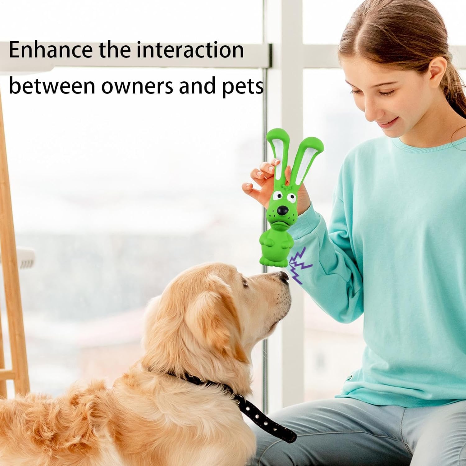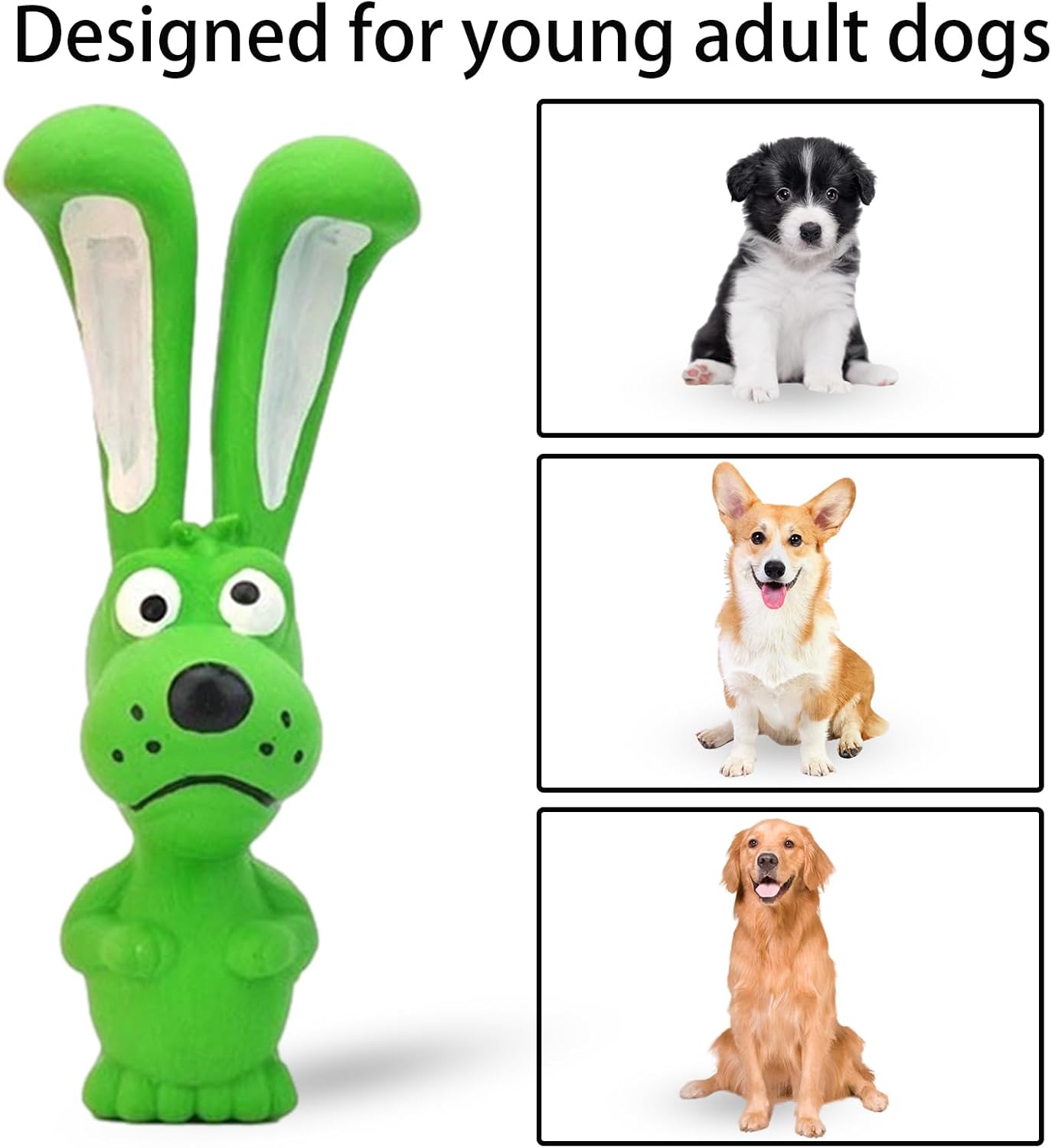 Sicuro per l'ambiente: realizzati in lattice naturale, questi giocattoli cigolanti per cani non sono gli unici sicuri ed ecologici, ma anche inodori. Dotati di tecnologia resistente ai morsi, sono costruiti per durare e non producono crepe per un lungo periodo di utilizzo giocoso. Giocattoli da masticare: coinvolgi il naturale istinto di masticare del tuo cucciolo con questi giocattoli per dentizione durevoli; progettati per promuovere l'igiene e mantenere i denti sani. Migliora il legame del proprietario di animali domestici: con le sue lunghe orecchie a forma di animale e la consistenza unica, questo giocattolo in lattice cigolante suscita l'interesse del tuo cane, migliorando l'interazione e approfondendo la connessione emotiva tra voi due. Ideale per l'esercizio fisico e lo sviluppo intellettuale, fornisce interazioni interessanti. Fascino per la cura: il design a pressione equalizzata dei nostri giocattoli per cani in lattice cigolante offre un'esperienza morbida e solida con una pressione uniforme che protegge i denti del tuo cane durante il gioco. Goditi un giocattolo con elevata flessibilità e il massimo supporto per la cura. Pet Joy: soddisfa il desiderio del tuo animale domestico di esplorare con i nostri giocattoli per cani in lattice cigolanti, dotati di un dispositivo audio integrato che attira l'attenzione del tuo animale domestico e produce un suono nitido quando mastica e gioca.