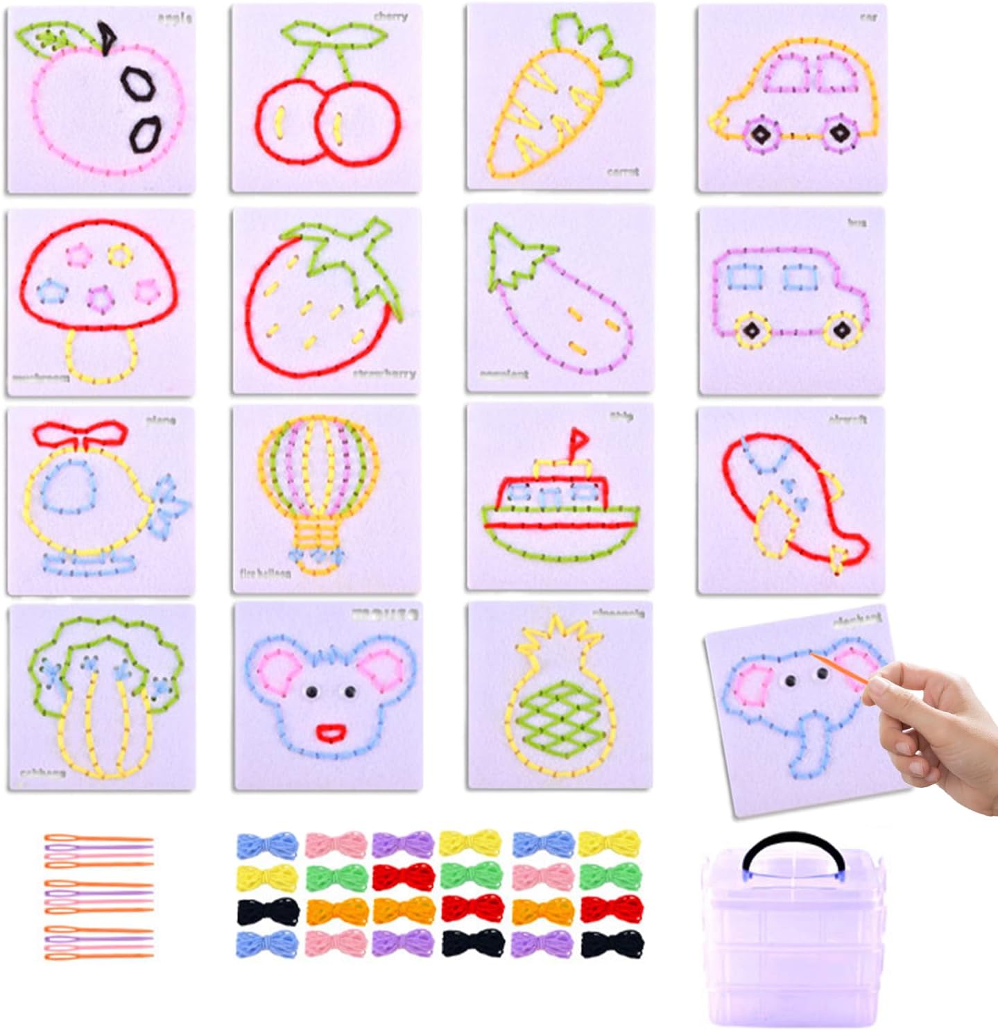 Promuove il pensiero logico: avvia la creatività 'immaginazione con il nostro kit da cucito per bambini. Collega i fili sulle carte da modellismo prestampate con vari filati colorati e aiuta i bambini a costruire forme e colori. Gioca a giochi di cucito interattivi per migliorare le capacità cognitive e comunicare legando e divertendosi con figlio Facile maestria nel cucito: adottando angoli sicuri per i bambini, materiali selezionati rispettosi 'ambiente, questo kit garantisce un divertimento continuo nell'infilare con una struttura resistente e pieghevole per durata e sicurezza Migliora la concentrazione: le attività tranquille rendono il kit da cucito per bambini una scelta perfetta per gli appassionati di giocattoli educativi, consentendo ai bambini di concentrarsi e sviluppare creatività, capacità motorie, coordinazione occhio-mano e sviluppo sensoriale. Migliora le loro abilità e promuovi la concentrazione con la nostra pratica bacheca Migliora l'immaginazione: incoraggia il pensiero innovativo nel nostro kit da cucito per bambini, offrendo un design portatile per ispirare l'ispirazione e la creatività dei bambini e sviluppare le loro capacità immaginative Sbocco creativo: fornisci stimoli sensoriali e incoraggia l'immaginazione con questo kit da cucito per bambini. Una scelta regalo perfetta, la sua caratteristica facile da tenere in mano lo rende adatto a bambini con bisogni speciali. Esplora colori, forme e motivi mantenendo la sicurezza e la creatività nel gioco. per i giovani che desiderano esplorare il proprio lato artistico