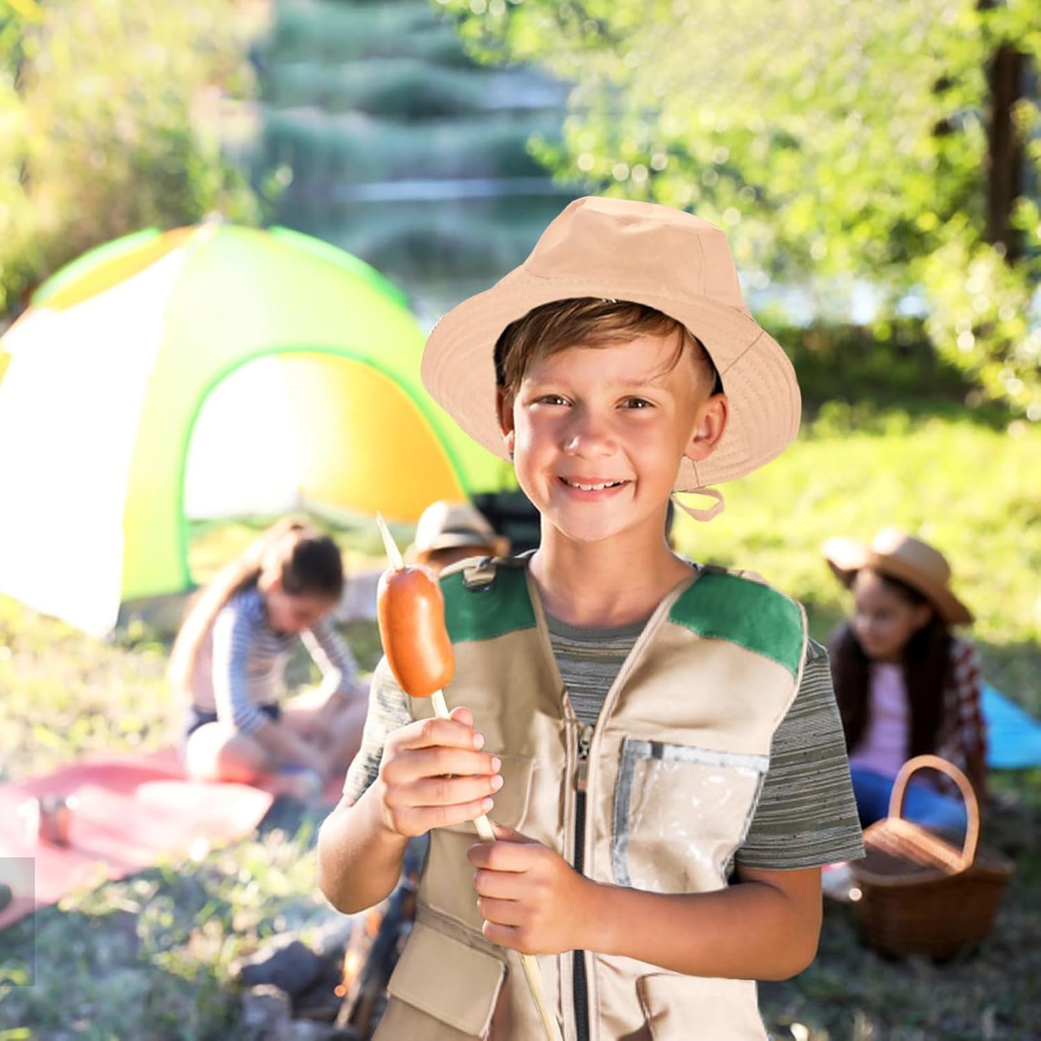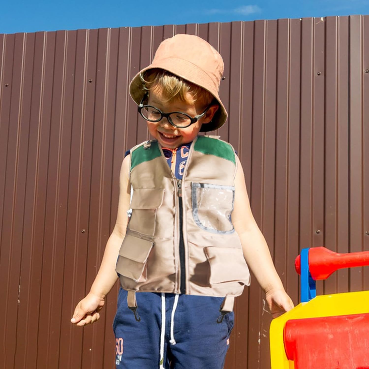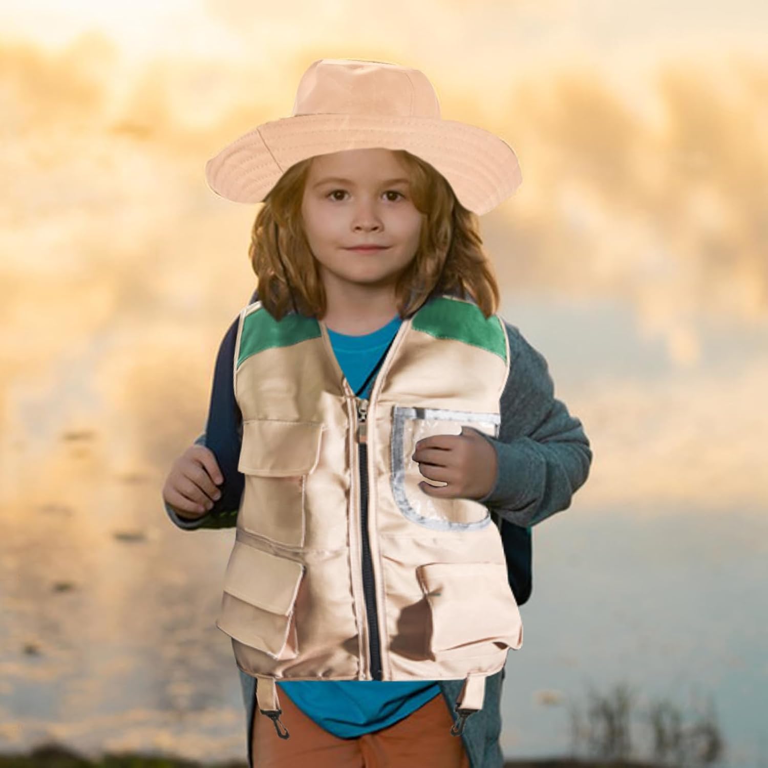 Set costume da esploratore: 1 gilet e 1 cappello a tesa larga. Indossare questo set da avventuriero può stimolare l'entusiasmo dei bambini per l'esplorazione, il gioco e l'interazione con la natura. È un outfit essenziale per le attività di esplorazione all'aperto. Gilet robusto: realizzato in resistente tessuto lavabile. Divertenti stampe giungla, tasche e anelli a D per riporre e trasportare tutti i tuoi oggetti essenziali. Perfetto per la caccia, il birdwatching, la pesca, il safari, l'escursionismo, il campeggio. Cappello per la protezione solare: un cappello a tesa larga può proteggerti dai raggi nocivi della natura. Questo cappello luminoso e carino può essere indossato in 3 modi diversi. Un cordoncino regolabile lo mantiene sicuro, mentre un cinturino in velcro a sgancio rapido lo mantiene sicuro. Stimola lo sviluppo cognitivo: il nostro set da esploratore all'aperto può incoraggiare i bambini a trascorrere più tempo all'aria aperta, promuovere la loro salute fisica e mentale, comprendere un mondo più ampio, risolvere enigmi sconosciuti, migliorare le loro capacità cognitive e crescere. Regalo ideale: l'abbigliamento da avventura dei nostri bambini è perfetto per il campeggio, l'escursionismo e l'esplorazione nel nostro giardino. Permettono ai bambini di giocare scoprendo la natura. È adatto a varie festività come la Festa dei bambini, i compleanni, la Pasqua e il Capodanno ed è il regalo ideale per i bambini della tua famiglia, amici e colleghi.