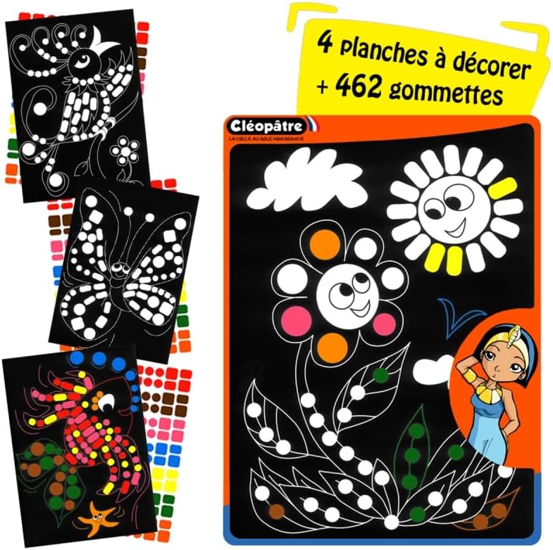 Kit da officina gommette Cleopatra Tema: naturaQuantità: 3 fogli A4 da 154 gommette o 462 gommette + 4 assi di decorazioniMotivi: forme geometricheTavole decorate con fessure gommetColore: rosso, rosa, blu, giallo, verde, arancione, marroneRiposizionabili Gommette ritagliate per facilitare la presa Se siete alla ricerca di un'attività ideale per un gruppo di bambini durante un compleanno o in classe, allora i kit di gommette Cleopatra sono la scelta giusta. Ideale per l'apprendimento di forme e colori, questo kit da laboratorio per gommette Nature svilupperà la creatività, la concentrazione e le capacità motorie dei tuoi bambini mentre familiarizza con la natura che lo circonda. Questo kit è composto da 4 tavole di decorazioni da decorare con l'aiuto delle 3 tavole di gommette dalle forme