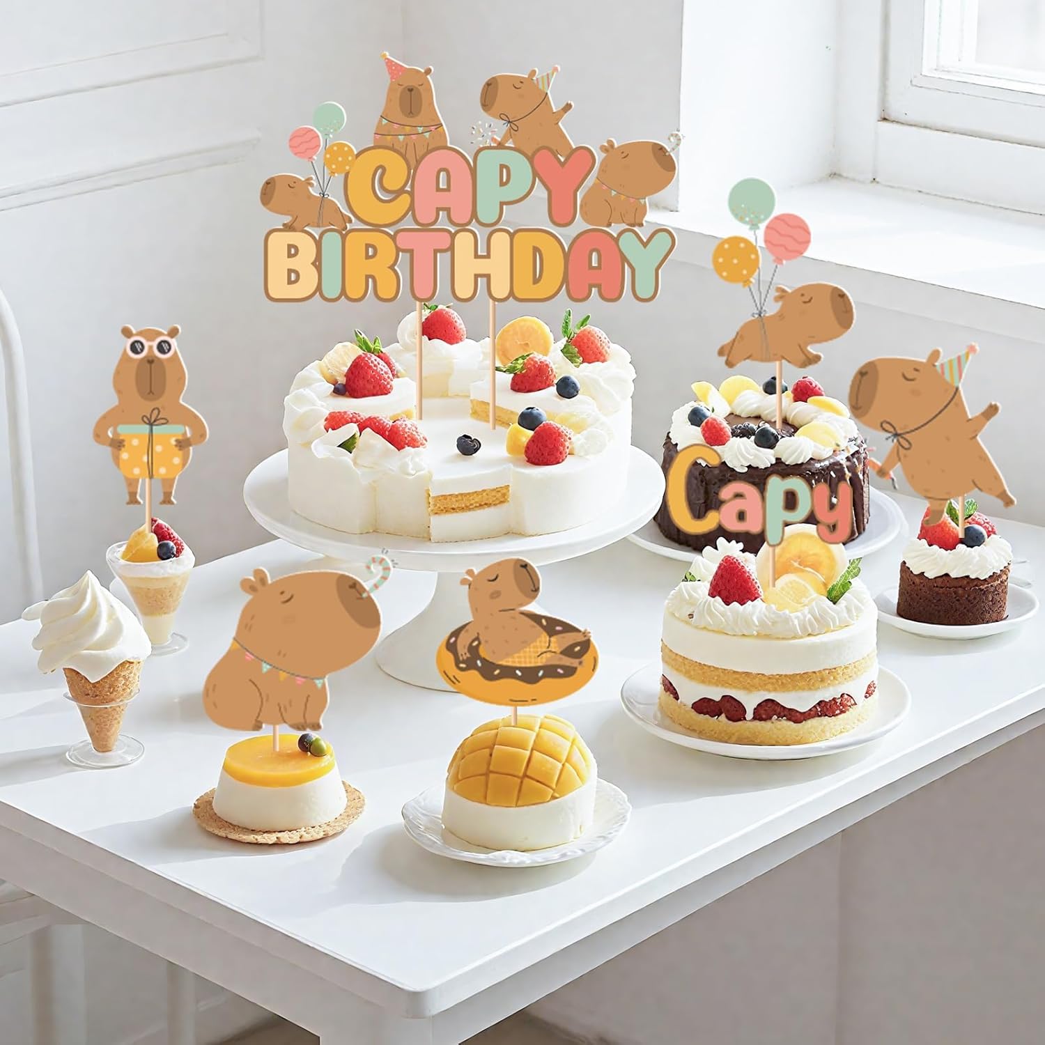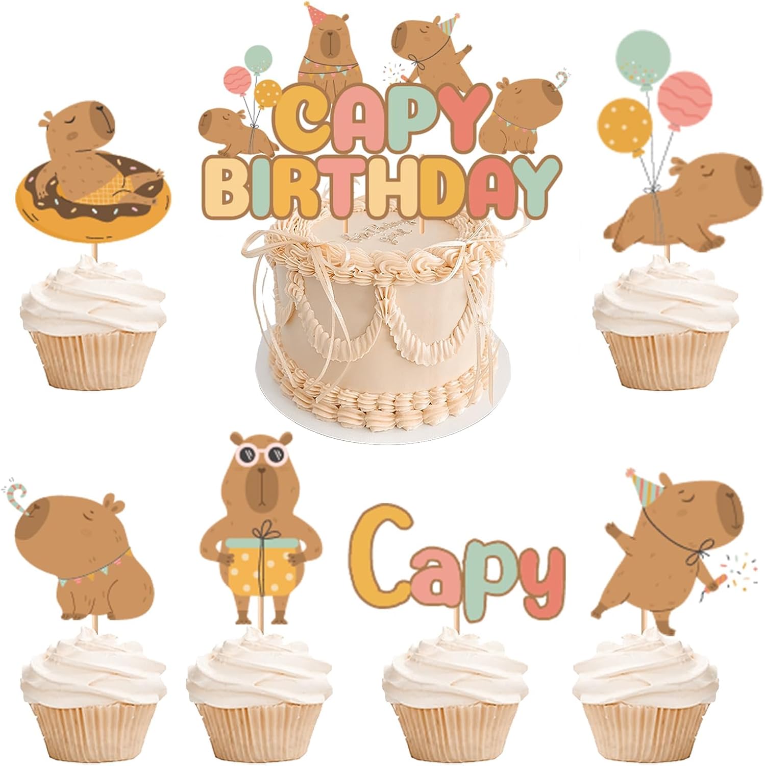Set di topper per cupcake Capibara carino per compleanno – Ricevi 1 topper per torta Capibara e 12 topper per cupcake Capibara (6 design unici, 2 per ciascuno) in dimensione 6,8 x 6,1 cm – la dimensione perfetta per rendere ogni dessert alla festa a tema Capibara un'attrazione! Perfetto per la festa di compleanno Capibara: Ideale per compleanni Capibara di ragazzi o ragazze, feste a tema animale, feste per animali domestici, incontri per amanti dei Capibara e altro! Queste incantevoli decorazioni di compleanno Capibara donano un tocco bizzarro a ogni evento, rendendo il vostro incontro indimenticabile. Stampa chiara: Portate in vita la vostra festa di compleanno Capibara con design Capibara vivaci! Ogni motivo si distingue per i colori brillanti, creando decorazioni per torte Capibara che risaltano anche da lontano. Perfetto per torte di compleanno e cupcake da dessert. Pronto per essere montato e facile da configurare: Niente stress da artigianato – basta appendere e via! Queste decorazioni per feste a tema Capibara pronte all'uso si inseriscono facilmente nella vostra torta di compleanno Capibara e in piccoli donuts, cupcakes, ecc. Qualità elevata e durabilità: Questi topper per torte e cupcake Capibara in cartoncino spesso e liscio sono resistenti a piegature e strappi. La stampa ad alta risoluzione rimane vivida, mentre il design rinforzato assicura una lunga durata, sia all'interno che all'esterno.