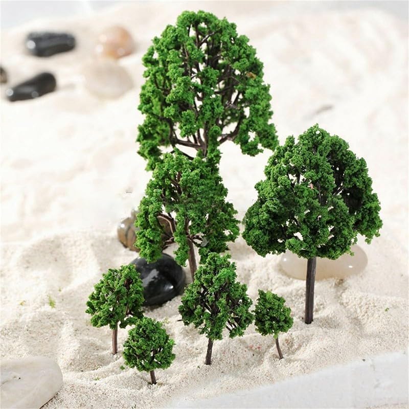 Alberi artificiali di dimensioni miste: questo set include 11 modelli di alberi di varie dimensioni, adatti per layout e decorazioni di diorami ferroviari ferroviari. Materiali di alta qualità: realizzati con materiali sicuri, longevità e affidabilità. Squisita fattura: ogni modello di albero è accuratamente realizzato con un alto effetto di simulazione, mostrando squisiti dettagli fatti a mano. Decorazione realistica: questi alberi modello servono come bellissime decorazioni, aggiungendo un tocco di verde e migliorando il realismo dei tuoi paesaggi modello. Applicazione versatile: perfetti per binari del treno o oggetti di scena per modellismo, questi alberi possono essere utilizzati anche come decorazioni per case, scrivanie, soggiorni, cucine, ecc. Possono anche servire come regalo per amici e compagni di classe.