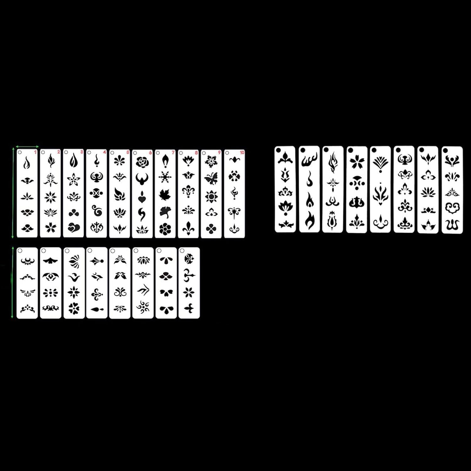 【Facile da pulire】: questi stencil per il trucco sono progettati per essere comodi; basta lavarli con per mantenerli puliti e pronti per il tuo prossimo progetto creativo 【Ottimo per progetti artistici creativi】: Progettati appositamente per il face painting o altre superfici artistiche, questi modelli per il trucco sono ideali per feste, mascherate e celebrazioni festive, ecc. 【Dimensioni adatte a tutte le età】: con dimensioni adatte sia ai bambini che agli adulti, questi stencil per la pittura del viso offrono la dimensione perfetta per tracciare su varie parti del corpo senza essere troppo grandi o troppo piccoli, garantendo facilità d'uso in qualsiasi artistica 【Stencil versatili per il trucco del viso】: crea splendidi disegni di trucco per sopracciglia con una varietà di tipi e motivi utilizzando questi versatili stencil per il trucco del viso, ideali per aggiungere un tocco unico a qualsiasi occasione 【Materiale di qualità premium】: Realizzati in PET pp di qualità, questi modelli fai da te sono flessibili, riutilizzabili e presentano superfici e bordi lisci. Con dimensioni ridotte 11,3 cm x 3 cm / 4,45 pollici x 1,18 pollici, motivo 1,5 cm-2 cm / 0,59 pollici - 0,79 pollici e dimensioni grandi 14 cm x 3 cm / 5,51 pollici x 1,18 pollici, motivo 2 cm-2,2 cm / 0,79 pollici - 0,87 pollici