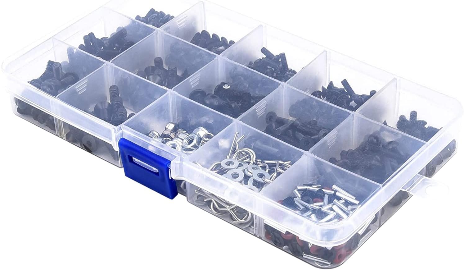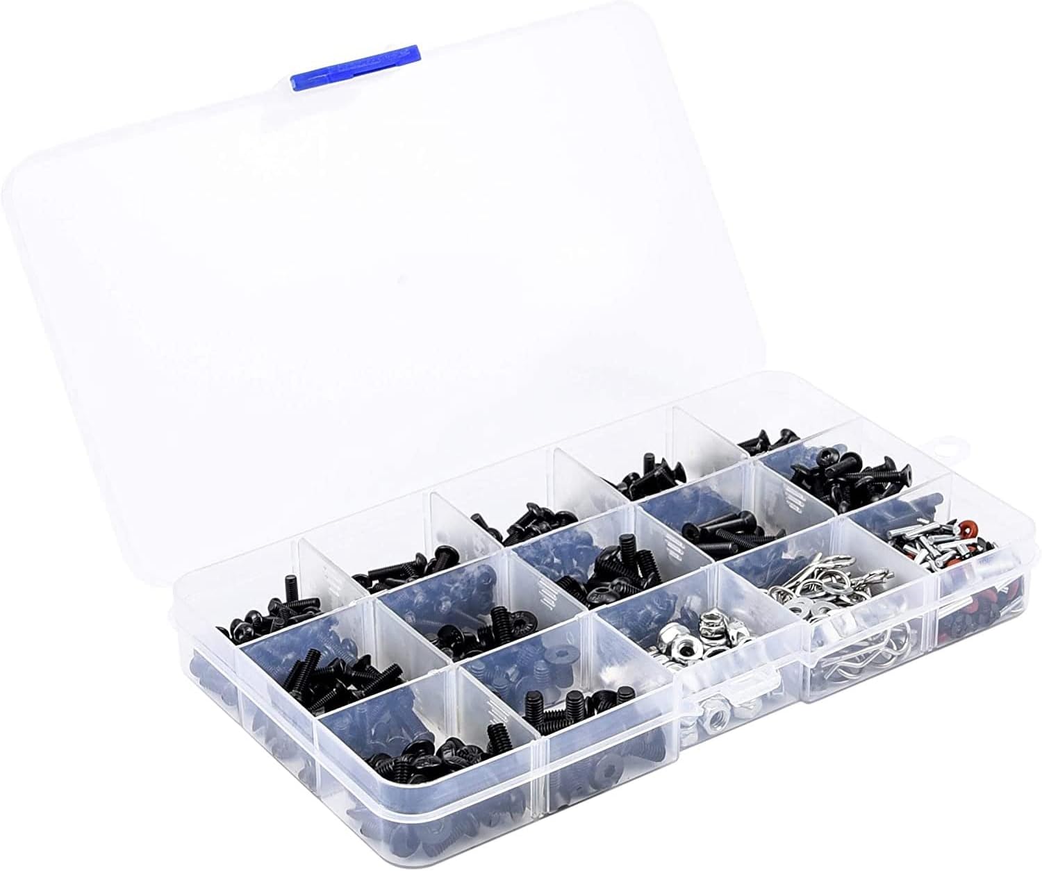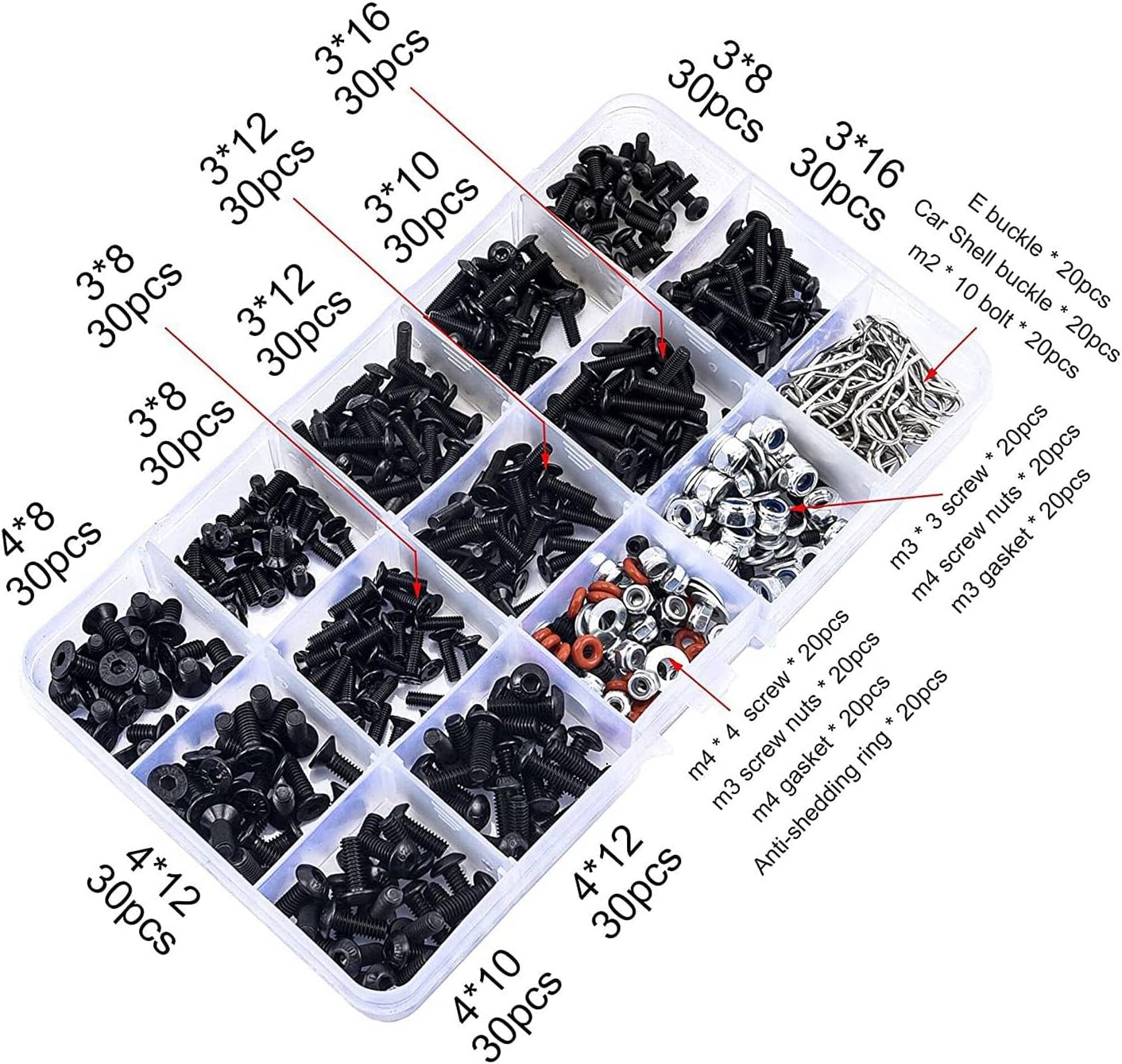 500 pezzi in totale, fibbia M3/E/fibbia auto/ a vite/ esagonali/connettori. Compatibile con modelli in scala 1:10, come/ecc. Un must per i vostri veicoli RC, camion, short course, crawler, su strada, fuoristrada, ecc. di diverse dimensioni per modelli RC, soddisfano le diverse esigenze. Viene fornito con una scatola trasparente, mantiene le organizzate, facile da prendere e utilizzare.