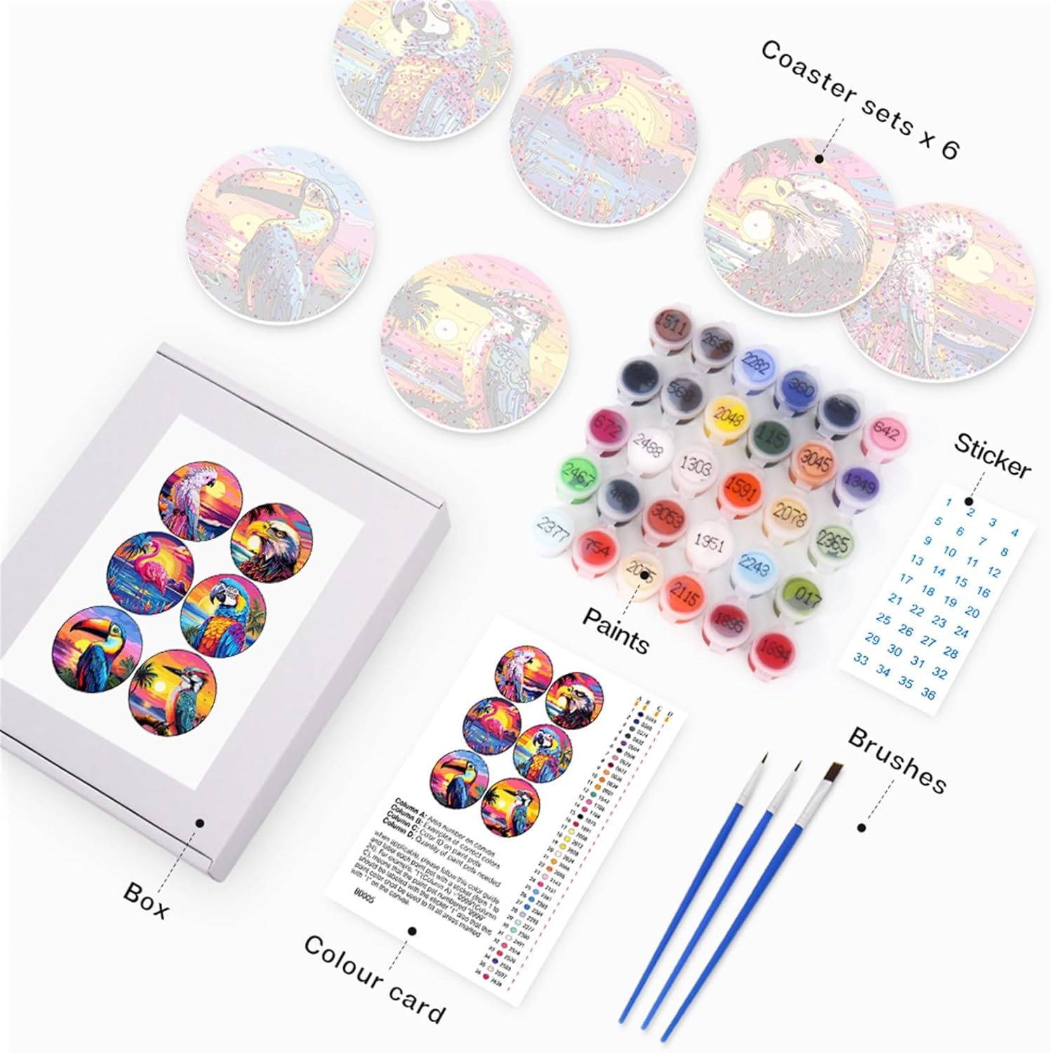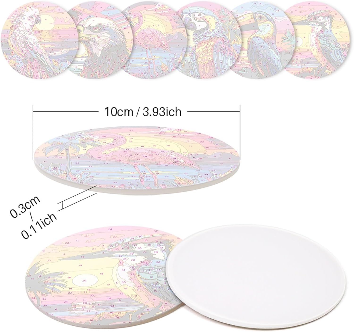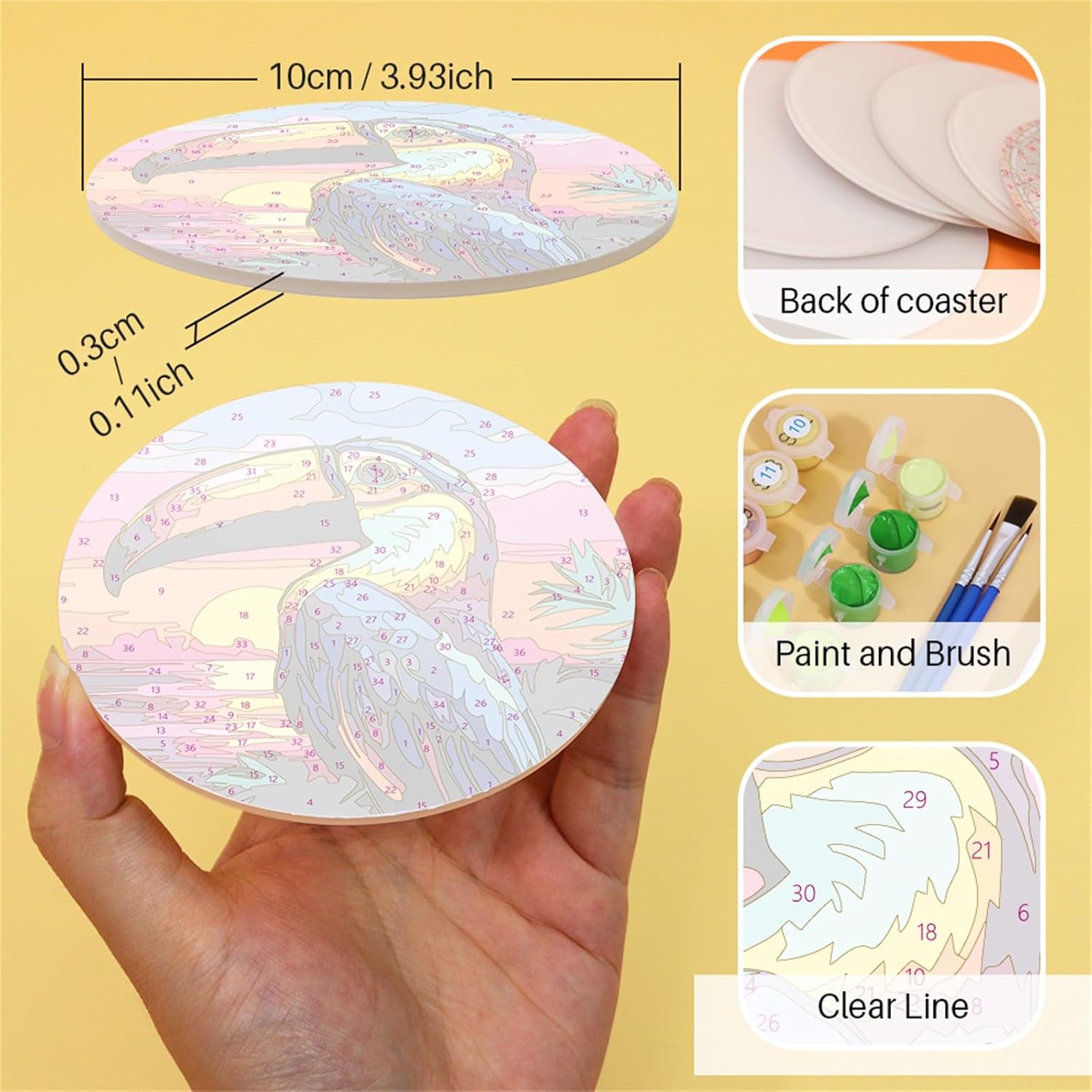 Sottobicchieri Paint by Numbers - Abbiamo sottobicchieri in diversi stili e modelli con temi diversi. Tutti i sottobicchieri sono unici, squisiti e pratici e possono essere utilizzati come decorazioni per la casa per aggiungere un tocco artistico. La confezione include i pennelli e la vernice acrilica. Sottobicchieri di alta qualità: il fondo dei sottobicchieri con numeri è realizzato in legno, la superficie del sottobicchiere è adesiva e ha una pellicola protettiva per mantenere l'immagine appiccicosa. Impermeabile, a prova di umidità, consistenza uniforme, motivo chiaro, può proteggere la scrivania dai graffi Ampia gamma di usi: i sottobicchieri con numeri sono adatti per tè pomeridiano quotidiano, cene in famiglia, feste di vacanza, ecc., e possono anche essere utilizzati come bella decorazione, adatti per tazze da caffè, bicchieri da vino rosso, bottiglie di bevande, vasi, ecc., sottobicchieri belli e pratici Sottobicchieri con numeri Presente - I sottobicchieri unici fai da te per l'artigianato sono versatili nello stile e aiutano ad alleviare lo stress e rilassarsi durante il processo di produzione, rendendoli un regalo perfetto per gli amanti del fai da te. Durante la creazione, non solo puoi goderti il divertimento del lavoro pratico, ma anche sentirti come se avessi raggiunto qualcosa di personale. Anche un regalo significativo per familiari o amici
