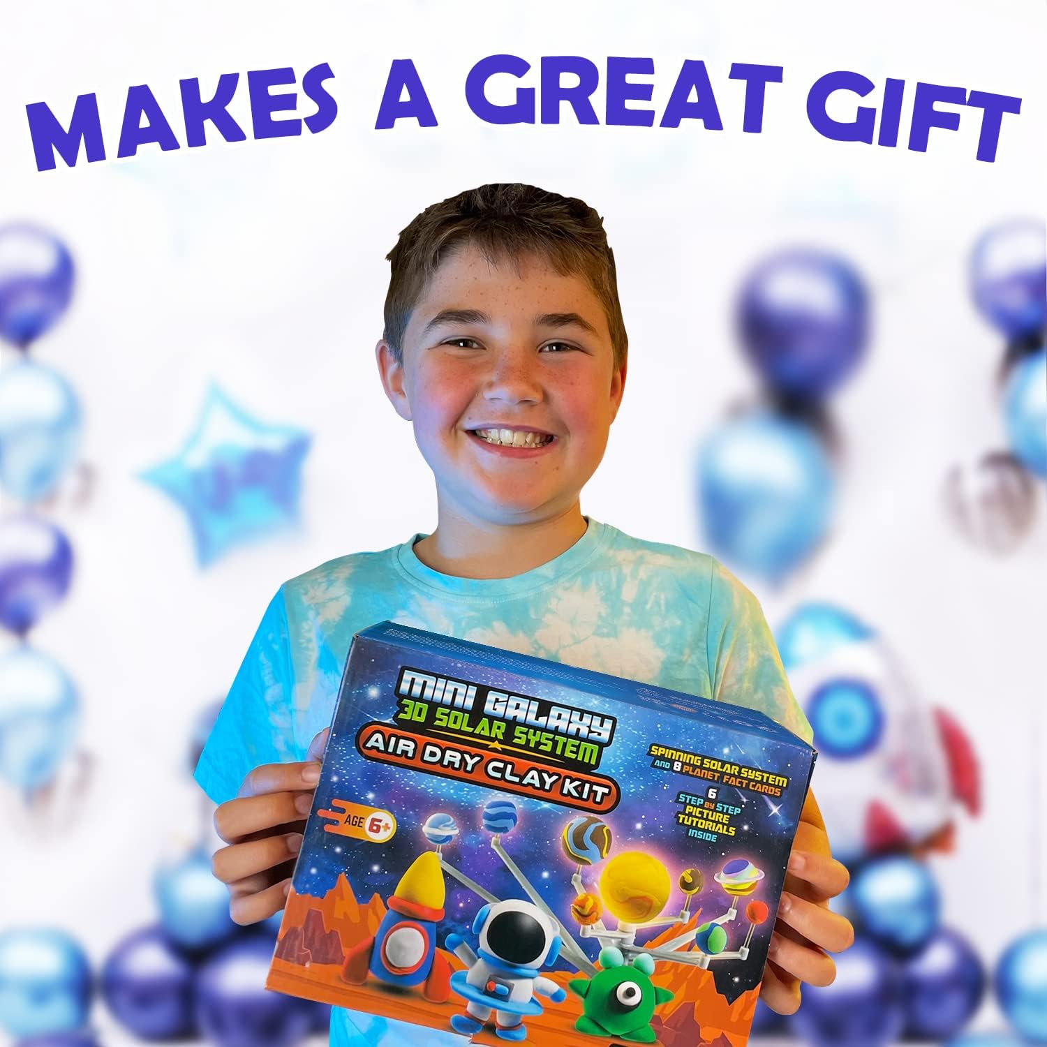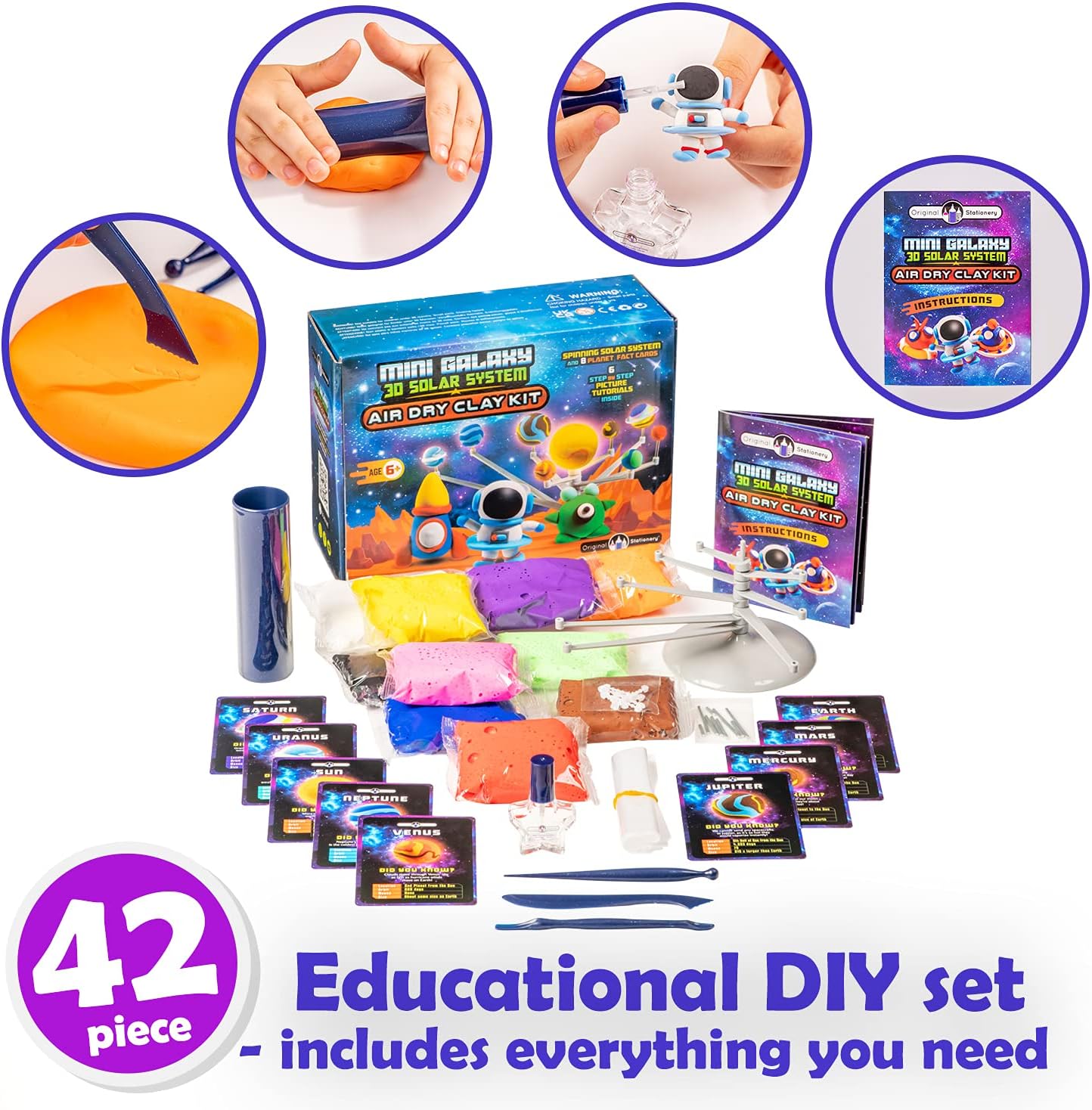 Realizza un sistema solare 3D con questo kit di argilla modellabile per bambini. Lasciati sorprendere dalla nostra arte spaziale per bambini! Kit completo di arte spaziale da 10 pezzi con pasta da gioco per bambini, strumenti artigianali, carte con istruzioni per il pianeta e altro ancora. Il nostro set di pasta da gioco non tossico per bambini è un kit spaziale per bambini curiosi che vogliono conoscere lo spazio. Impara a casa mescolando colori, creando personaggi spaziali e pianeti con i nostri set di argilla per bambini dai 9 ai 12 anni. Gli appassionati di artigianato spaziale adoreranno questo set di pasta da gioco per bambini! Questo è un grande regalo per i bambini di tutte le età