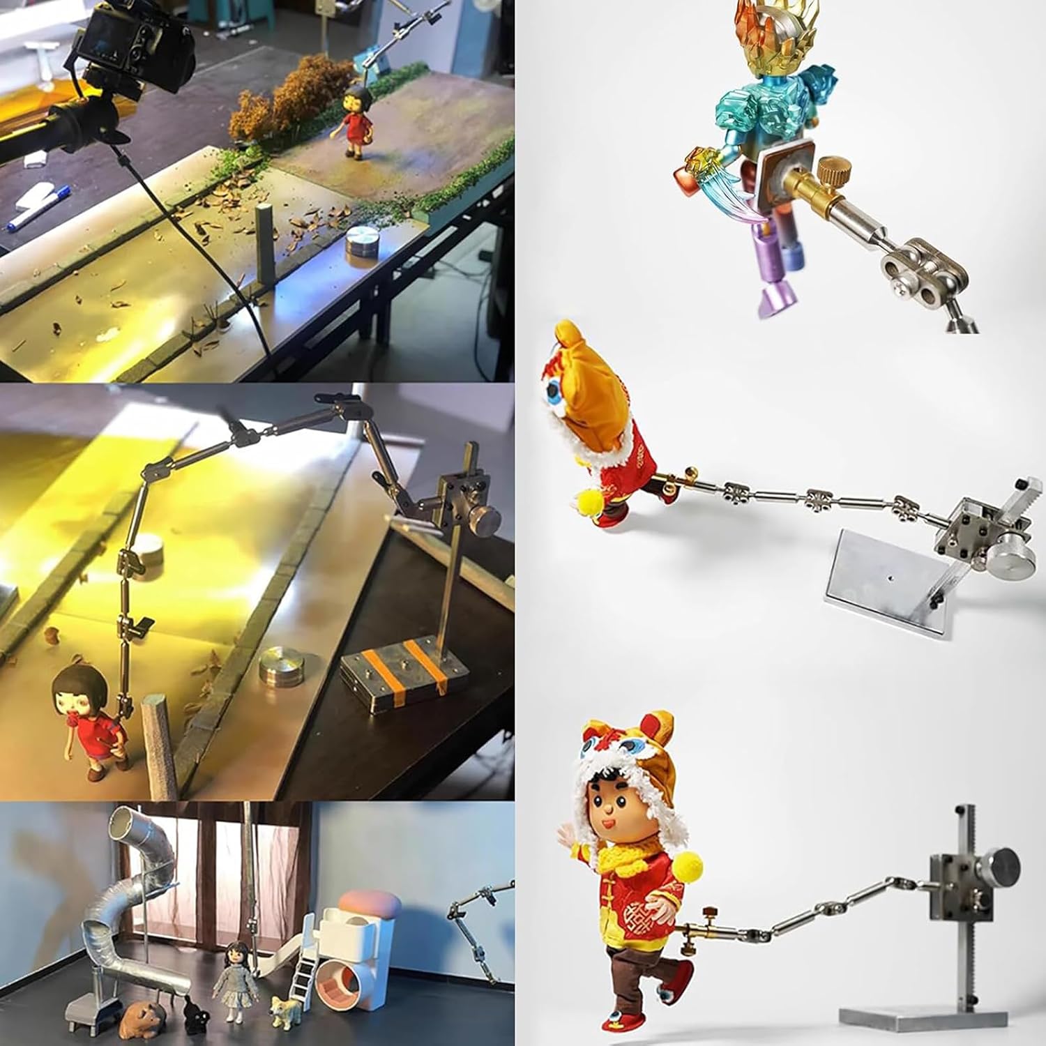 Design resistente e regolabile: questo rig per riprese è realizzato con materiali resistenti per garantire stabilità e versatilità. La sua struttura robusta riduce al minimo le vibrazioni per riprese fluide e di livello professionale. Flessibilità d'uso: la lunghezza della rotaia è di 16 cm, il braccio di rigging è di circa 25 cm e viene fornito con cinque diversi tipi di connettori, consentendo di scegliere quello più adatto alle proprie esigenze. Effetti stop motion professionali: questo rig è ideale per animatori e professionisti che creano animazioni stop motion di alta qualità. I suoi bracci regolabili consentono un posizionamento preciso, garantendo un'acquisizione dei fotogrammi uniforme e accurata. Applicazioni versatili: oltre allo stop-motion, questo rig può essere utilizzato anche per video time-lapse, riprese aeree, fotografie di prodotti e altro ancora. Facile da installare e utilizzare: il montaggio semplice e intuitivo rende questo rig di ripresa facile da usare. La configurazione rapida consente ai creatori di concentrarsi maggiormente sul processo creativo, migliorando l'efficienza del flusso di lavoro.