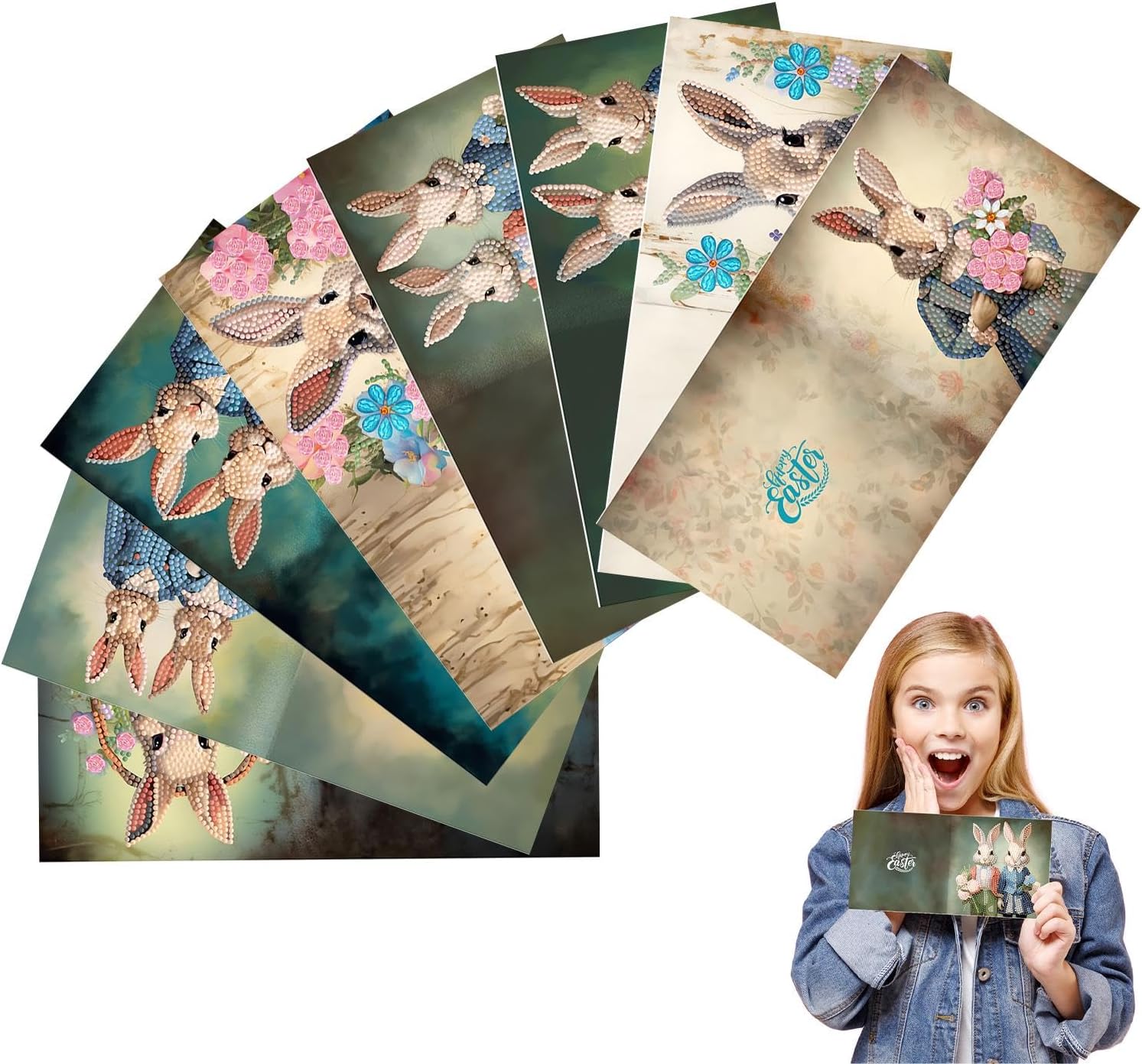 Accessori variabili: il kit per la pittura con strass pasquale include diversi accessori, tra cui 8 biglietti, 8 buste bianche, 1 set di kit di strass e 1 kit di attrezzi, che soddisfano pienamente le tue esigenze. Migliora i tuoi auguri di Pasqua: aggiungi un tocco di fascino ai tuoi auguri di Pasqua con questi biglietti dipinti con strass 5D. Le 16 sfaccettature di strass riflettono magnificamente la luce, mentre gli strass in resina li rendono tattili e resistenti. I tuoi cari li adoreranno per anni. Fai crescere abilità pratiche: crea i tuoi fantastici biglietti di Pasqua con il kit di pittura 5D con strass. Perfetto per nutrire la creatività e le capacità motorie. Approfitta del processo soddisfacente di incollare strass colorati sulla mappa e coltivare la pazienza. Migliora l'usabilità: crea biglietti di Pasqua con la pittura con strass 5D con i tuoi cari per favorire la conversazione e rafforzare il legame di amicizia. Un gioco fantastico da giocare con i propri cari e amici per rafforzare i suoi legami. Regalo unico: un meraviglioso biglietto pasquale da regalare ai tuoi cari è il diamond painting 5D. Mostra quanto tieni a loro e quanto li ami, il che lo rende adatto per Natale.
