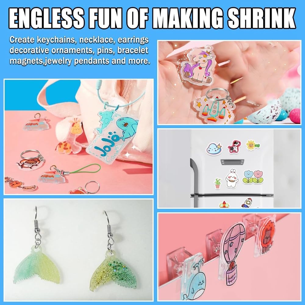 [Dimensione ideale] Traslucido smerigliato. Ogni foglio di carta termoretraibile misura circa 20 x 14,5 cm (7,9 x 5,7 pollici) e 0,3 mm di spessore. Dopo il riscaldamento, si restringe fino al 20% della sua dimensione originale e si addensa per formare una plastica. [Kit fai da te] Questo kit di fogli di plastica termorestringente contiene tutto il necessario per realizzare una moltitudine di progetti creativi. Composto da 25 fogli di plastica termorestringente, 20 , 100 anelli in aperti, 10 fermagli a moschettone e 10 ganci per le orecchie, è sufficiente per realizzare molti o ciondoli. [Creatività fine] Liberate l'immaginazione del vostro bambino e utilizzate questi fogli per creare creazioni familiari e unici con impronte di . Questo di foglie può aiutare i bambini a migliorare la loro concentrazione, godersi la calma e stimolare la loro immaginazione per disegnare i loro motivi preferiti. [MATERIALE DI QUALITÀ] Questi fogli artistici retrattili sono realizzati in PVC di alta qualità e un lato è smerigliato per facilitare la colorazione. Basta disegnare o spostare un motivo pellicola termoretraibile, decorare con matite colorate o permanenti, ritagliare il motivo e cuocere. [Ampie applicazioni] Utilizzare questo kit di fogli di arte retrattili per creare ciondoli, , ornamenti, o qualsiasi cosa tu possa immaginare come regali per Natale, festa degli insegnanti, festa della mamma, festa del papà, Halloween, San .