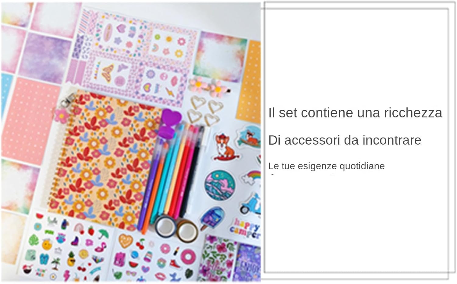 Soddisfa tutte le esigenze: registra facilmente le tue esperienze di viaggio, di studio e di vita. Il nostro set di diari di album per ragazze contiene un vivace set di cancelleria con penne colorate, nastri, adesivi, graffette e altro, eccellente per liberare la tua creatività Fedeltà dei colori a lunga durata: dotata di tecnologia anti-penetrazione, questa agenda assicura un'esperienza di scrittura ; i robusti adesivi in PVC mantengono la vivacità dei colori nel Potenzia l'interiore: con pagine dal design unico e adesivi con lettere abbinati, il nostro set di diari per ragazze offre l'eccellente opportunità di creare pagine uniche e documentare i tuoi ricordi in modo divertente e creativo Scelta del regalo per il festival: esplora i tuoi pensieri e sentimenti con questo set di diari di album per ragazze, eccellente come regalo di Natale, compleanno, San , Ringraziamento e Festa dei bambini o per qualsiasi riunione a tema Applicazioni versatili: utilizzalo in vari scenari, fungendo da libro di raccolta separato, libro dei conti e libro da disegno per soddisfare le esigenze creative della maggior parte delle ragazze o trasformalo in un quaderno di viaggio, appunti di studio o agenda