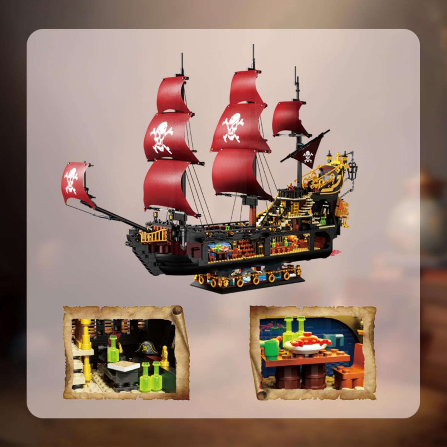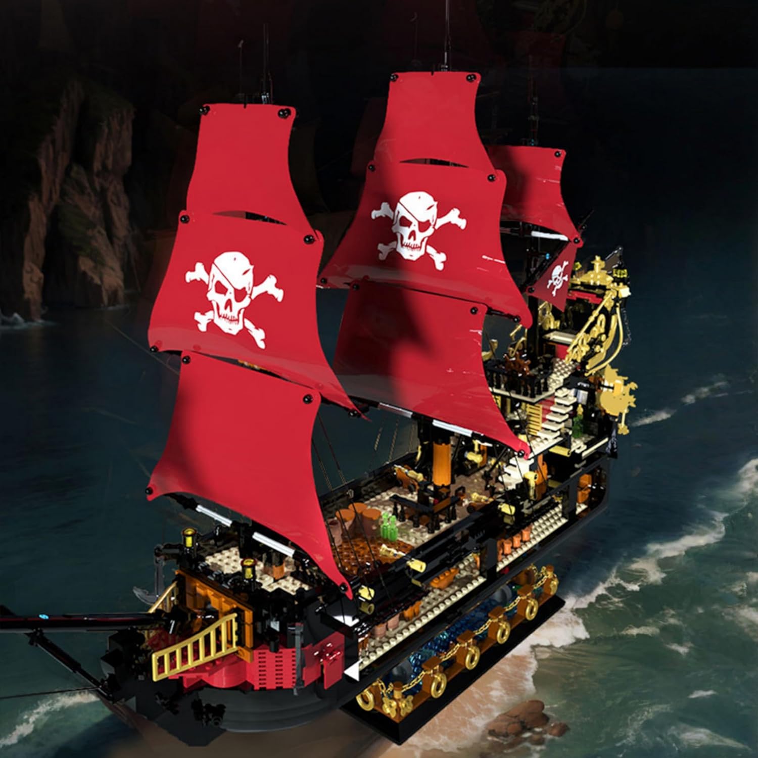 Fantastico design della nave pirata: questo set di elementi costruttivi presenta un'elegante nave pirata con dettagli realistici come cassette per i pesci, zona di pesca, cabina, timone e gabbie per pesci interattive. L'attenzione ai dettagli lo rende un capolavoro impressionante. NON COMPATIBILE CON I PRINCIPALI MARCHI: Il nostro set di navi pirata Black Pearl è disponibile in una confezione di alta qualità ed è il regalo perfetto per gli appassionati di vela e gli amanti dei pirati. Esperienza di gioco creativa: una sfida ideale per gli amanti dei mattoncini. Costruire questa nave pirata con la famiglia o gli amici offre ore di divertimento e un appagante senso di realizzazione. Modello da esposizione di alta qualità: questo modello di nave dettagliato è una decorazione impressionante per la casa o l'ufficio e raffigura fedelmente i dettagli storici della leggendaria Perla Nera. Ricche funzionalità interattive: include bandiera pirata, cabina del capitano, cannoni, interni dettagliati e tante piccole parti con cui giocare: stimola l'immaginazione dei pirati e degli appassionati di nautica.