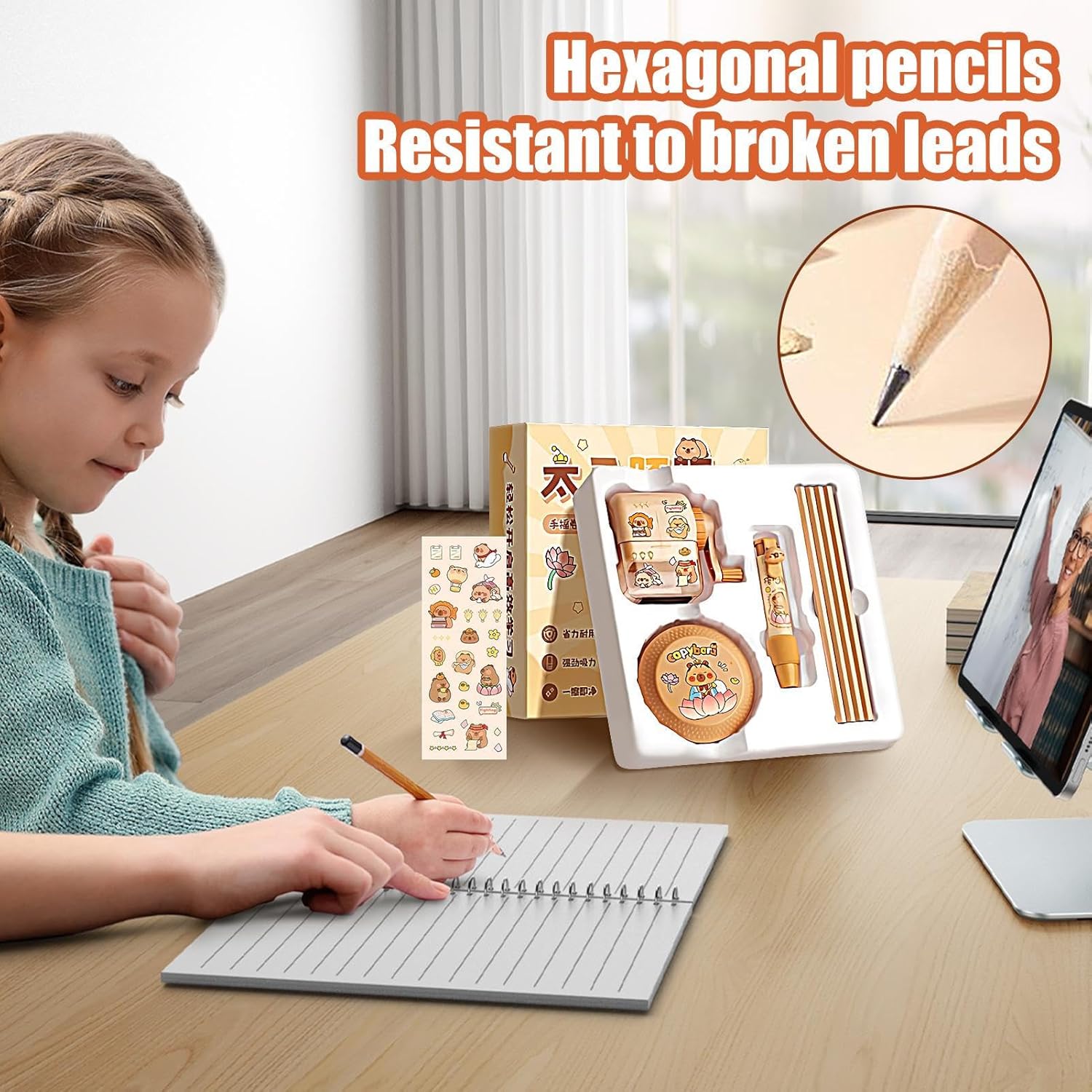 Accessori Scrittura Essenziali: Include un pratico aspirabriciole elettrico per pulire la scrivania, temperamatite a manovella per matite sempre pronte e gomme con impugnatura morbida per cancellature precise in questo set multifunzionale Massima Igiene: L'aspiratore elettrico elimina efficacemente i frammenti di gomma da cancellare, favorendo un ambiente di studio piacevole che incrementa l'efficienza e si adatta praticamente a tutti i tipi di matite Sicurezza Garantita: Costruzione robusta in PP resiste all'uso frequente mantenendo la qualità nel , affidabilità costante per serenità duratura nell'impiego quotidiano Creatività Pratica: Kit per bambini che diventa regalo significativo per mostrare cura in eventi come compleanni, festività natalizie e celebrazioni di Capodanno con approccio giocoso Design Personaggi : La combinazione di adesivi con capibara e panda crea un'atmosfera coinvolgente che aumenta l'interesse per l'apprendimento nei bambini