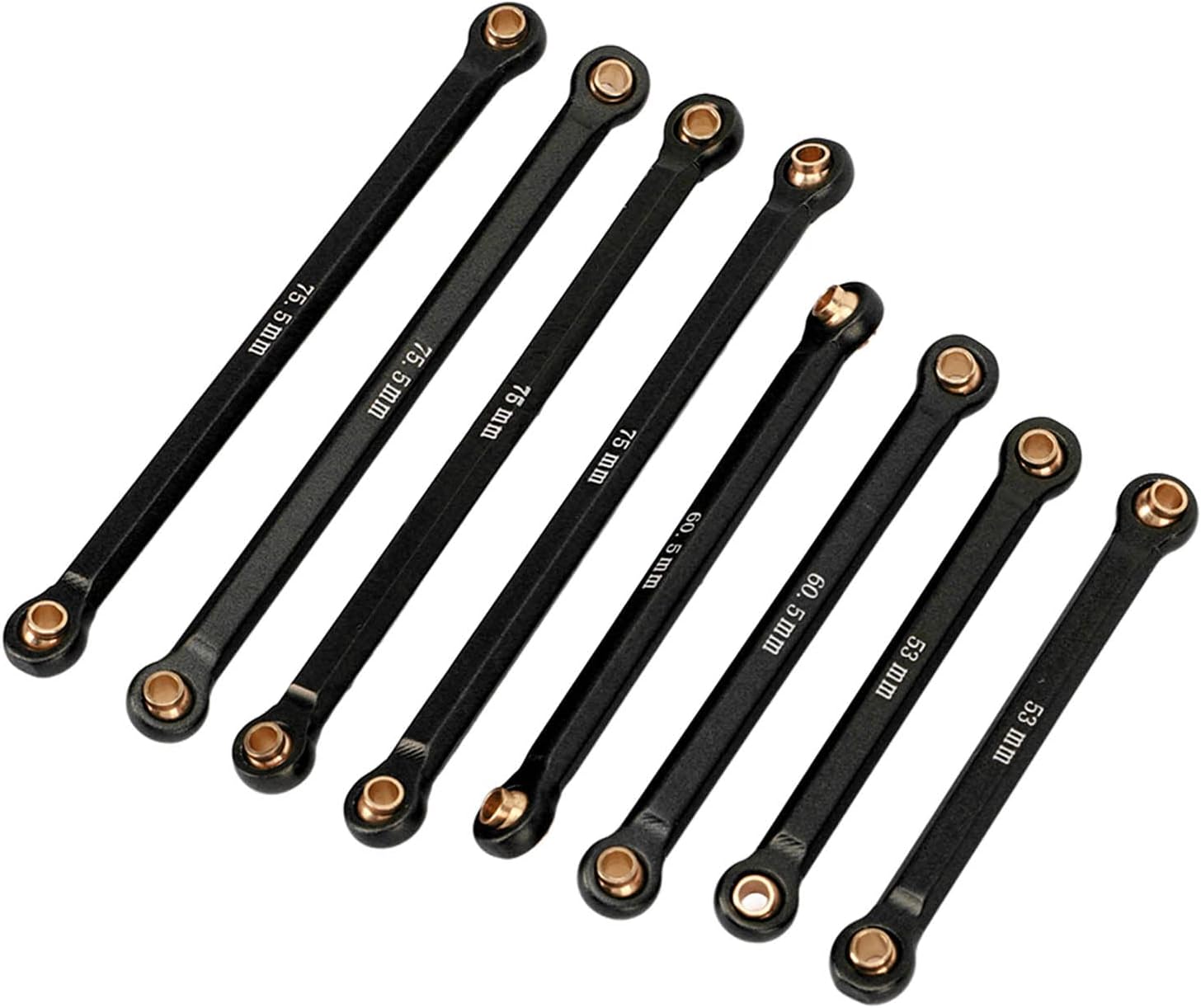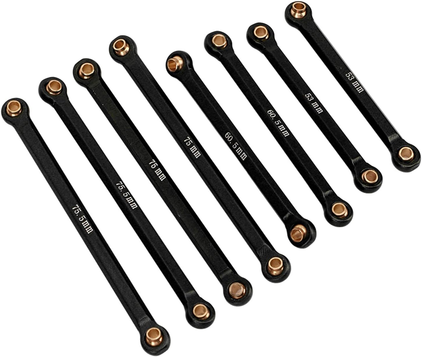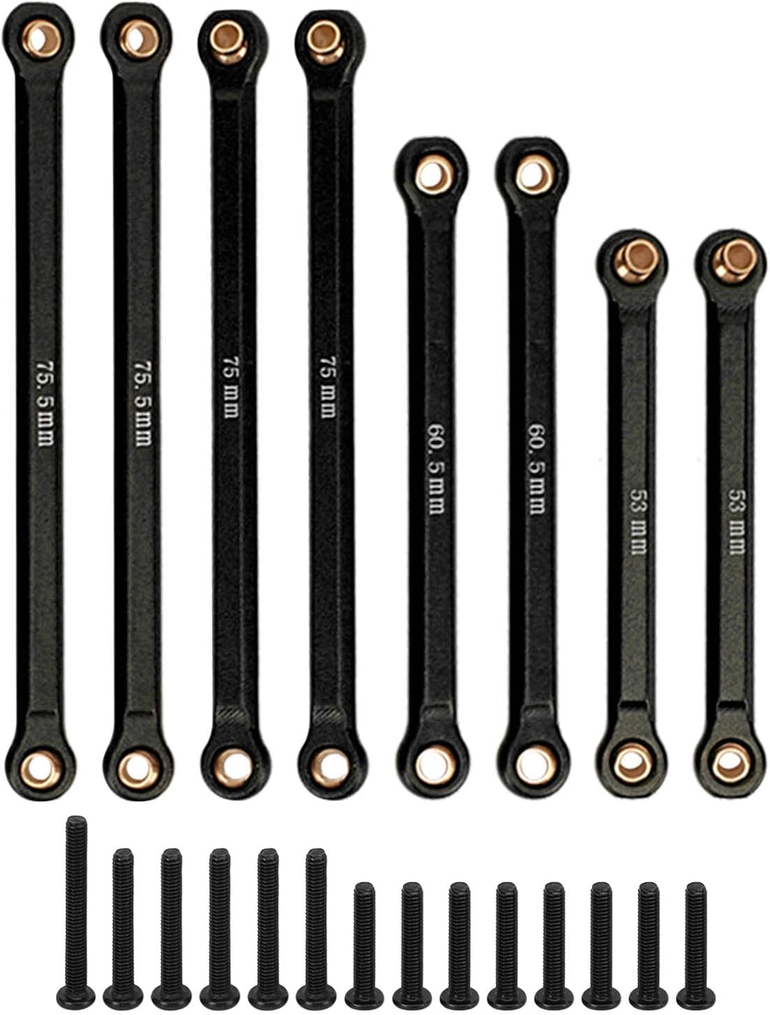 ROBUSTO E DUREVOLE: il kit di collegamento 'asta RC è realizzato in alluminio lavorato a CNC, resistente e durevole, anticorrosivo e antiruggine. LEGA DI ALLUMINIO: il kit di collegamento 'asta RC è realizzato in lega di alluminio, resistente all'usura, leggero, non appesantirà l'auto. MODELLI APPLICABILI: collegamenti di sospensione RC impostati per auto 1/18 RC. Elevata resistenza e aspetto più raffinato. PRESTAZIONI STABILI: il kit di collegamento 'asta RC in lega di alluminio ha una struttura robusta e stabile, prestazioni stabili e non facile da deformare. FACILE DA INSTALLARE E SMONTARE: il kit di collegamento 'asta RC è facile da installare e rimuovere, migliorando le prestazioni 'auto e offrendoti una guida equilibrata.