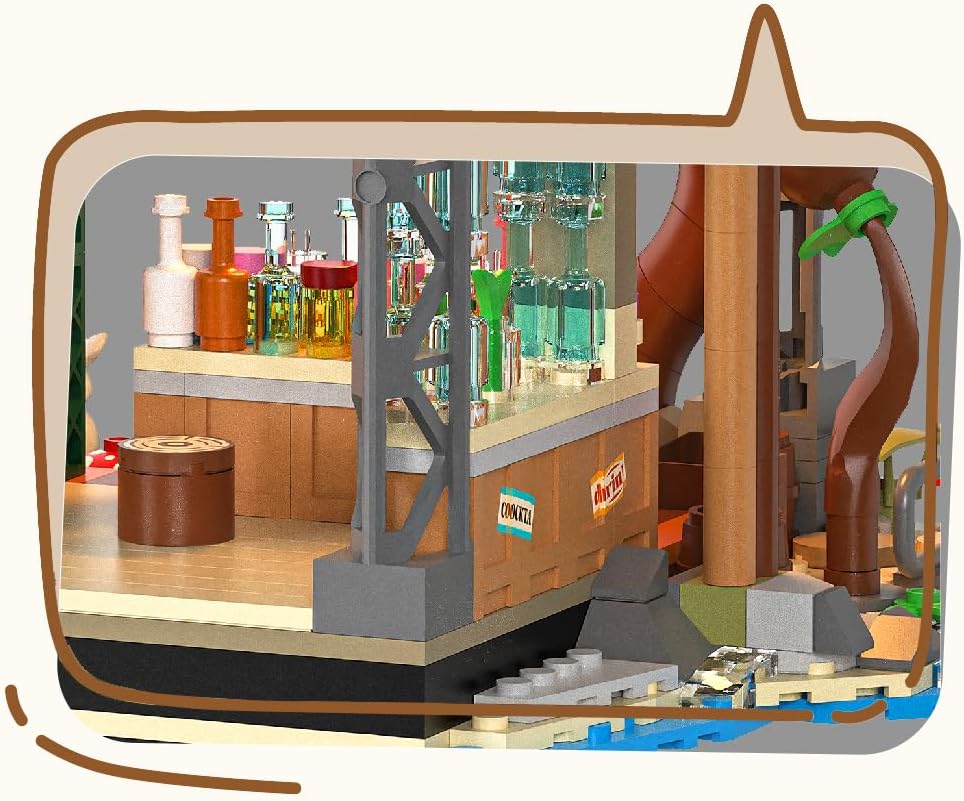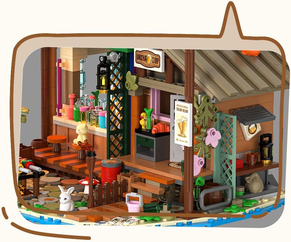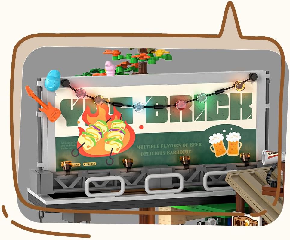 Kit Dock Bar Brick House con luci. Un modello a trave di una grande casa residenziale con interni meravigliosamente dettagliati. Il set di elementi costitutivi è molto affascinante, con ricchi abbinamenti di colori e dettagli squisiti che ti faranno innamorare. Questo affascinante modello di casa è una bellissima decorazione che offre un'esperienza di costruzione semplice e completa. Inizia un gioco creativo con i tuoi amici o familiari o crea un bellissimo centrotavola a casa o in ufficio. Fornisce a bambini e adulti ore di costruzione, riflessione e gioco fantasioso ed esercita abilità artigianali e pensiero creativo. Questa MOC ha un'elevata memoria e un valore di raccolta ed è sicuramente un'ottima raccolta per gli appassionati di costruzioni di scene di strada. Ottimo regalo per adulti e compleanni per ragazzi e ragazze o un fantastico regalo di Natale, regalo perfetto. Le particelle 1108 sono realizzate con materiali ecologici e sono prodotte utilizzando un processo di stampaggio ad iniezione ad alta precisione. Sono incluse istruzioni di montaggio dettagliate e professionali. Le fasi di montaggio sono molto chiare e il montaggio e lo smontaggio sono facili. Se il tuo kit manca ancora, contattaci.