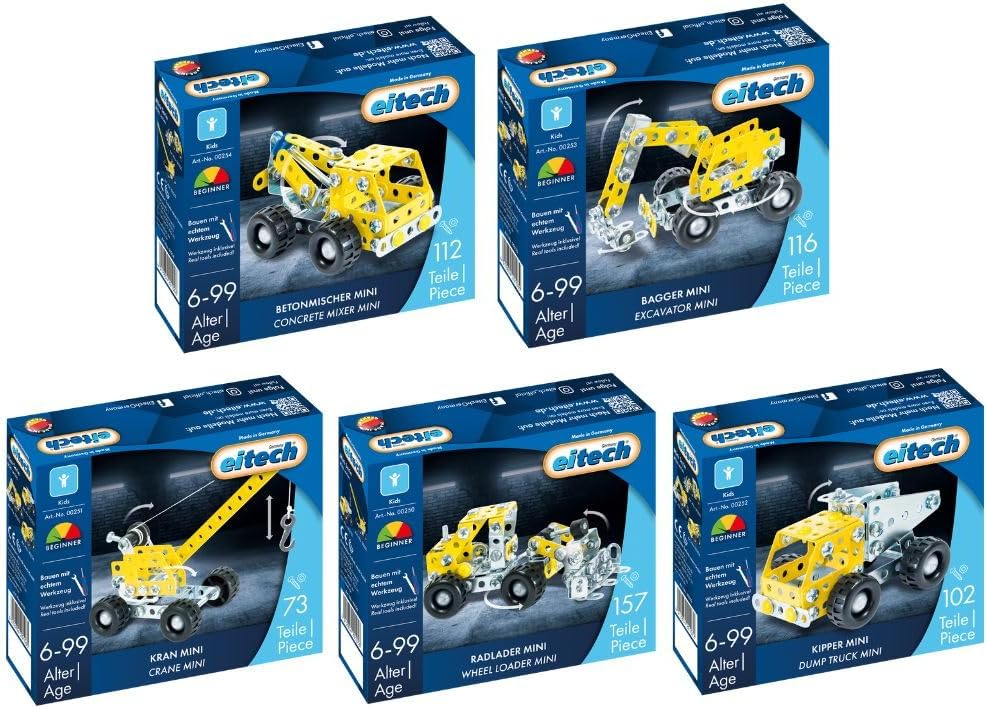 Scopri la mini pala gommata Eitech: il modellismo incontra i giocattoli per bambini. Un veicolo da costruzione collezionabile e giocabile è creato da 157 componenti. “spiel gut”. Con questo giocattolo educativo i ragazzi e le ragazze dai 6 anni in su possono appassionarsi alla tecnologia. Ideale anche come regalo per bambini per Pasqua, compleanno o Natale. Il giocattolo motorio incontra il modellismo: i bambini allenano le loro capacità motorie, la coordinazione occhio-mano, la pazienza e la creatività durante la costruzione. Promuovono il pensiero logico e la resistenza. I kit di costruzioni metalliche Eitech sono quindi materiali didattici riconosciuti nelle scuole. Molto più che giocattoli: costruisci con un vero strumento di costruzione: una guida alla costruzione passo passo illustrata e tutti gli strumenti necessari sono inclusi nel kit fai-da-te. Made in Germany - Il marchio Eitech è progettato e prodotto al 100% in Germania. Per quattro decenni, l'azienda di medie dimensioni si è concentrata sulla qualità, sulla sicurezza e sulla durata dei suoi prodotti.