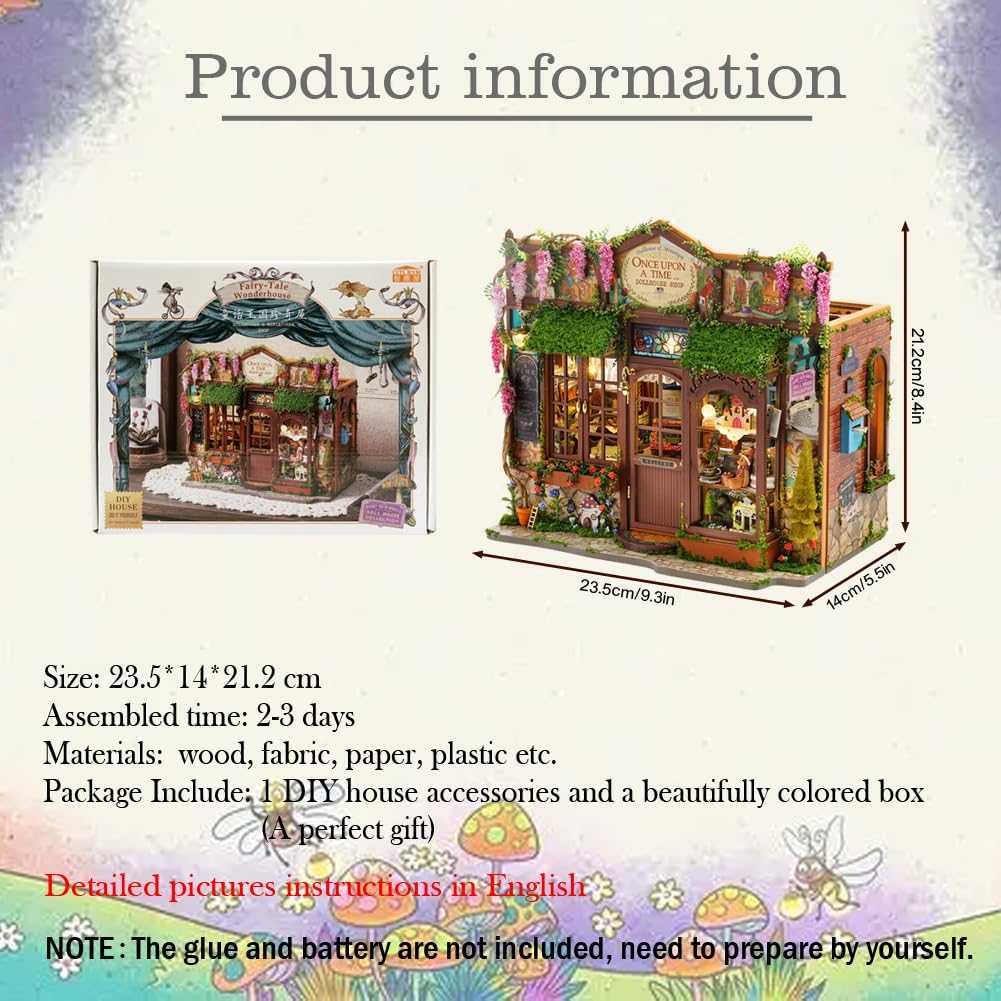 Una guida in inglese con immagini dettagliate e colorate ti accompagna passo dopo passo ed è facile da montare con un po' di pazienza. Le nostre cabine fai-da-te sono di alta qualità e i mobili e le altre parti in legno sono tagliati con precisione per adattarsi correttamente. Luci a LED, piante, decorazioni e mobili sembrano molto realistici e artistici. La casa dei giocattoli è adatta a persone di età superiore ai 14 anni. I bambini sotto i 14 anni necessitano dell'assistenza di un adulto per completare. L'assemblaggio richiede pazienza. Migliora la tua creatività. È il regalo perfetto e significativo per i tuoi amici, bambini, amanti e genitori. A causa dei tempi di spedizione lunghi, l'articolo potrebbe danneggiarsi durante il trasporto, se l'articolo è danneggiato, ti preghiamo di contattarci immediatamente prima di lasciare un feedback, grazie per la tua comprensione.