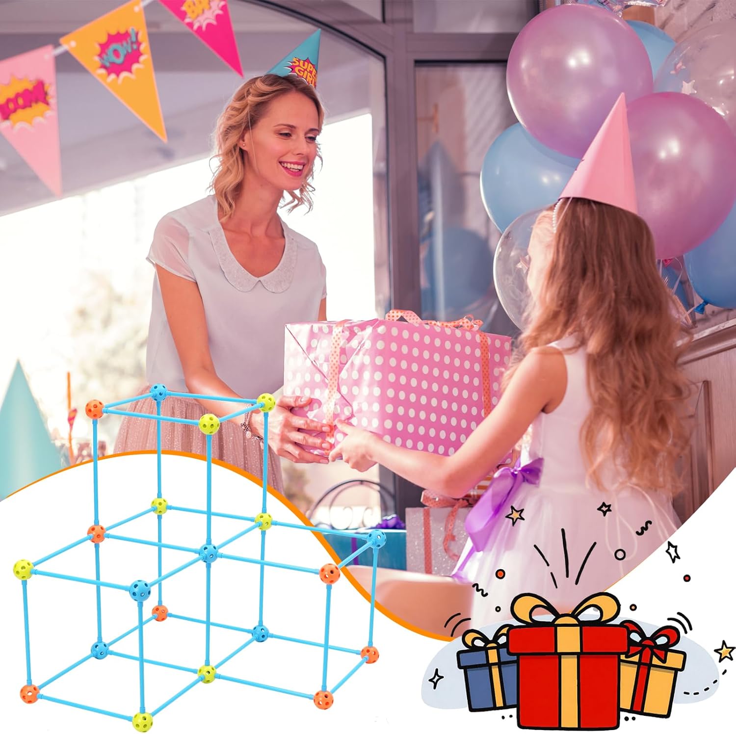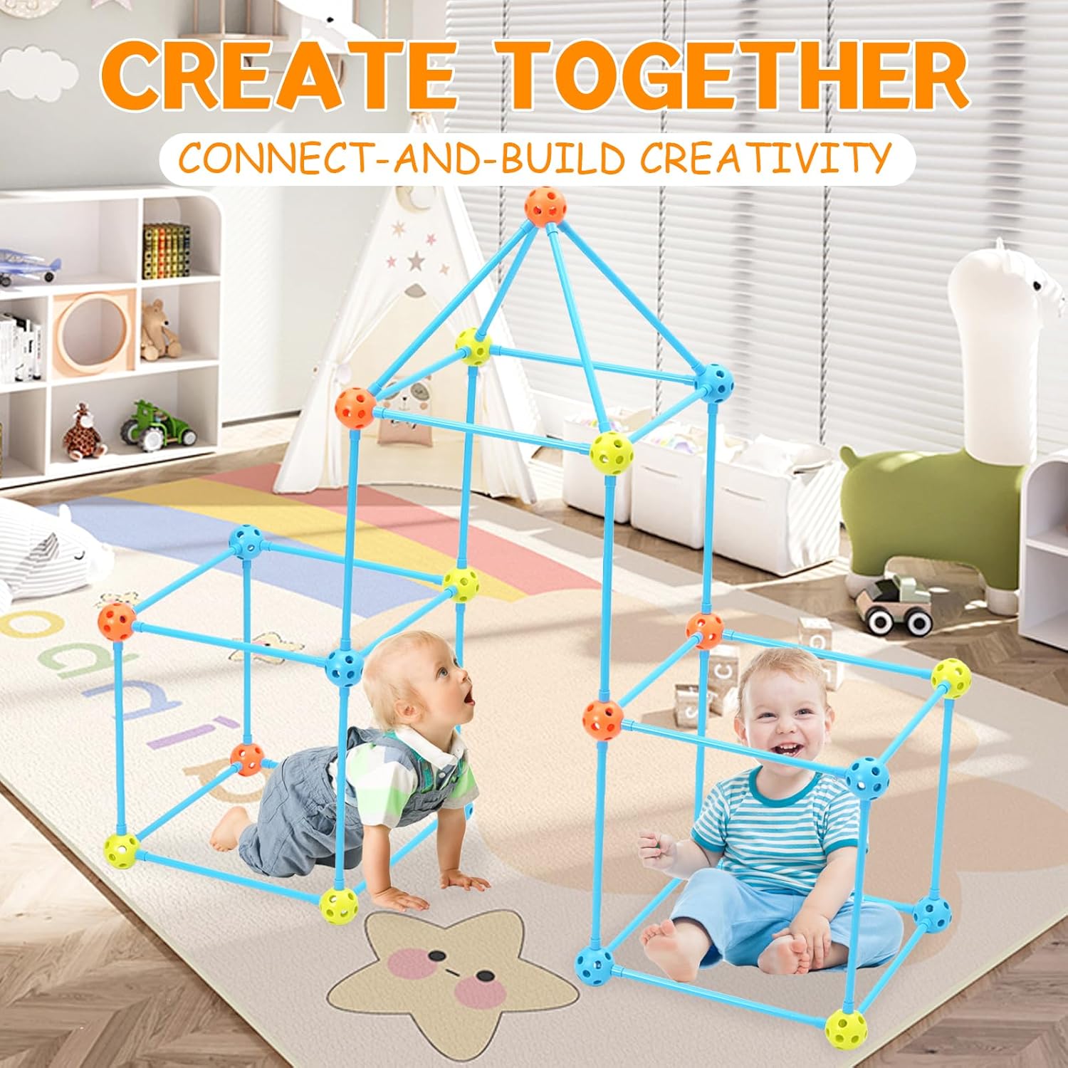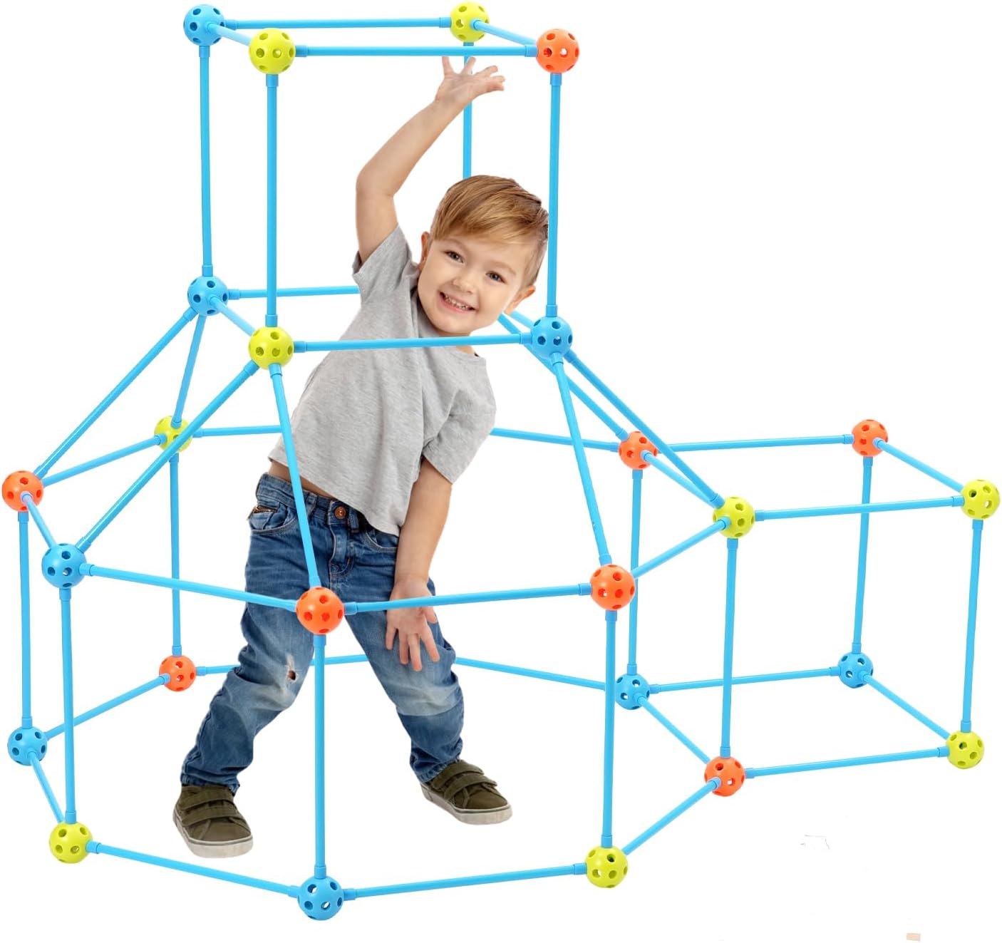 81 pezzi di giocattoli da costruzione fai-da-te per bambini, kit creativo per bambini, set da costruzione, versione spessa. Kit per la costruzione del forte: costruire un forte è impegnativo e divertente, ispira la creatività, sviluppa capacità di risoluzione dei problemi e porta un divertimento senza fine ai bambini e persino ai genitori. È un buon modo per trascorrere del tempo di qualità con i tuoi figli. Giocattoli educativi da costruzione STEM: sviluppa abilità tecniche e logica spaziale costruendo strutture, insegna principi fisici come la stabilità. Kit di costruzione del forte da 81 pezzi: rispetto alla complessità di oltre 100 pezzi e alla monotonia di oltre 40 pezzi, abbiamo scelto il numero perfetto di set da 81 pezzi che non solo possono soddisfare le esigenze di gioco dei bambini, ma possono anche evitare di essere troppo complicati e di perdere la pazienza dei bambini. Gioco cooperativo per più bambini: il sistema di bloccaggio con sfera consente agli amici di costruire insieme. Insegna il lavoro di squadra e la risoluzione dei problemi - Ideale per le aule. Facile da montare: i bambini possono connettersi rapidamente semplicemente premendo le bielle nella sfera e costruendo una serratura o un tunnel in pochi minuti. Perfetto per avventure indoor creative, facile e facile da iniziare.
