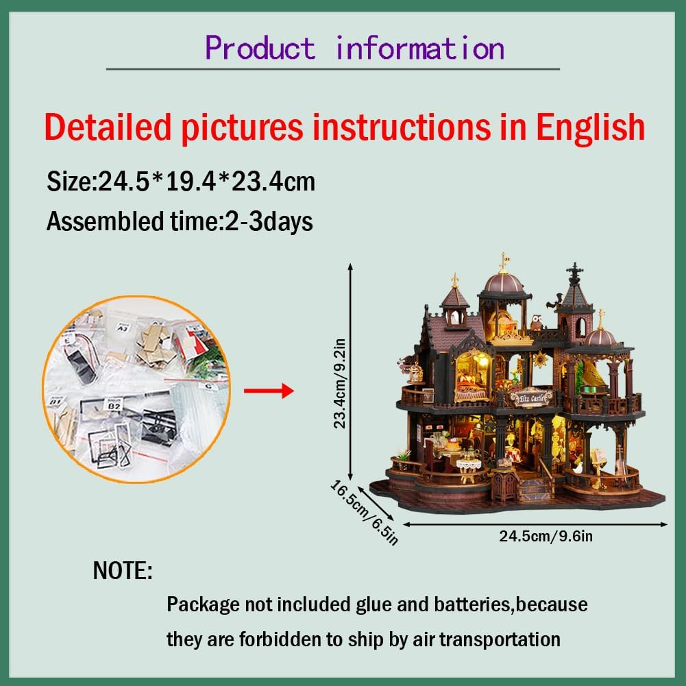 Una guida in inglese con immagini dettagliate e colorate ti accompagna passo dopo passo ed è facile da montare con un po' di pazienza. Le nostre cabine fai-da-te sono di alta qualità e i mobili e le altre parti in legno sono tagliati con precisione per adattarsi correttamente. Luci a LED, piante, decorazioni e mobili sembrano molto realistici e artistici. La casa dei giocattoli è adatta a persone di età superiore ai 14 anni. I bambini sotto i 14 anni necessitano dell'assistenza di un adulto per completare. L'assemblaggio richiede pazienza. Migliora la tua creatività. È il regalo perfetto e significativo per i tuoi amici, bambini, amanti e genitori. A causa dei tempi di spedizione lunghi, l'articolo potrebbe danneggiarsi durante il trasporto, se l'articolo è danneggiato, ti preghiamo di contattarci immediatamente prima di lasciare un feedback, grazie per la tua comprensione.