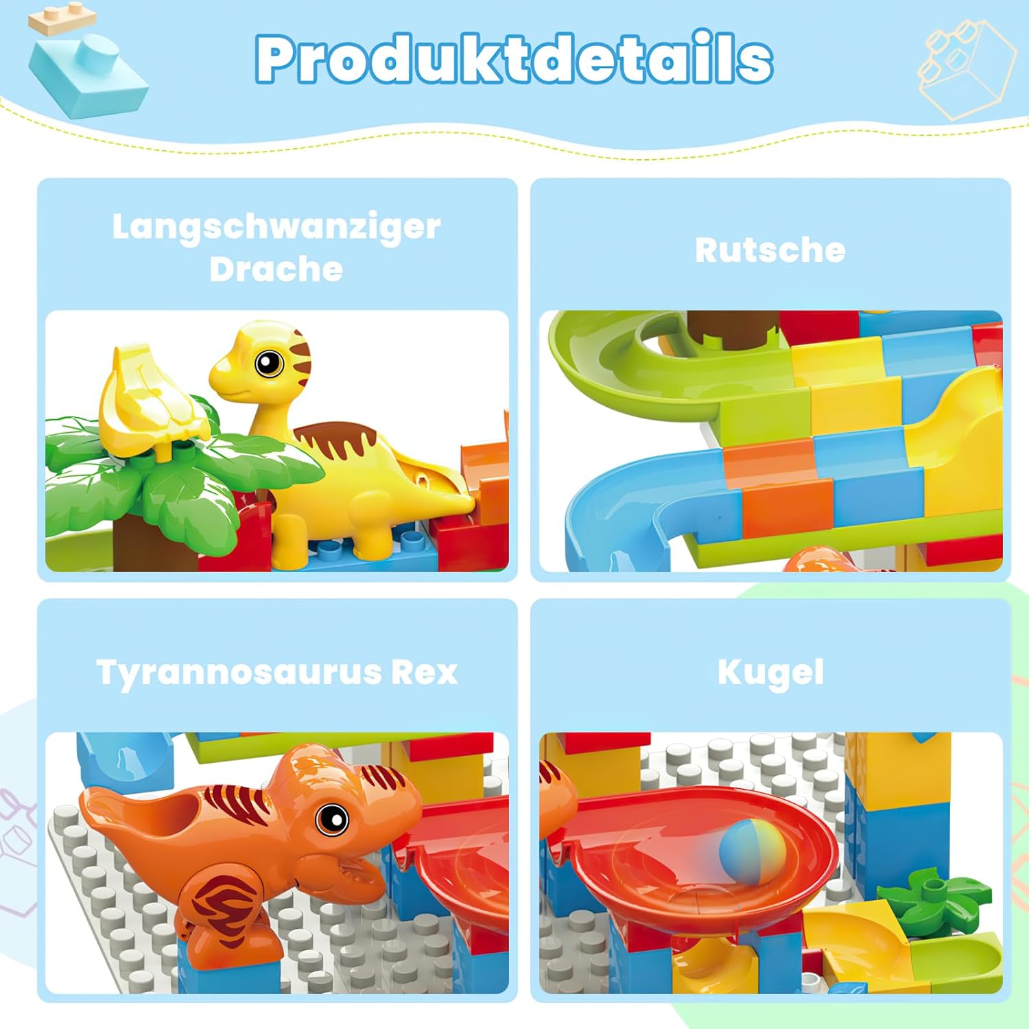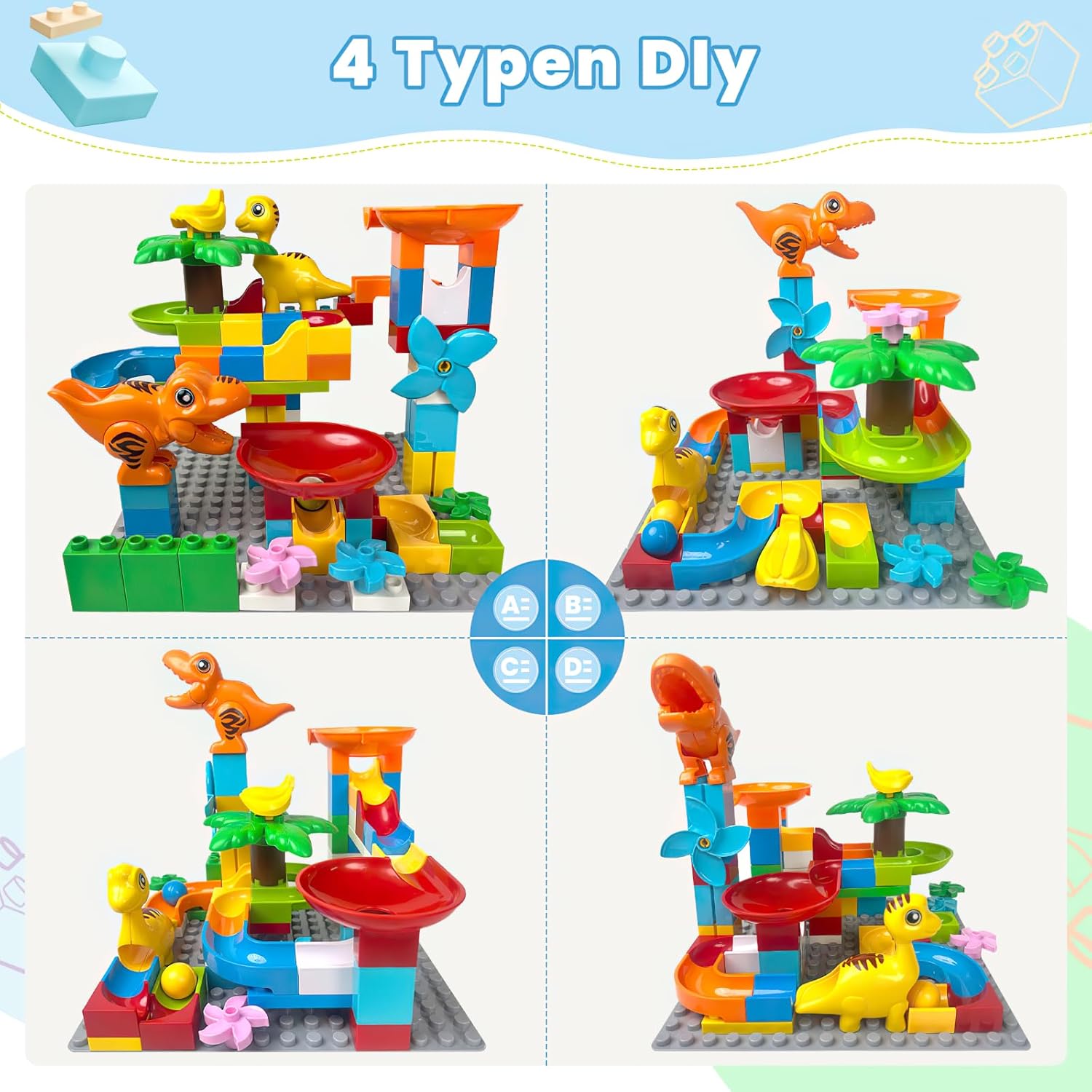 Giocattolo puzzle con dinosauro per bambini: la combinazione di gara di biglie, mattoncini e giocattoli di dinosauro è puro genio. I tuoi bambini rimarranno affascinati dai mattoncini colorati, la pista da corsa aggiunge un elemento di competizione ed eccitazione, rendendo il loro tempo di gioco un'avventura sia nella costruzione che nell'immaginazione. Labirinto di biglie per bambini dai 4 agli 8 anni: questo set di elementi costitutivi compatibili può modificare diversi design per adattarsi a diverse scene di intrattenimento. È un buon set di giocattoli interattivi, sia per i genitori che accompagnano i loro figli, sia per i bambini e i loro amici che giocano insieme. Giocattoli educativi di alta qualità: siamo orgogliosi di produrre giocattoli scientifici pratici e di alta qualità e tutti i nostri prodotti sono supportati da un servizio eccezionale. Se la tua esperienza è tutt'altro che eccezionale, faccelo sapere e faremo la cosa giusta. Stimola il potenziale e sviluppa le abilità: non solo stimola la creatività e la curiosità dei bambini, ma rafforza anche la loro immaginazione. Gioca un ruolo importante nel coltivare il riconoscimento della forma dei bambini e il pensiero spaziale tridimensionale. Regalo perfetto per i bambini: se stai anche cercando un bel regalo di compleanno, Natale o Capodanno per i tuoi ragazzi e ragazze di tutte le età, o semplicemente un regalo per gli appassionati di dinosauri, allora questo giocattolo di dinosauro STEM per bambini è un'ottima risposta. Tieni i tuoi bambini occupati per ore e guardali mentre scoprono, costruiscono e imparano in modo indipendente