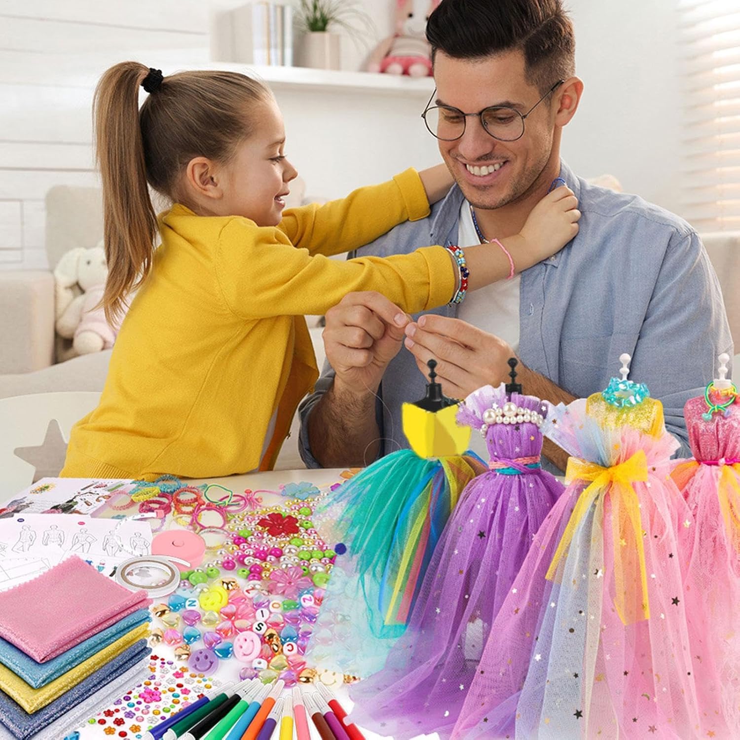Designer reali per bambini: il nostro kit di design alla moda per abiti per ragazze, con oltre 345 materiali, ti aiuta a creare 60 set unici come un designer professionista. Materiale affidabile: realizzato con materiali di alta qualità e componenti ecologici, inodori e sicuri, questo kit di design è abbastanza resistente da resistere all'uso frequente. Paly facilmente: realizza le tue idee di moda con il kit di design alla moda di lusso, dotato di 2 manichini di abbigliamento in PP, nastro, ornamenti, campioni di tessuto, un taccuino da disegno e metro a nastro. Regalo pratico: perfetto per compleanni, festa dei bambini, Halloween, Ringraziamento e Natale, questo kit è un ottimo modo per consentire alle ragazze di età superiore ai 6 anni di esprimere il loro stile e creare i loro abiti unici. Aumento della fiducia: proteggi gli occhi del tuo bambino dalla luce dannosa con questo kit, stimolando la sua creatività e fiducia; perfetto per sviluppare le capacità motorie.