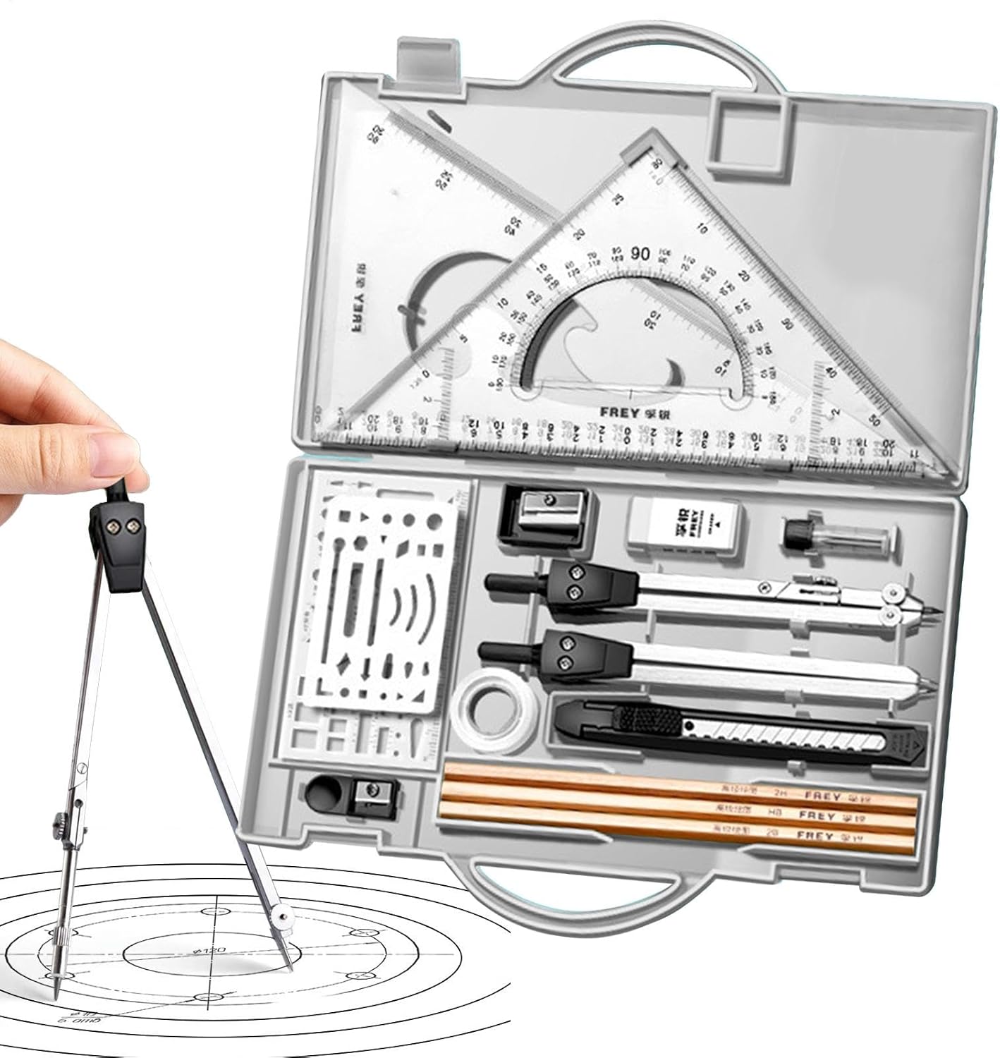 Soluzione di disegno completa: soddisfa le tue esigenze artistiche con le penne da disegno di qualità, le righelli a T, circolari e su scala fornite con questo kit di disegno completo, garantendo un viaggio creativo completo e soddisfacente. Prestazioni migliorate: grazie alla lavorazione di precisione in acciaio inox e lega di alluminio leggera, questo kit da disegno fornisce strumenti che rimangono in buone condizioni per un uso prolungato. Il suo know-how garantisce prestazioni precise e costanti, permettendoti di disegnare con fiducia. Spazio di disegno facilmente ordinato: questo kit da disegno, con la sua custodia ben progettata, non solo classifica e protegge i tuoi strumenti, ma mantiene anche un lavoro ordinato ed è facilmente portatile. Mostra creatività sfrenata: il nostro kit di disegno porta ad un apprezzamento più profondo del viaggio creativo, liberando creatività sfrenata e ispirandoti ad esplorare nuovi orizzonti. Migliora il divertimento di imparare e creare, goditi il processo di disegno migliorando le tue abilità in modo divertente e coinvolgente. Realizzato con precisione: progettato come il compagno ideale per l'apprendimento e la pratica. Progettato per studenti di ingegneria civile e architettura per garantire precisione ed efficienza, questo kit è un partner indispensabile per garantire che ogni disegno sia di qualità professionale.