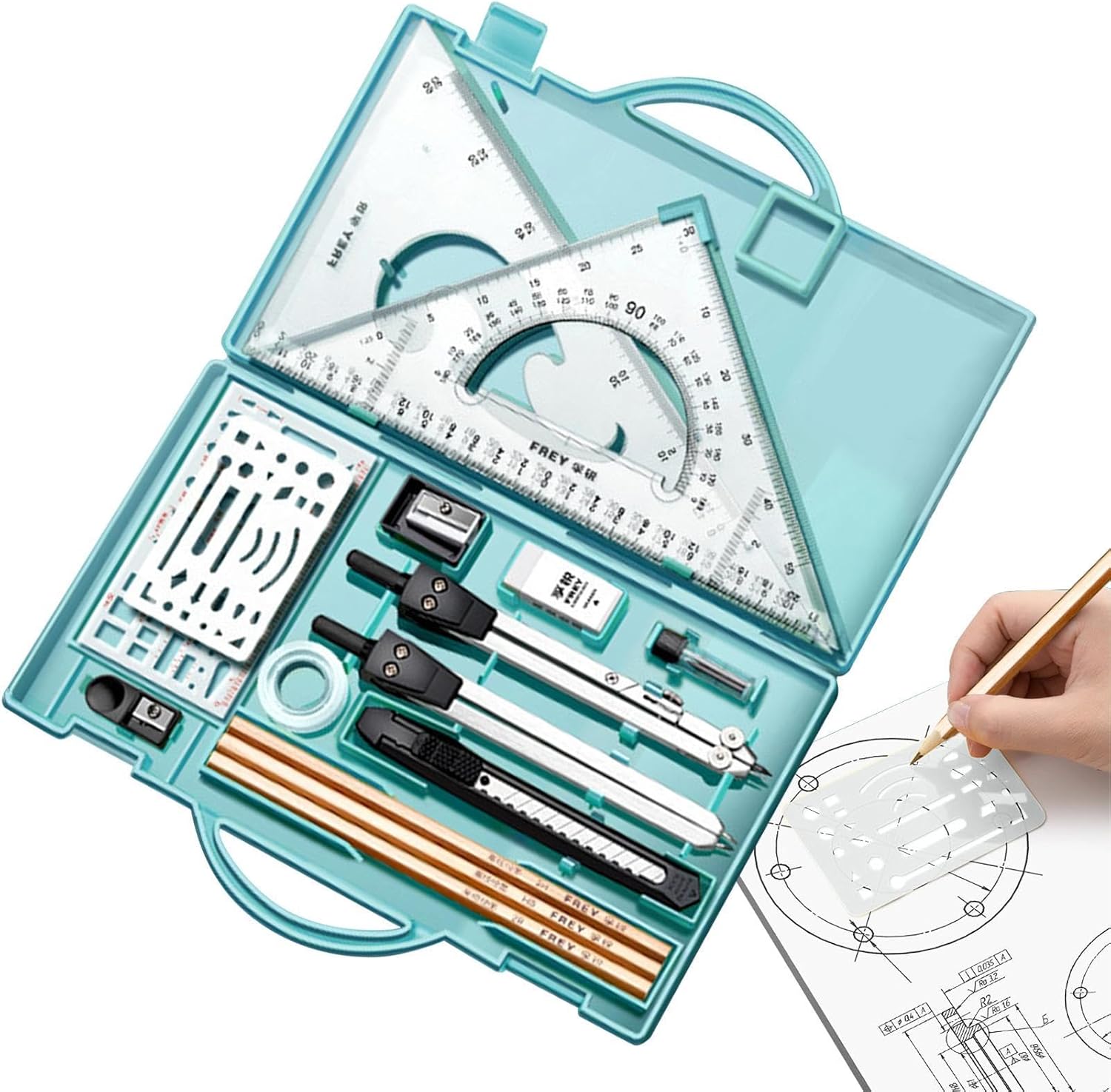 Soluzione di disegno completa: soddisfa le tue esigenze artistiche con le penne da disegno di qualità, le righelli a T, circolari e su scala fornite con questo kit di disegno completo, garantendo un viaggio creativo completo e soddisfacente. Prestazioni migliorate: grazie alla lavorazione di precisione in acciaio inox e lega di alluminio leggera, questo kit da disegno fornisce strumenti che rimangono in buone condizioni per un uso prolungato. Il suo know-how garantisce prestazioni precise e costanti, permettendoti di disegnare con fiducia. Spazio di disegno facilmente ordinato: questo kit da disegno, con la sua custodia ben progettata, non solo classifica e protegge i tuoi strumenti, ma mantiene anche un lavoro ordinato ed è facilmente portatile. Mostra creatività sfrenata: il nostro kit di disegno porta ad un apprezzamento più profondo del viaggio creativo, liberando creatività sfrenata e ispirandoti ad esplorare nuovi orizzonti. Migliora il divertimento di imparare e creare, goditi il processo di disegno migliorando le tue abilità in modo divertente e coinvolgente. Realizzato con precisione: progettato come il compagno ideale per l'apprendimento e la pratica. Progettato per studenti di ingegneria civile e architettura per garantire precisione ed efficienza, questo kit è un partner indispensabile per garantire che ogni disegno sia di qualità professionale.