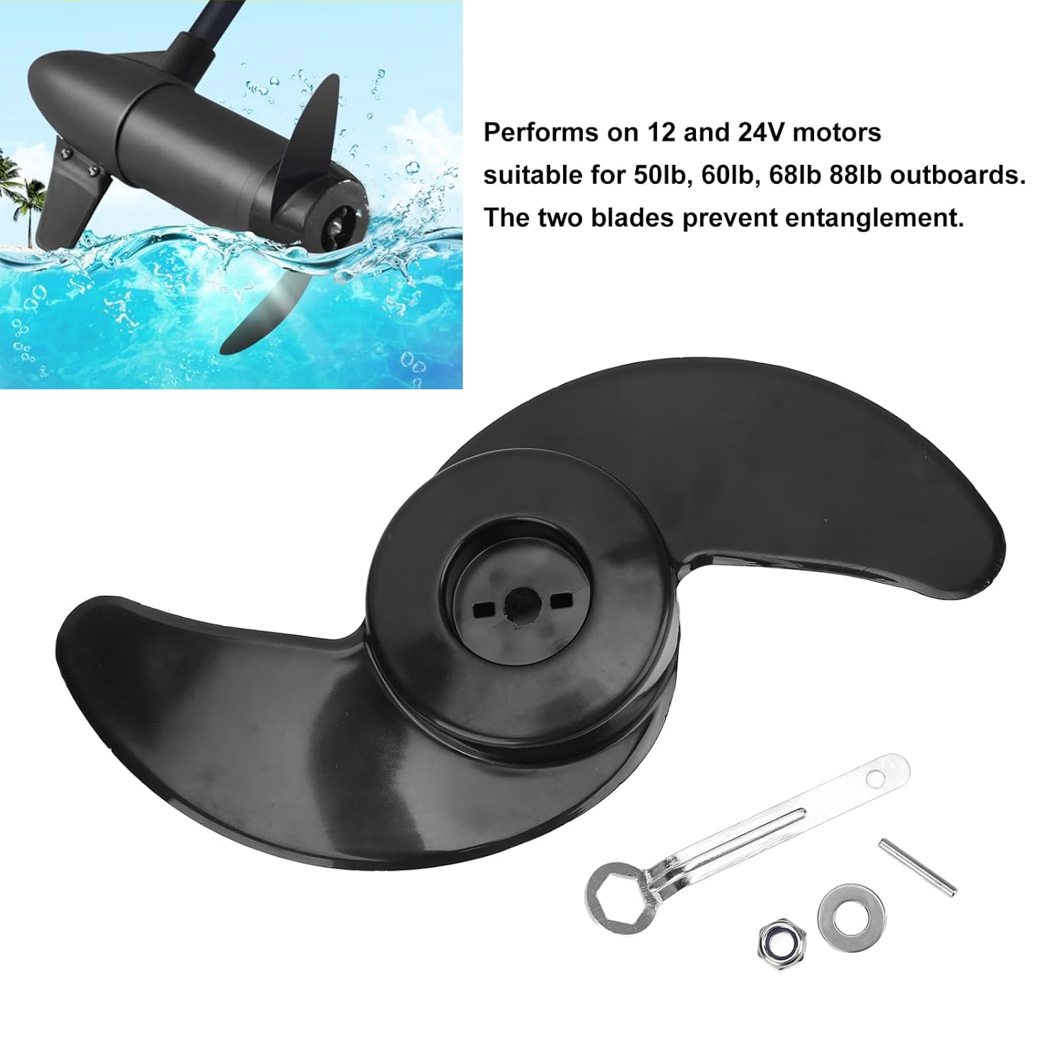 [Prevenire] 2 Blade Outboard Elten Design garantisce un funzionamento regolare. [Efficienza migliorata] Migliora la velocità e l'efficienza del carburante, ideali per varie condizioni dell'acqua. [Utilizzo versatile] Compatibile con motori 12 V e 24 V, si attano a board 50 libbre, 60lb, 68lb, 88 libbre. [Materiali di alta qualità] Stupi costruzione in nylon con corrosione per uso duraturo. [Easy Installation] Configurazione semplice e rapi, non sono richieste operazioni complesse.