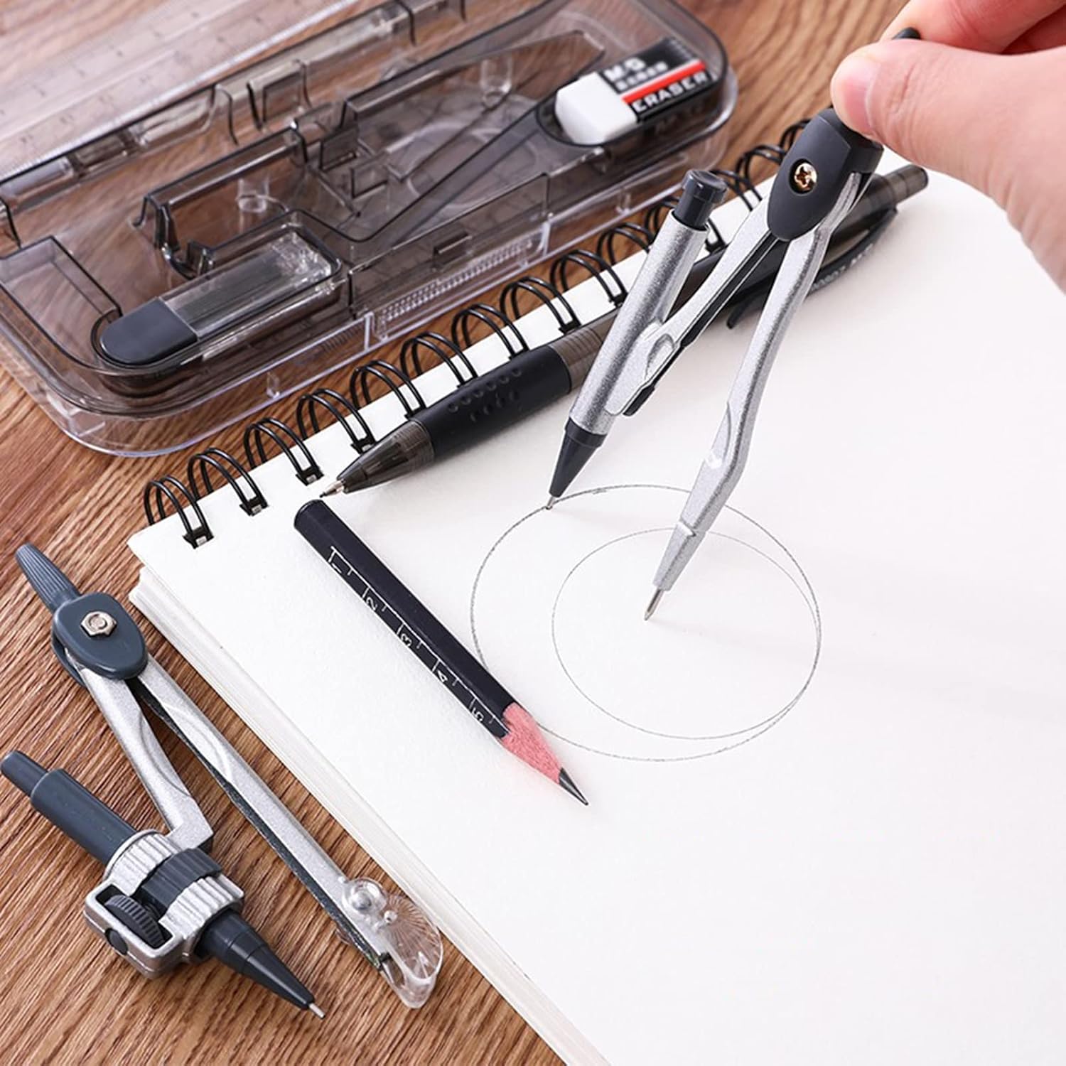 Kit di geometria matematica professionale per bussola 8 pezzi Kit di disegno di bussola Set con scatola di immagazzinaggio Set di geometria Disegno di geometria Struttura matematica Bussola a matita