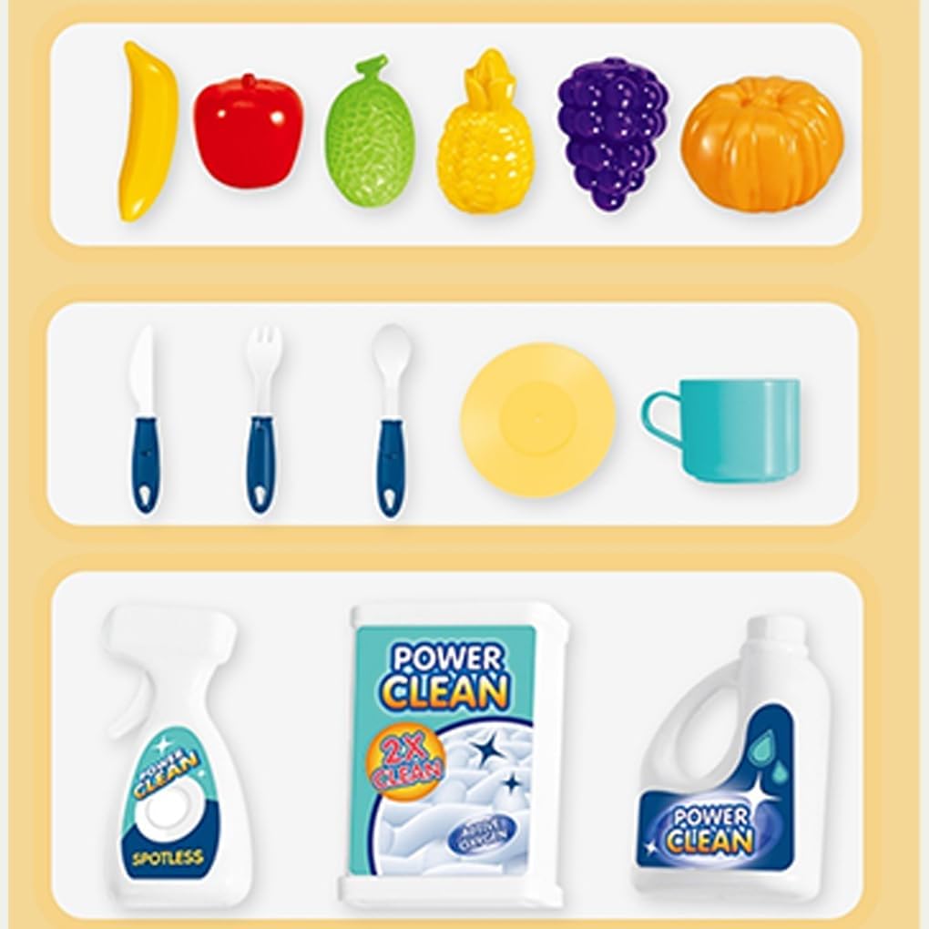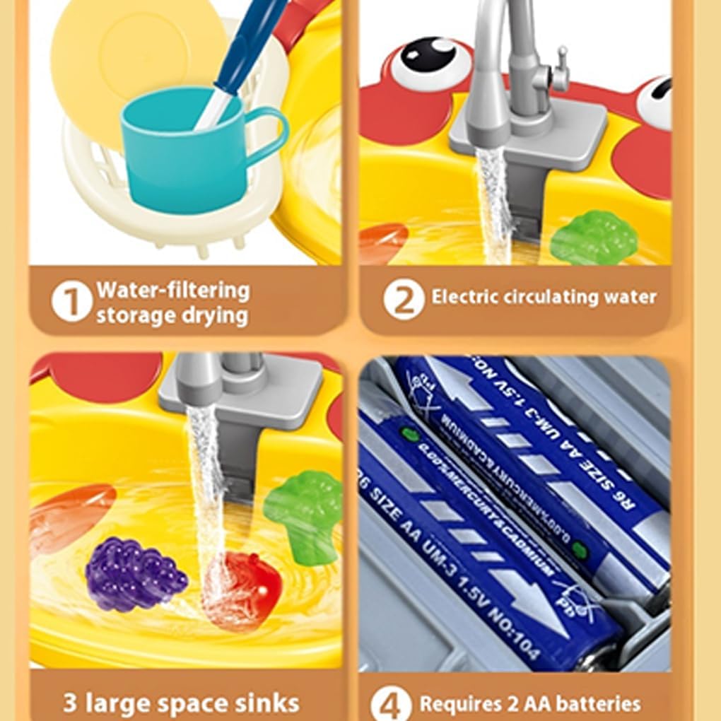 Gioco d'acqua interattivo: i bambini possono divertirsi a giocare con l'acqua che scorre in questo set di giochi con lavello elettrico e acqua Divertimento di ruolo: i bambini possono fingere di lavare i piatti e cucinare in cucina con questo set di giochi da cucina Apprendimento pratico: questo giocattolo per bambini aiuta i bambini a comprendere il concetto di riciclo dell'acqua mentre giocano Scelta regalo: il lavello elettrico a forma di cartone animato è un regalo per bambine e bambini che amano giocare a casa e in cucina Tempo di gioco creativo: lascia che la fantasia del tuo bambino scateni mentre diverte per ore con questo set di giochi con lavello da cucina per bambini