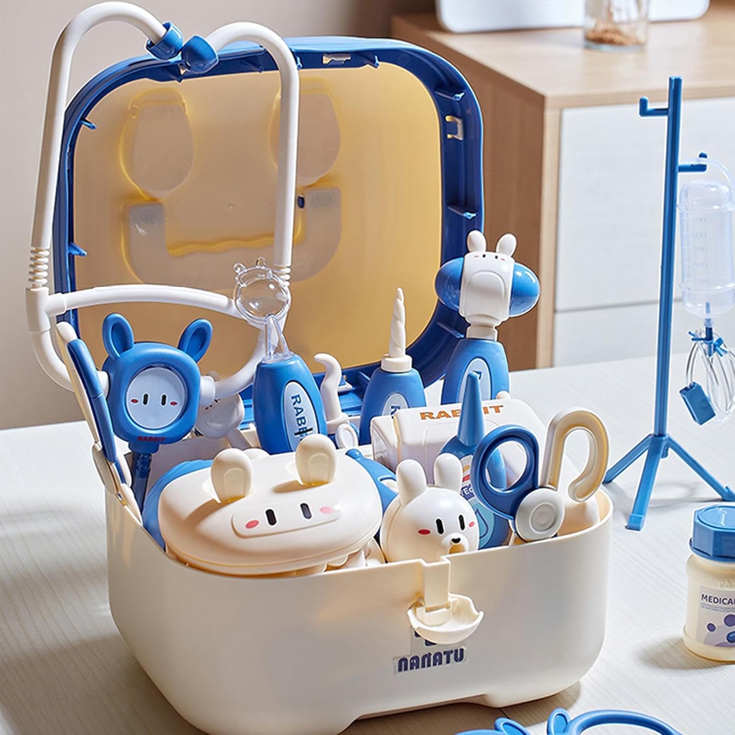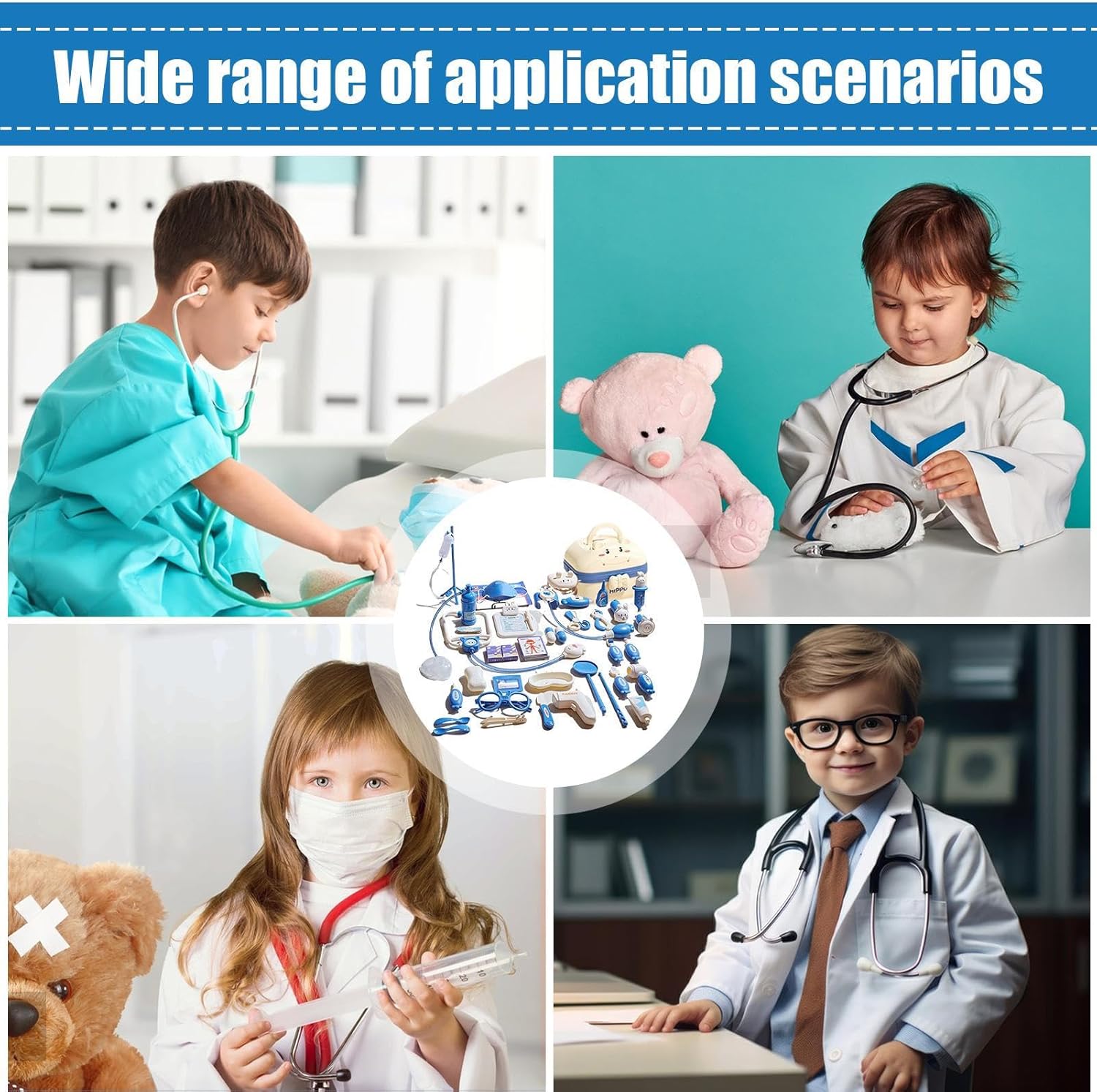 Set di giocattoli medicali multifunzionali: ispira empatia e responsabilità nei bambini con questo set di giocattoli multifunzionali per il medico. Lascia che esplorino una serie di ruoli, dai medici ai dentisti, utilizzando stetoscopi, strumenti dentali, farmaci e molto altro. Eccellente fattura: questo squisito set di giocattoli medico per bambini mostra un'eccellente lavorazione artigianale e senza burr e offre un'esperienza di gioco sicura e realistica. Con il suo design adatto ai bambini, questa splendida versione favorisce l'empatia e gli ioni Mobile e peso leggero: divertiti all'aperto con il set di giocattoli per pediatri e il suo design innovativo della valigia. Ideale per uso interno ed esterno, basta afferrare e godersi un tempo di gioco senza problemi. Regalo economico: rendi felici gli occhi dei tuoi bambini con questo set di giocattoli per bambini, perfetto per il giorno del Ringraziamento, Natale o compleanni, l'immaginazione e migliorare la creatività. Divertimento ed educazione Il set di giocattoli per pediatri è unico con il suo giocattolo a spruzzo che simula una vera siringa e una molla incorporata che rimbalza automaticamente. Guarda come tuo figlio ha un modo unico e divertente per superare l'ansia mentre apprendi le visite dal medico.