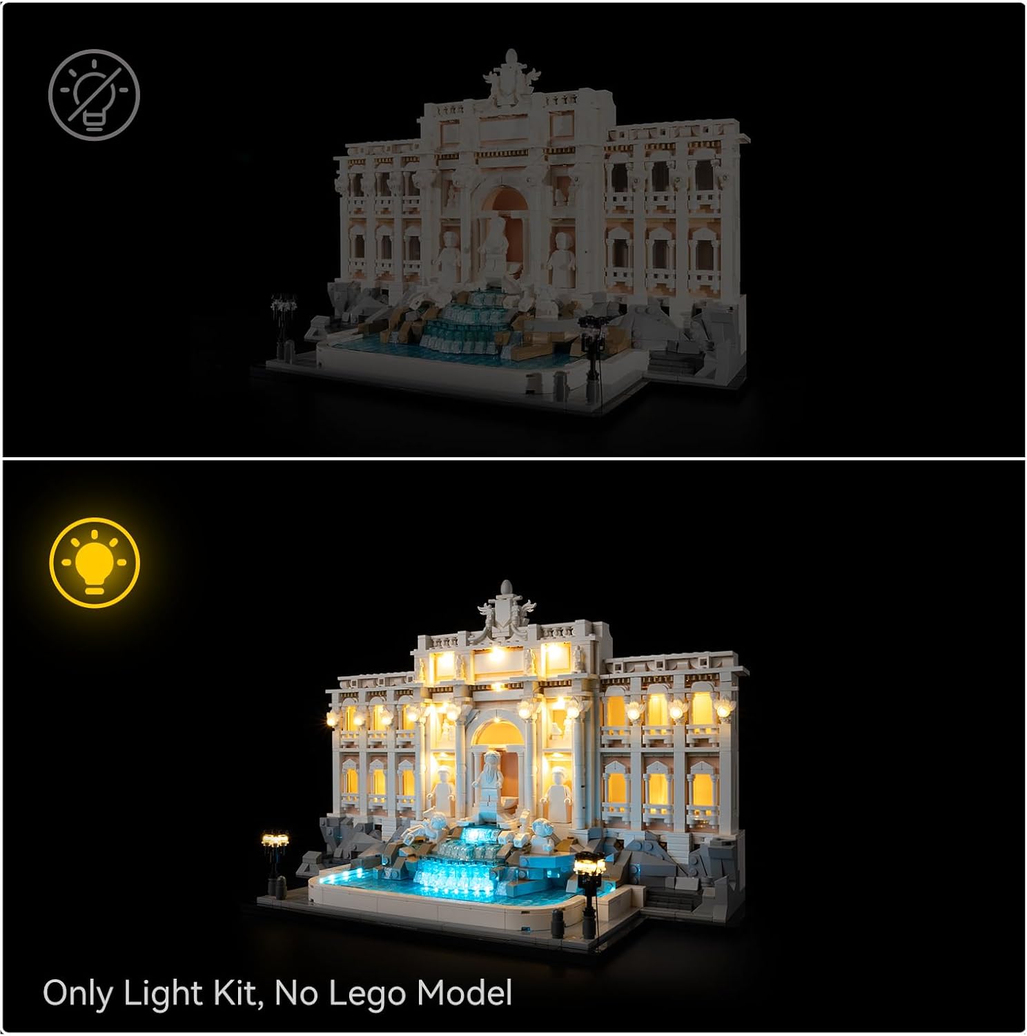 Dettagli raffinati: luci LED integrate di alta qualità, morbide e antiriflesso, spaziatura premisurata per una facile installazione e cablaggio nascosto, si adattano perfettamente alla Fontana di Trevi Lego 21062. Illuminare ogni angolo del modello con una luce brillante, scintillante, calda o intensa non è solo illuminazione, è un rituale artistico che infonde anima in un amato oggetto da collezione. 【Assemblaggio divertente】 - Il nostro kit di luci LED Lego viene fornito con un manuale illustrato dettagliato e istruzioni online, anche i principianti possono iniziare facilmente e godersi il divertimento del fai-da-te. Il connettore a scatto appositamente progettato risponderà delicatamente ad ogni tocco, rendendo il processo di trasformazione un intimo rituale di dialogo con il modello. (Nota: il kit luci non include il modello principale) Durevole e sicuro: il nostro kit luci è realizzato con materiali di alta qualità, il guscio è teso saldamente, fornendo alimentazione a 5 V per tutte le luci, cavo USB e scatola batteria (le batterie non sono incluse) possono essere alimentati tramite alimentazione mobile/a parete con/senza altri dispositivi USB (la potenza massima dovrebbe essere 6F). Quando gli altri set di luci iniziano a svanire, il nostro kit mantiene ancora quella luce calda per te in una notte piovosa dopo tre anni. 【Opzioni regalo ideali】 - Questa luce a LED sarà un regalo di compleanno, Natale, Capodanno, Festa dei bambini, Laurea, Ringraziamento, San Valentino per qualsiasi appassionato di modelli. Può fornire luce intensa ai tuoi mattoni al buio, rendendo il modello un affascinante display in showroom, scaffali, tavoli. 【Servizio attento】 - Una bella esperienza creativa non dovrebbe essere interrotta da difficoltà tecniche, Kyglaring ti fornirà un esclusivo consulente di luci e ombre. Se riscontri difficoltà durante l'utilizzo del prodotto, ti aiuteremo a risolvere il problema in tempo.