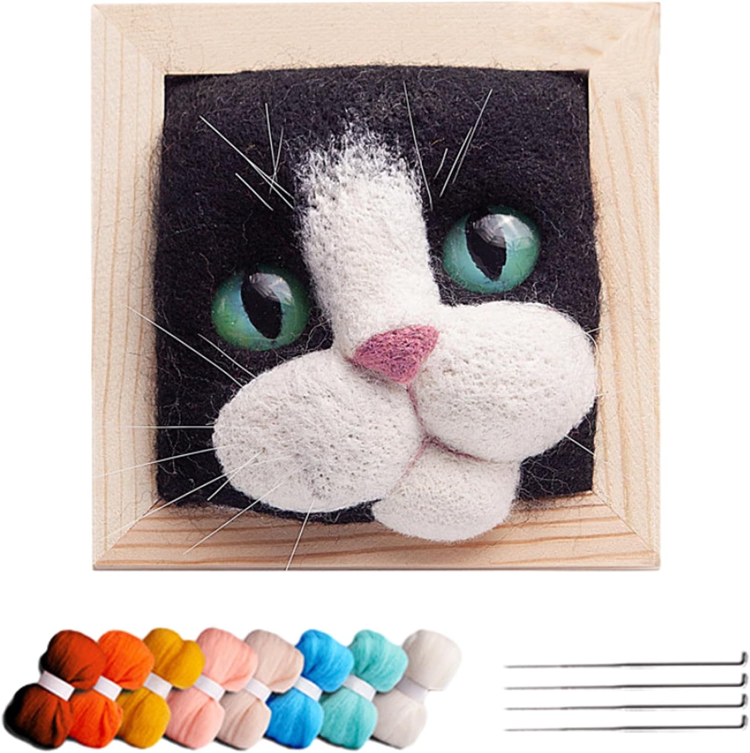 Kit Di Infeltrie Ad Ago Per Principianti - Cornice Della Testa Del Gatto Decorativo, Imbarcazione In Lana | Kit Di Artigianato Animale Step By Step, Set Di Decorazioni Per Gatti Fatti A Mano, Opzione