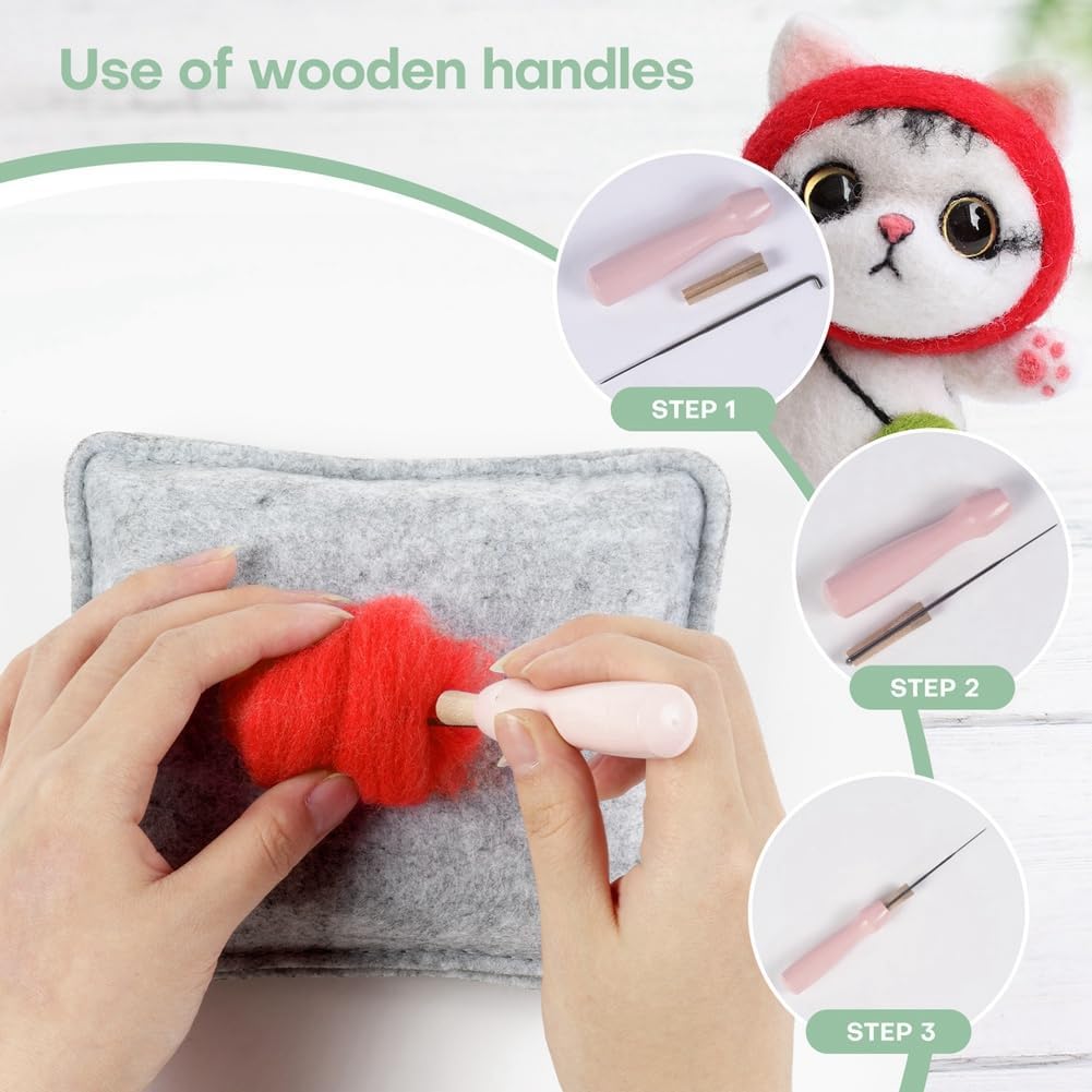 Kit di Infeltrito ad ago per bambole, parti di ricambio, accessori per principianti, kit di feltro, aghi in feltro, tampone in schiuma, panno in feltro, Ins