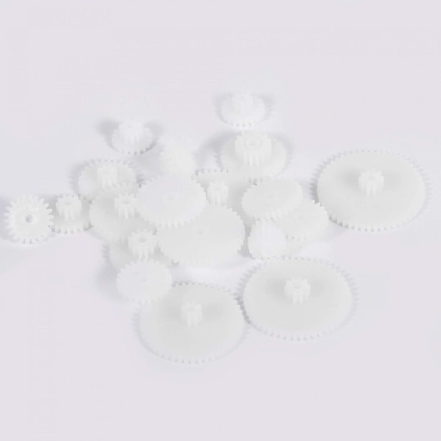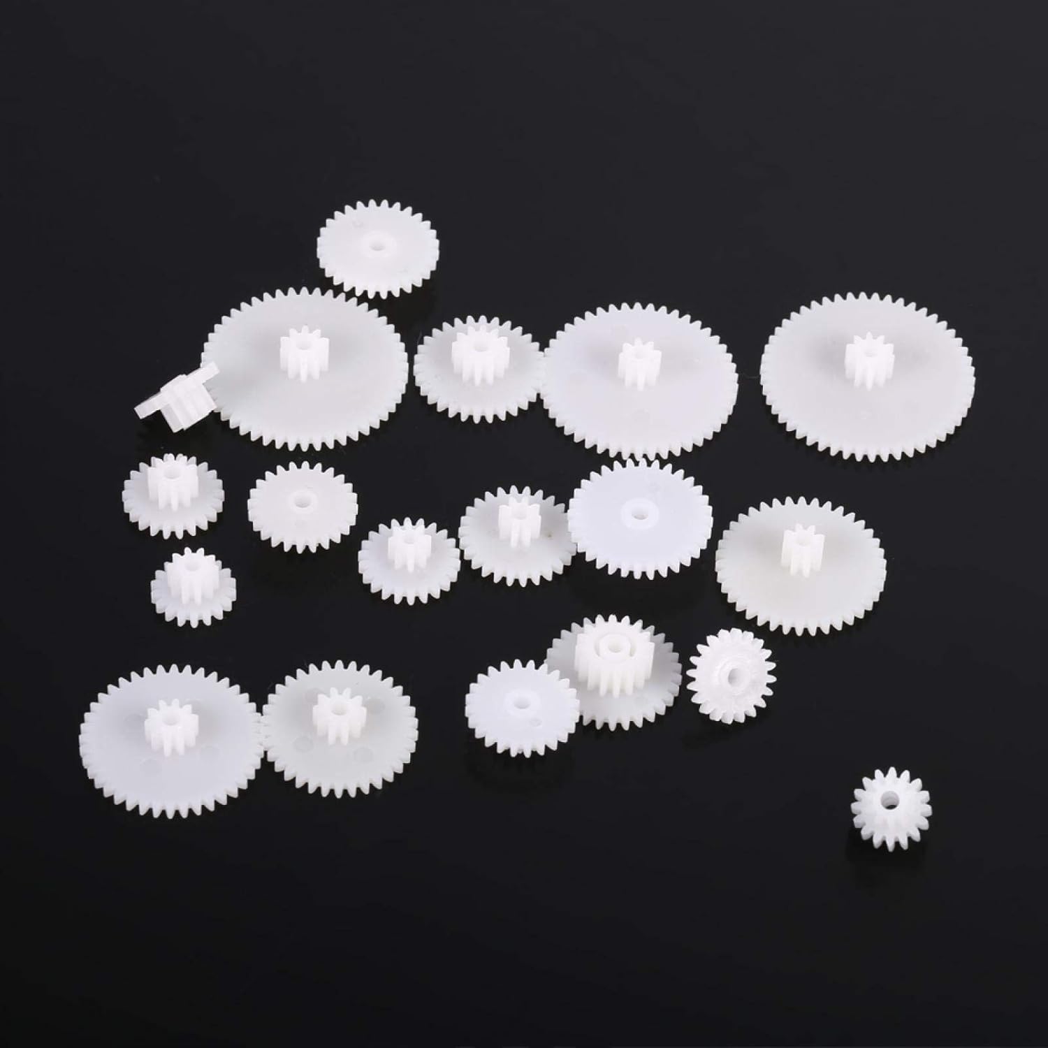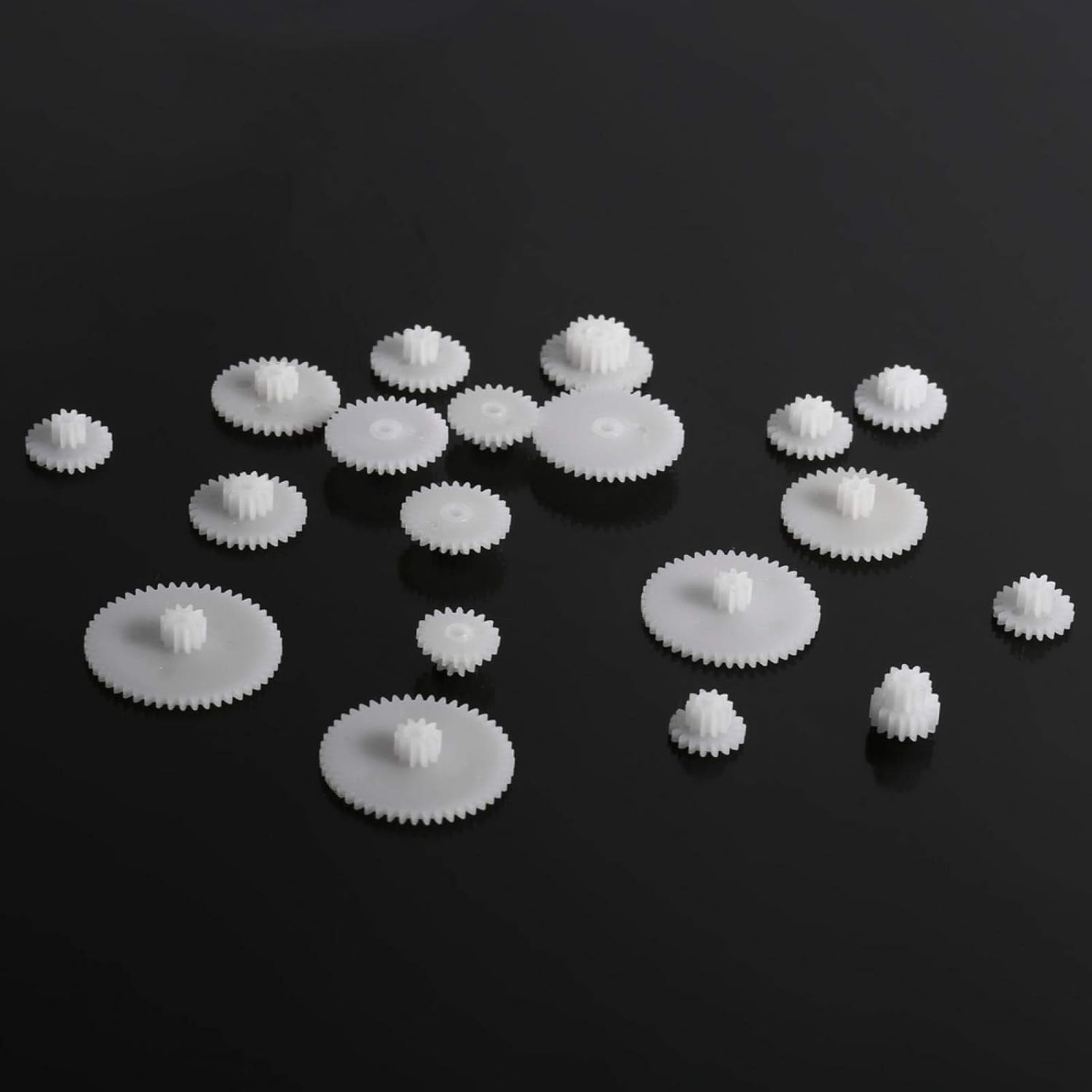 Realizzato in plastica di alta qualità, indossabile e di lunga durata I prodotti sono per pezzi di ricambio di attrezzi per giocattoli, adatti alla produzione di tecnologia per modelli fai-da-te Piccole parti, facili da usare, ottimi accessori per modellismo per tutti i tipi di auto, robot, ecc Questo è il set di attrezzi che include 19 tipi di parti di ingranaggi. Può soddisfare le tue esigenze fai-da-te 16102B, ad esempio, significa 16 denti esterni, 10 denti interni, il diametro dell'apertura è di circa 2 mm e l'albero di 2 mm a montaggio libero