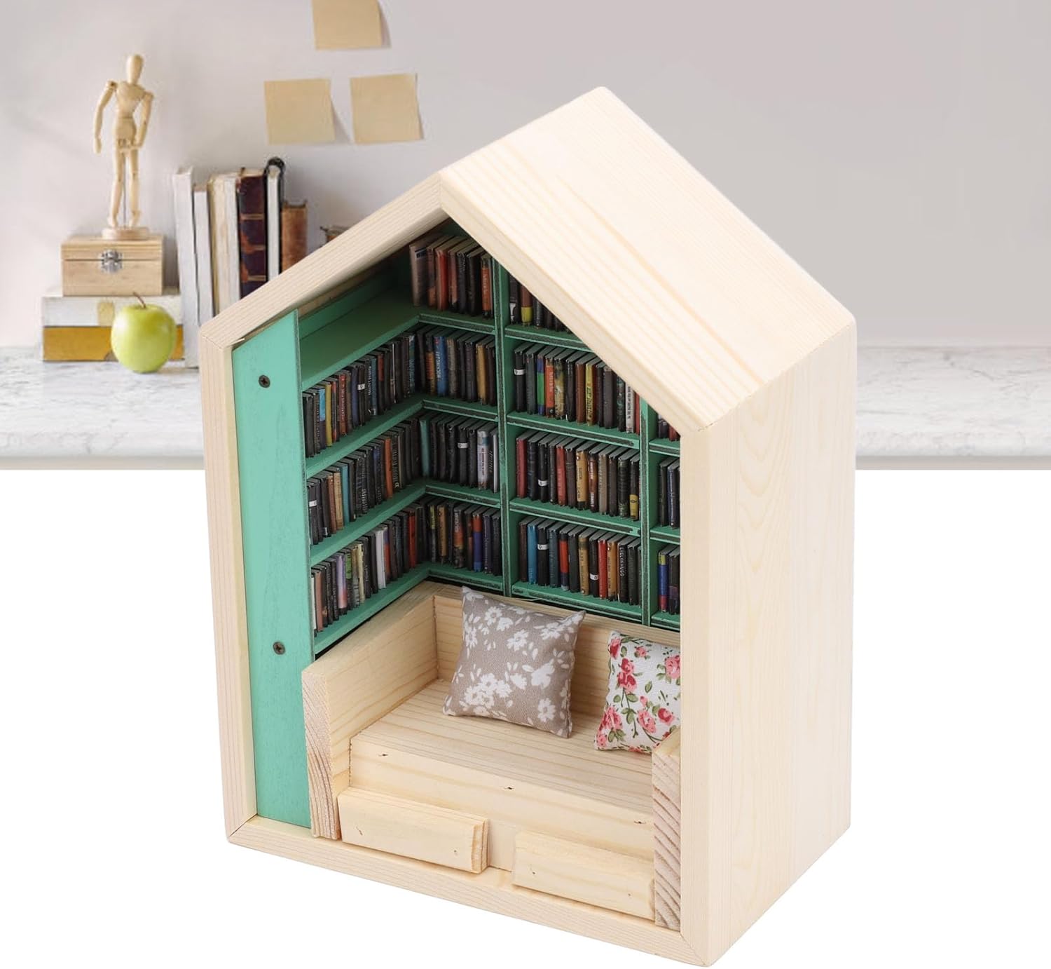 [Robusta struttura in legno] Realizzato in legno di alta qualità, il durevole sesto del libro resiste alla deformazione per un uso duraturo. La sua struttura in legno naturale aggiunge fascino festoso a qualsiasi stanza mantenendo l'integrità strutturale. [Design dettagliato della libreria 3D] presenta 200 libri intricati e cuscini decorativi in una casa in miniatura fatta a mano. La struttura del puzzle in legno 3D combina l'assemblaggio fai-da-te con funzionalità di visualizzazione artistica. [Accento decorativo versatile] per stanze, studi, caffè o librerie, questa libreria in miniatura funge da punto focale creativo. Il suo design compatto si integra perfettamente in vari ambienti aggiungendo interesse visivo. [Sollievo dallo stress e coinvolgimento creativo] riorganizza i libri o scuotili delicatamente per alleviare l'ansia. Ogni interazione offre nuove possibilità creative, trasformando i momenti di inattività in esperienze rilassanti e tattili. [Premuroso per gli amanti dei libri] combina regali con artigianato. Questo set fermalibri fai-da-te è memorabile per lettori, hobbisti o chiunque cerchi decorazioni per la casa personalizzate con fascino interattivo.